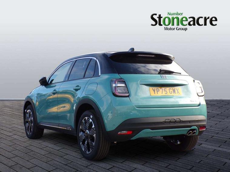 360 degree parking sensors with 180 degree rear view camera, 7" TFT digital cluster, Autonomous driving level 2: Adaptive cruise control with stop & go and lane centering, Blind spot detection, Bluetooth connectivity, BSRF connectivity box, Connected services, Drowsy driver detection, Emergency E-call assist, Engine emission level default, GSR II step 1, Hands free power liftgate, Intelligent speed assist, Lane keeping assistant (LKA), Odometer, Power assist steering, Rain and dusk sensors, Semi-automatic parking with Visiopark 1 system, Traffic sign recognition, Wireless apple car play/android Auto, Wireless charging pad for smartphones, Without drive mode selector, L2-AGM 12V battery, 1st Row USB type-A and USB type-C, 2nd Row USB type-C, 6 speaker audio system, Radio, Uconnect infotainment 10.25" touchscreen with integrated navigation system and DAB, All power windows express Up/Down, Auto dimming frameless rear view mirror, Automatic headlights, Automatic high/low beam, Body coloured door handles, Chrome day light openings, Chromed exhaust tip, Electric adjustable/heated/folding door mirrors, Exterior chrome accents, Front and rear Chromed 600 logo, Gloss black finish B pillar, Gloss black shark fin antenna, Glossy black door mirrors, Heated windscreen wiper blade area, LED 3rd brake light, LED daytime running lights, LED Fog lamps with cornering function, LED front signature lighting, LED front turn indicators and position lights, LED rear lights, LED rear signature lighting, LED reflector headlamps, Matt black side skirts with 600 chromed logo, Privacy glass, Puddle lights, Rear bumper embossed 600 logo, Rear roof spoiler, Rear side wing doors, Rear wiper, 2 Spoke synthetic leather steering wheel with audio control, 3 rear headrests, 3 seat bench in 2nd row, 6 way manually adjustable front passenger seat, 6 way power adjustable driver seat with lumbar support and massage function, Adjustable trunk floor, Automatic climate control, Auxilliary 12V power socket, Cargo flex fit, Chrome interior door handles, Dark metachrome dashboard ring, English handbook, Front centre armrest, Front headrests, Front passenger grab handle, Front seatback pockets, Heated front seats, ISOFIX attachment on front passenger and rear passenger seats, Matt Ivory painted dashboard fascia, Metachrome central compartment bezel, Monogram Synthetic leather upholstery, Paddle shifts, Partial body cover for shipment, Predisposal for accessory upgrade to default tunnel pad cover (dedicated prnd bezel), Rear seat 40/60 split, Single front passenger seat, Smart 15L storage central tunnel with La prima tunnel pad cover, Sunvisor label ciao Fiat, Sunvisors with vanity mirrors, Velour floor mats, 3x3 point rear seatbelts, 6 airbags, ABS, Autonomous Emergency Brake (AEB) & Vulnerable Road User (VRU) Protection, Child locks on rear doors, Electronic parking brake with auto hold, ESC (Electronic Stability Control), Front passenger airbag deactivation, Seatbelt reminder and pretensioners for all seats, Anti-theft volumetric alarm, Anti-theft wheel bolts, Passive entry and keyless go, 18" Diamond cut alloy wheels, Fix and go puncture repair kit,