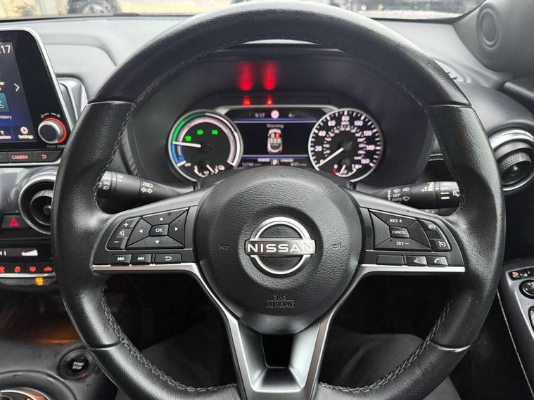 7" full colour TFT screen combimeter, Apple CarPlay and Google Android auto, Drive modes select (Eco, normal and sport), e-Pedal step, Emergency and breakdown call, EV mode selector, Front parking sensor, Intelligent lane intervention, Lane departure warning system, Nissan connect 8" touch screen entertainment system, Nissan connect nav with TomTom traffic, Nissan connect services and Wifi connection, Outside temperature sensor, Power Steering, Rear parking sensor, Traffic sign recognition, Trip computer, Voice recognition, Gasoline particulate filter, 6 speakers, Bluetooth system, USB, Aux-in and 12V socket, DAB Digital radio, Rear console USB port, Auto dimming interior rear view mirror, Auto headlights, Automatic hazard signal with emergency stop signal, Body colour bumpers, Body colour door handles, Electrically adjustable door mirrors with integrated indicators, Follow me home headlights, Front and rear electric window with one touch driver window, Heated and auto folding door mirrors, High beam assist, LED daytime running lights, LED headlamps, LED rear fog lamp, LED rear lamps, Rain sensor windscreen wipers, Rear privacy glass, Rear side wing doors, Rear wiper, Shark fin roof antenna in Pearl Black, Three blink turn signal, 3 height adjustable rear headrests, 3 seat bench in 2nd row, 60/40 split folding rear seat, Automatic climate control, Card holder on driver sunvisor, Cloth upholstery with black and metallic grey syntech leather inserts, Driver and passenger sliding and reclining seats, Driver side rear coat hanger, Driver/passenger sunvisors and vanity mirrors, Front and rear cabin lights, Front armrest, Front door pockets with bottle holders, Front head restraints, Front/rear passenger grab handles, Grey synthetic leather kneepad, Height adjustable driver's seat, Internal chrome door handles, Leather gearshift knob, Leather steering wheel, Luggage board, Luggage space lighting, Monoform sporty seats, Multifunction steering wheel, Rear door bottle holders, Single front passenger seat, Steering wheel mounted gearshift paddles, Telescopic steering wheel adjustment, Two cupholders in front centre console, Two rear isofix child seat anchorage points with top tether, Welcome light and console tray ambient lighting, ABS with EBD and brake assist, Active ride control, Active Trace Control, Driver and passenger airbags, Driver and passenger side airbags, Electric handbrake with auto hold function, Electronic Stability Programme (ESP), Front and rear curtain airbags, Height adjustable seatbelts, Hill start assist, Intelligent emergency braking with pedestrian and cyclist recognition, Rear door child safety locks, Seatbelt reminder for driver/front passenger and rear seats, Single tone horn, Three 3 point rear seatbelts, Traction control, Tyre pressure monitoring system, VDC Dynamic Vehicle Control, Ventilated rear brake discs, Alarm, Immobiliser, Intelligent key and start push button with walk away lock and approach unlock functions, Remote central locking,