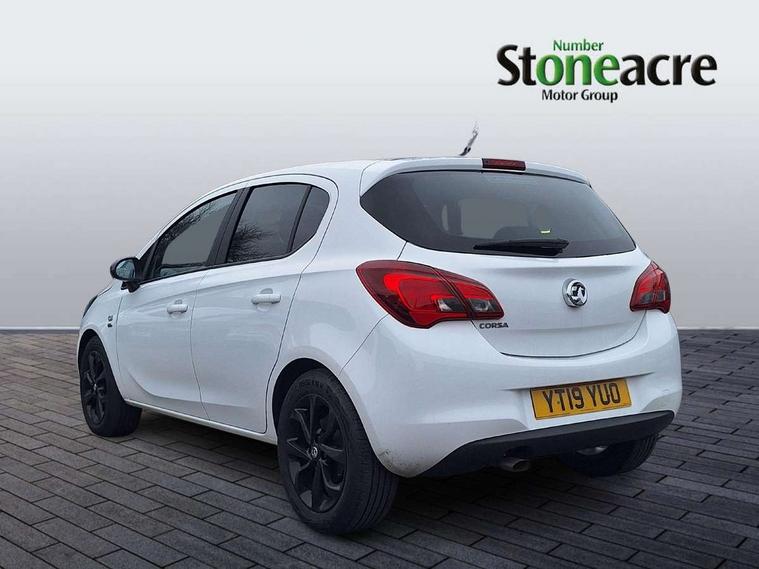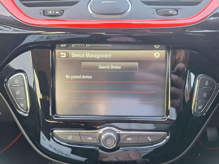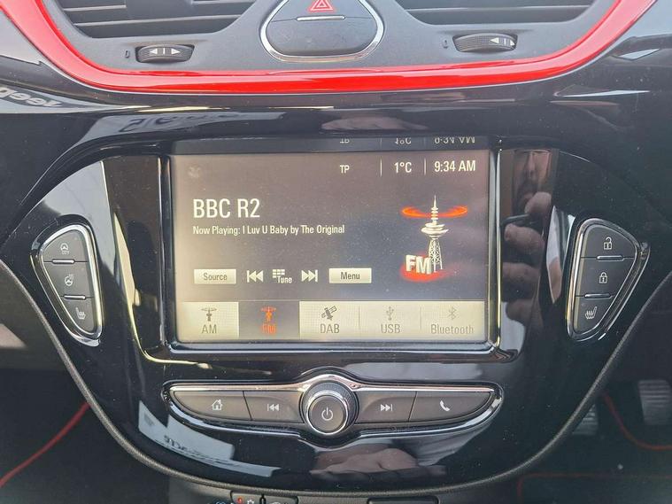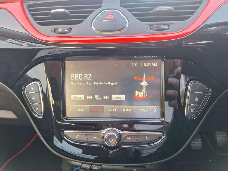 Apple car play/Android Auto, Bluetooth system, Central facia display, Cruise control + speed limiter, Digital fuel gauge with low fuel warning light, Digital water temperature gauge, Electric speed sensitive power steering, Exterior temperature gauge, Lights on audible warning, Navi 4.0 IntelliLink navigation with 7" touchscreen, traffic program, DAB , USB, Bluetooth audio streaming, Apple CarPlay/Android auto, and microphone, Rev counter, Service indicator, Speed warning indicator, Speedometer, Trip computer, White graphics on black background, Front anti roll bar, Sports suspension, Six speakers, Steering wheel mounted audio/cruise controls, Automatically dimming anti dazzle rear view mirror, Black door mirrors, Black foil on B-pillars, Black front grille logo bar, Black roof, Body colour bumpers, Body colour door handles, Chrome front grille, Dark tinted rear windows, Dipping rear view mirror, Door to door illumination, Electric adjustable/manual folding door mirrors (wide angle on driver's side), Electric headlight beam leveling, Electrically operated front windows with safety auto reverse/one touch facility, Front fog lights with black surround, Front fog lights with chrome surrounds, Griffin badges, Halogen headlights, Hazard warning lamps, Headlamp levelling, Heated rear window, Heated windscreen, High level LED centre brake light, Intermittent rear wash/wipe, Laminated windscreen, LED daytime running lights, Mineral black door mirror housings, Rain sensitive windscreen wipers, Rear fog lights, Rear wiper, Side window demist vents, Tinted windows, Two speed windscreen wipers with variable intermittent wipe, Welcome lighting, Windscreen demist vents, 12V electrical accessory socket in front, 3 spoke steering wheel, Air conditioning, Anti submarining ramps in all seats, Centre console with cupholders, Chrome gear knob, Chrome interior door handles, Comfort front seats, Driver's and front passenger's sunvisors, Driver's and front passenger's tiltable assist handles, Driver's and passenger's vanity mirrors with flip up cover, Driver's vanity mirror, Four adjustable facia vents, Front courtesy lights, Front door pockets, Front map reading lights, Front seat belt pre-tensioners with load limiters, Glovebox with lid, Grab handles, Griffin branded floor mats, Heated front seats, Height adjustable driver's seat, Height adjustable front headrests, Height adjustable rear head restraints with adjustable backrest, Illuminated luggage compartment, Instrument panel light dimmer, Interior tailgate handles, Isofix child seat mounting points on outer rear seats, Lace cloth trim, Load restraining lashing points, Luggage compartment cover, Multi function steering wheel, One piece folding rear seat, Pollen filter, Reach + rake adjustable steering column, Rear courtesy lights, Rear door pockets, Rear reading lights, Reclining front seats, Sports front seats, Storage box on driver's side lower facia, Stowage facility for luggage compartment cover behind rear seats, Twin gas assisted tailgate struts, Two rear tiltable passenger assist handles, Sight and light Pack - Corsa, Winter pack - Corsa, Anti-lock braking system (ABS), Brake assist function, Electronic brake force distribution, Electronic Stability Programme, Energy absorbing steering column, Front and rear seatbelt reminder, Front and rear seatbelt unfastened audible warning and warning light, Front seatbelt force limiters, Gas pressure dampers, Height adjustable front seatbelts, Hill start assist, Manual passenger airbag deactivation function, Pedal release system, Rear child proof door locks, Reinforced passenger safety cell, Side impact protection beams, Six airbags - Driver's dual stage airbag/front passenger's dual stage airbag/front seat side impact airbags/full size curtain airbags, Three 3 point rear seatbelts, Three inertia reel lap/diagonal seatbelts, Traction control, Tyre pressure monitoring system, Electronically protected audio, Engine Immobiliser & Deadlocks, Key left in ignition audible warning, Locking wheel bolts, Remote control central locking, Visible vehicle identification number, Rhutenium facia with chrome effect inserts, 16" 4 twin spoke black alloy wheels, Tyre inflation kit,