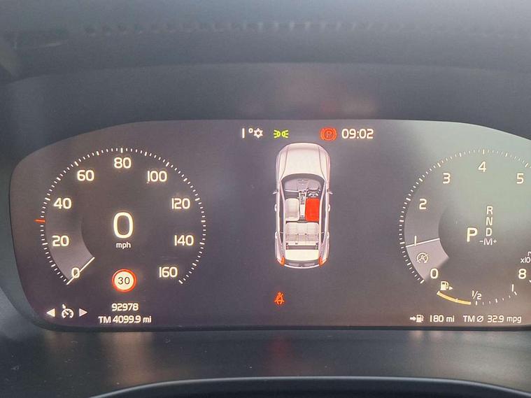 12.3" Active TFT crystal driver's instrument display, 9" centre console portrait touch screen, Adjustable steering wheel force, Bluetooth hands free telephone kit, Drive mode selector, E-call, Lane keep assist with driver alert control, Oncoming Lane Mitigation, Sensus navigation with European mapping and traffic information, Speed limiter, Speed sensitive steering, Voice control system, Volvo on call, DAB Digital radio, Steering wheel mounted remote controls, Active bending headlights, Adaptive brake lights with high level LED brake lights, Auto dimming interior mirror, Automatic headlamp levelling, Black stone door mirrors, Black stone roof, Colour coordinated auto folding and heated power door mirrors, Dark tinted glass for rear windows + rear screen + side luggage area window, Dual integrated exhaust pipes with high gloss black surround, Electrically adjustable and heated door mirrors, Embossed rear side roof pillar, Front and rear electric windows, Front tread plates, Headlamp cleaning system, Heated front windscreen, Heated washer nozzles, High gloss black front and rear skid plate, High gloss black lower front bumper, High gloss black mesh front grille with high gloss black surround, High gloss black roof rails, High gloss black window trim, Home safe and approach lighting, LED front fog lights with static cornering light function, LED Headlights + Active high beam incorporating daytime running lights, Rain sensor windscreen wipers, Rear wiper, Roof antenna, Roof spoiler, Visible VIN plate, 12V socket in front tunnel console and luggage compartment, 2 zone electronic climate control with Clean zone air quality system + pollen filter + cooled glovebox, 3 spoke leather steering wheel with chrome trim, 60/40 split folding rear seat, A-pillar parking ticket holder, Ambient front door and instrumental panel lighting, Black headlining, Bright metal luggage threshold, Centre console cupholders and storage, Driver seat height/tilt/lumbar adjust, Driver's side lower dashboard credit card storage compartment, Extended front seat cushions, Front door pocket and front cupholder illumination, Front footwell illumination, Front tunnel net pocket and integrated waste bin, Glovebox bag hook, Heated front seats, Height/reach adjustable steering column, High gloss centre tunnel deco, Illuminated luggage compartment, Illuminated tailgate, Illuminated vanity mirrors + ticket holder, Isofix attachments on outer rear seats, Leather coloured key integrated remote, Leather/nubuck upholstery, Load protection net, Lockable/illuminated glovebox, Multicolour theatre lights, Passenger seat adjustable for lumbar support, Perforated leather gearknob, Perforated leather steering wheel with gearshift paddles, Power driver seat with memory + exterior mirrors memory, Rear armrest / integral cup holders / storage tray, Rear reading and courtesy lights, Sports pedals, Underfloor stowage compartment, 3x3 point rear seatbelts, City safety, Drivers knee airbag, DSTC-Dynamic Stability and Traction Control, Dual stage driver/passenger airbags, Electronic parking brake with auto hold, Fasten seatbelt reminder, First aid kit, Hill descent control, Hill start assist, Inflatable curtain, Passenger airbag cut-off device, Road sign information display, Run off Road Mitigation, Run off Road Protection, Seatbelt reminder and pretensioners, SIPS (Side Impact Protection System), SIPS airbags, Slippery road and hazard light alert, Tyre pressure monitoring system, Vehicle deceleration control with Anti-lock Brake System, Electronic Brake Distribution and Emergency Brake Assist, Warning triangle, WHIPS whiplash protection system - front, Anti-theft alarm including immobiliser/volume sensor + level sensor, Fuel flap with deadlocking system, Key integrated remote control central locking, Locking wheel nuts, Private locking for tailgate, Cutting edge aluminium inlay,
