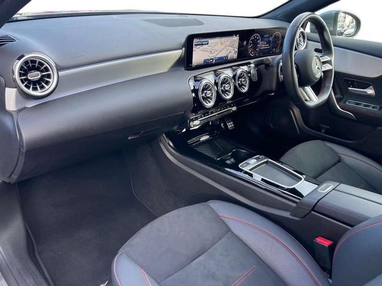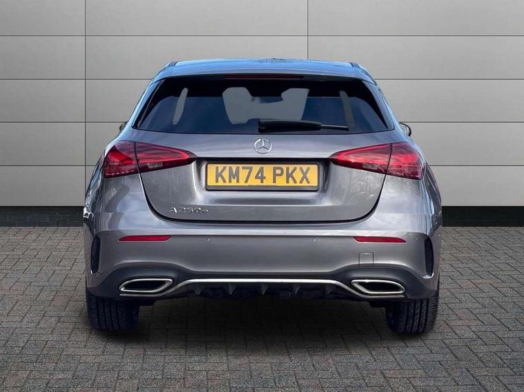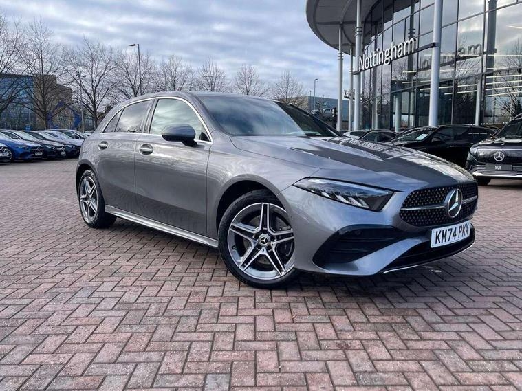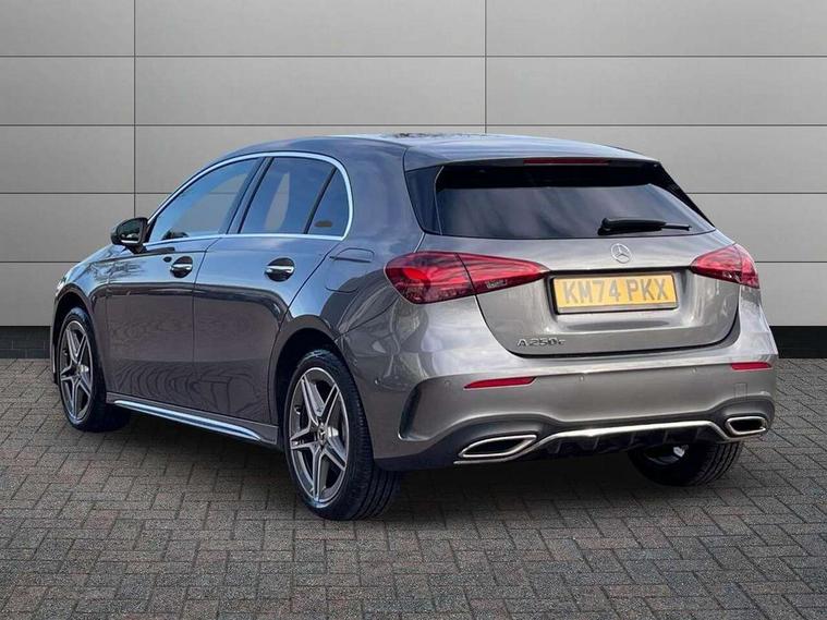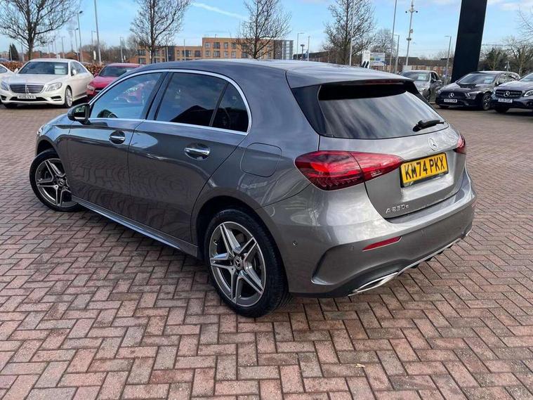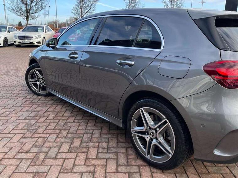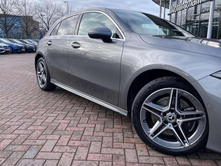 10.25 inch touchscreen central media display, 10.25" Digital instrument cluster display screen, Acoustic ambient protection, Attention assist, Blind spot assist, Brake pad wear indicator warning light, Car wash mode, Cruise control + speed limiter, Direct steering, Direction indicators with lane change function, Dual bluetooth interfaces, DYNAMIC SELECT with a choice of driving modes (ECO, Comfort, Sport and Individual), Easy pack tailgate hands-free access, ECO start/stop function, Engine start/stop button, Fingerprint scanner, Fluid level warning indicator for fuel, oil, coolant and washer fluid, Fluorescent jacket for driver, Hard-disk navigation, Hey Mercedes Voice activation, Lamp failure indicator, Lane keeping system, Mercedes me connect including emergency call system, accident recovery, breakdown and maintenance management, Mercedes me remote services, Outside temperature gauge, Owners manual in English, Pre-installation of private car share, Preinstallation for Mercedes Benz link, Remote and charging services plus, Remote boot closing, Service indicator (ASSYST), Smartphone integration with Apple CarPlay and Android auto, Speed limit assist, Speed sensitive power steering, Tailgate, Trip computer in multifunction display with current consumption indicator, Wireless charging, Charging system - AC charging system rated at 11kW, Charging system - DC charging system rated at 22 kW, Comfort suspension, Mode 2 charging cable for domestic socket with 5m up to 1.8kW, Mode 3 charging cable for wallbox and public charging stations with 4m upto 22 kW, DAB Digital radio, MBUX multimedia system, Mercedes Benz sound system (100 W) with 6 speakers, 4 Electric Front and Rear windows, Adaptive brake lights, AMG body styling - AMG front apron with front splitter and AMG rear apron and visible exhaust tailpipe trim elements, Body colour bumpers, Body colour door handles with chrome inserts, Body colour side skirt, Body coloured door mirrors, Chrome beltline strips, Diamond radiator grille with pins in fine star pattern, Electric adjustable and heated door mirrors with integrated LED side indicators, Exhaust system with 2 visible tailpipe trim elements and rear apron, Headlamp assist automatic headlamp activation, Heat insulating dark tinted rear and rear side windows, Heated glass rear windscreen + timer control, LED High level third brake light, LED High Performance headlamps including integral LED daytime running lamps and adaptive highbeam assist, LED tail lamp, Privacy glass, Radio aerial, Rain sensing windscreen wipers with two sensitivity settings, Rear fog lights, Rear side wing doors, Rear windscreen wiper, Window line trim strip in chrome, 3 seat bench in 2nd row, 3 Spoke flat bottom leather multi function steering wheel with perforated leather in grip area, 4 way lumbar support, 40:20:40 split folding rear seats, Air conditioning - One zone THERMATIC automatic climate control with automatically controlled air distribution, AMG floor mats, Automatic child seat recognition sensor, Black air vents with surround in silver chrome, Black roof lining, Brushed stainless steel sports pedals with rubber studs, Charging socket, Front centre armrest with stowage, Front door sills with Mercedes Benz lettering, Front seat backs luggage nets, Galvanished gear shift paddles on steering wheel, Heated front seats, Height/reach adjustable steering column, Interior lighting - 64 colour Ambient lighting, Interior mirror with reading lamps in black and frameless, Pre-entry climate control, Rear armrest with 2 cupholders, Seat occupancy sensor for front passenger seat, Single front passenger seat, Sports seats with integrated headrests, Stowage compartment in centre console with retractable cover, Sunvisors with illuminated vanity mirrors, Twin front cupholders, Light and sight package - A Class, Mirror package - A Class, Parking pack with 180 degree view - A Class, Seat comfort pack - A Class, USB pack plus - A Class, 3 rear 3 point seatbelts, ABS with Brake Assist, Active bonnet, Active brake assist includes forward collision warning system with autonomous braking, Adaptive brake assist with hold function and hill start assist, Black seatbelts, Bonnet with power domes, Childproof locks manually operated for rear doors and electrically operated for rear power windows, Crash responsive emergency lighting, Driver and passenger head and side airbags, Drivers knee airbag, Dual stage driver/passenger airbags, Electronic parking brake, ESP curve dynamic assist, ESP with ASR, Front and rear seatbelt reminder, ISOFIX and top tether child seat fixing points in two outer rear seats, Perforated front brake discs, Radar based regeneration, Tyre pressure monitoring system, Warning triangle and first aid kit, Window airbags, Alarm system/interior protection/immobiliser, Guard 360 degree vehicle protection, Keyless entry lock/unlock, Keyless Go, Remote central locking and crash sensor with emergency opening function, Light longitudinal grain aluminium trim, 18" AMG 5 twin spoke light alloy wheels, aerodynamically optimised, painted in black with high sheen finish, Summer tyres, Tirefit sealant kit,