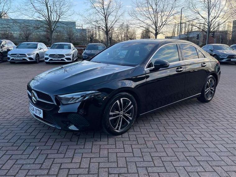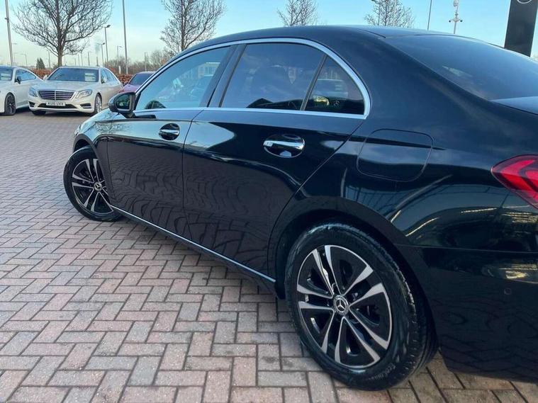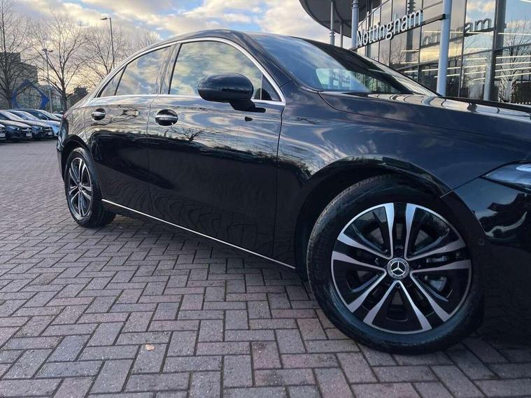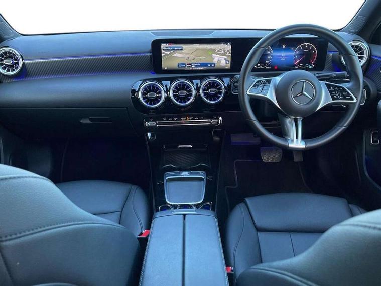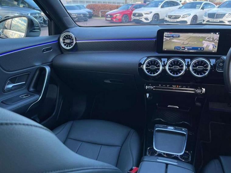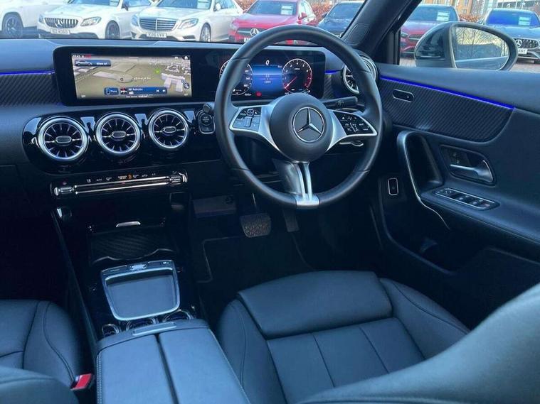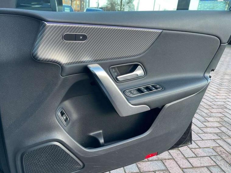 10.25 inch touchscreen central media display, 10.25" Digital instrument cluster display screen, Attention assist, Blind spot assist, Brake pad wear indicator warning light, Car wash mode, Cruise control + speed limiter, Direct steering, Direction indicators with lane change function, Dual bluetooth interfaces, DYNAMIC SELECT with a choice of driving modes (ECO, Comfort, Sport and Individual), ECO start/stop function, Engine start/stop button, Fingerprint scanner, Fluid level warning indicator for fuel, oil, coolant and washer fluid, Fluorescent jacket for driver, Hard-disk navigation, Hey Mercedes Voice activation, Lamp failure indicator, Lane keeping system, Mercedes me connect including emergency call system, accident recovery, breakdown and maintenance management, Mercedes me remote services, Outside temperature gauge, Owners manual in English, Pre-installation of private car share, Preinstallation for Mercedes Benz link, Remote boot closing, Service indicator (ASSYST), Smartphone integration with Apple CarPlay and Android auto, Speed limit assist, Speed sensitive power steering, Trip computer in multifunction display with current consumption indicator, Wireless charging, Lowered comfort suspension, DAB Digital radio, MBUX multimedia system, Mercedes Benz sound system (100 W) with 6 speakers, 4 Electric Front and Rear windows, Adaptive brake lights, Body colour bumpers, Body colour door handles with chrome inserts, Body colour side skirt, Body coloured door mirrors, Chrome beltline strips, Diamond radiator grille with pins in fine star pattern, Electric adjustable and heated door mirrors with integrated LED side indicators, Exhaust system with 2 visible tailpipe trim elements and rear apron, Headlamp assist automatic headlamp activation, Heat insulating dark tinted rear and rear side windows, Heated glass rear windscreen + timer control, LED High Performance headlamps including integral LED daytime running lamps and adaptive highbeam assist, LED tail lamp, Privacy glass, Radio aerial, Rain sensing windscreen wipers with two sensitivity settings, Rear boot, Rear fog lights, Rear side wing doors, Third brake light featuring LED technology, Window line trim strip in chrome, 3 seat bench in 2nd row, 3 spoke ARTICO man-made leather multifunction sports steering wheel, 4 way lumbar support, 40:20:40 split folding rear seats, Air conditioning - One zone THERMATIC automatic climate control with automatically controlled air distribution, Artico man-made leather upholstery, Automatic child seat recognition sensor, Black air vents with surround in silver chrome, Black roof lining, Front centre armrest with stowage, Front comfort seats with adjustable head restraints, Front door sills with Mercedes Benz lettering, Front seat backs luggage nets, Gearshift paddles on steering wheel, Heated front seats, Height/reach adjustable steering column, Interior lighting - 64 colour Ambient lighting, Interior mirror with reading lamps in black and frameless, Rear armrest with 2 cupholders, Rear head restraints, Seat occupancy sensor for front passenger seat, Single front passenger seat, Stowage compartment in centre console with retractable cover, Sunvisors with illuminated vanity mirrors, Twin front cupholders, Velour floor mats, Keyless go comfort pack - A Class, Light and sight package - A Class, Mirror package - A Class, Parking pack with 180 degree view - A Class, Seat comfort pack - A Class, USB pack plus - A Class, 3 rear 3 point seatbelts, ABS with Brake Assist, Active bonnet, Active brake assist includes forward collision warning system with autonomous braking, Adaptive brake assist with hold function and hill start assist, Black seatbelts, Bonnet with power domes, Childproof locks manually operated for rear doors and electrically operated for rear power windows, Crash responsive emergency lighting, Driver and passenger head and side airbags, Drivers knee airbag, Dual stage driver/passenger airbags, Electronic parking brake, ESP curve dynamic assist, ESP with ASR, Front and rear seatbelt reminder, ISOFIX and top tether child seat fixing points in two outer rear seats, Tyre pressure monitoring system, Warning triangle and first aid kit, Window airbags, Alarm system/interior protection/immobiliser, Guard 360 degree vehicle protection, Remote central locking and crash sensor with emergency opening function, Dark carbon fibre interior trim, 17" 5 spoke light alloy wheels, aerodynamically optimised, painted in black with high sheen finish, Summer tyres, Tirefit sealant kit,