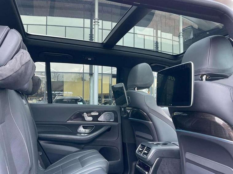 Active parking assist including parktronic and 360 degree camera, Attention assist, Bluetooth connectivity, Crosswind Assist, Direct steering, DYNAMIC SELECT with a choice of driving modes (ECO, Comfort, Sport, Sport+ and Individual), Easy-pack tailgate - Powered opening/closing automatically, ECO start/stop function, Front wireless charging system for mobile devices, Head up Display, MBUX augumented reality for navigation, MBUX Interior assistant, MBUX removable rear tablet with 7" screen diagonal and camera function + docking station in high-gloss black for storage and charging, Mercedes me connect, Parking pilot with front and rear sensors, steering assist and 360 camera, Service indicator (ASSYST), Smartphone integration with Apple CarPlay and Android auto, Soft closing aid for boot/doors, Wireless charging in rear, Airmatic air suspension with adaptive damping system + level adjustment, Diesel particulate filter, 1 data-enabled USB port in the oddments tray, 2 USB ports capable of charging in the 2nd seat row, 2 USB ports capable of charging in the 3rd seat row, 2 USB ports in centre console, 2x wireless headsets, 3.5 mm headphone jack, Burmester surround sound system, DAB Digital radio, MBUX rear seat entertainment system - two permanently-integrated full HD 11.6" touchscreent with full HD camera, Micro-HDMI, TV Receiver, USB-C, Adaptive brake lights, Adaptive high beam assist plus, AMG bodystyling front and rear aprons and side skirts, Chrome roof rails, Electrically folding trailer coupling with ESP trailer stabilisation, Electrically operated sunblind for rear side windows, Headlamp assist automatic headlamp activation, Illuminated running boards with rubber studs, LED tail lights, LED third brake light, Magic vision control with adaptive heated windscreen wiper system, Multibeam LED, Panoramic glass sunroof, Privacy glass, Rain sensor windscreen wipers, Tinted glass, Trailer Manoeuvring Assist, Underguard - full length reinforced underfloor panelling, 3 spoke multifunction sports steering wheel in wood/black nappa leather with touch control buttons, Air balance interior fragrance dispenser, AMG brushed stainless steel sports pedals with rubber studs, AMG floormats, Auto Mercedes-Benz child seat recognition sensor, Climate front seats, Climate rear seats for 2nd row, Comfort front headrests, Dashboard - upper and lower sections, beltline and door panels in Nappa leather, Easy entry/ electrically adjustable steering column, Easy-pack removable load compartment cover, Electric seat adjustment, Front centre armrest with storage compartment, Front gesture control, Front/rear reading lights, Heated 3rd row seats, Heated steering wheel, Illuminated front door sill panels with Mercedes-Benz lettering in white, Interior lighting - 64 colour Ambient lighting, Isofix child seat attachment, Load securing rings in luggage compartment, Luxury rear head restraints, Multi contour front seats with massage function, Multi contour rear seats with massage function, Nappa leather upholstery, Sunvisors with illuminated vanity mirrors, Temperature controlled cupholder, Temperature controlled rear cupholders, THERMOTRONIC luxury automatic climate control, multi-zone function with separate settings for driver/front passenger and rear., Widened luxury centre armrest, Driving assistance plus pack - GLS, Energizing plus package - GLS, Exclusive Trim package - GLS, Keyless go comfort package - GLS, Memory package - GLS, Mirror pack - GLS, Warmth comfort package - GLS, 3 point rear seatbelts, ABS with Brake Assist, Active bonnet, Adaptive brake system with hold function, Airbags - windowbags, Driver/Front Passenger airbags, Drivers knee airbag, Electrically adjustable easy entry for rear seats, Electronic four wheel traction control, Electronic parking brake, ESP with ASR, Front side airbags, Hill start assist, Rear side airbags, Tyre pressure monitor, Alarm system/interior protection/immobiliser, Remote central locking, High gloss anthracite lime wood trim, 23'' AMG 5 twin spoke alloy wheels in bicolour, Space saver spare wheel,