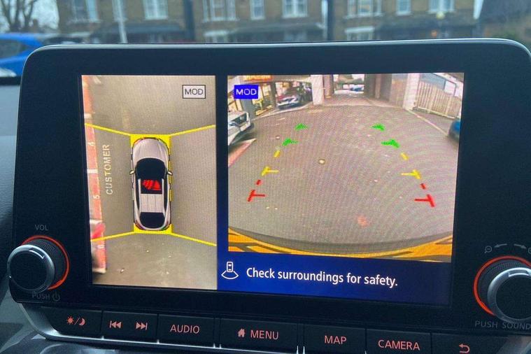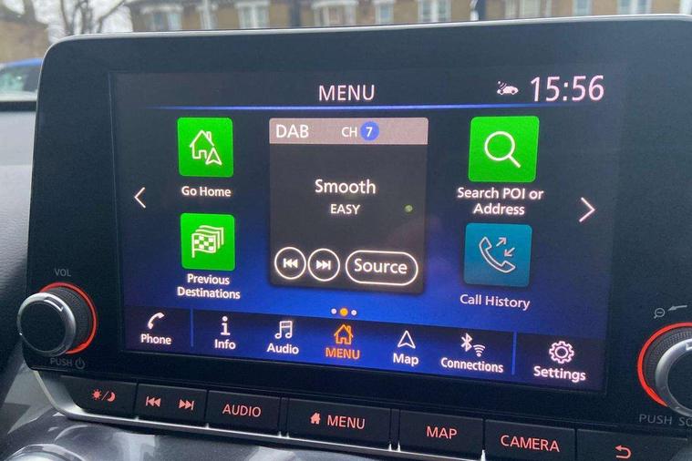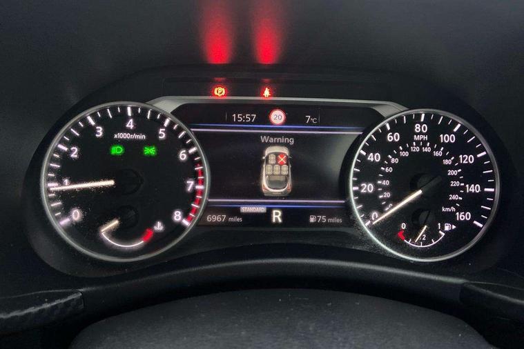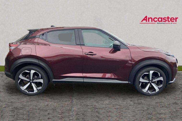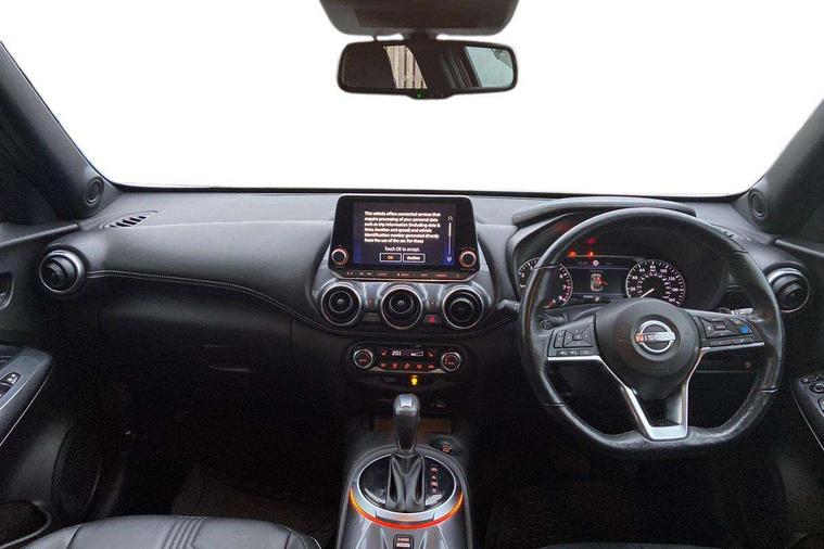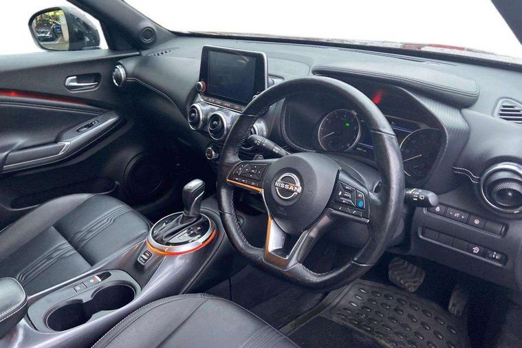 7" full colour TFT screen combimeter, Apple CarPlay and Google Android auto, Drive modes select (Eco, normal and sport), Emergency and breakdown call, Front parking sensor, Idle start/stop system, Intelligent lane intervention, Lane departure warning system, Nissan connect 8" touch screen entertainment system, Nissan connect nav with TomTom traffic, Nissan connect services and Wifi connection, Outside temperature sensor, Power Steering, Rear parking sensor, Traffic sign recognition, Trip computer, Voice recognition, Gasoline particulate filter, 10 Bose speakers 6 speakers and 2 headrest speakers for driver/passenger seats, Bluetooth system, USB, Aux-in and 12V socket, Bose personal sound stage control, DAB Digital radio, Rear console USB port, Auto dimming interior rear view mirror, Auto headlights, Automatic hazard signal with emergency stop signal, Body colour bumpers, Body colour door handles, Electrically adjustable door mirrors with integrated indicators, Follow me home headlights, Front and rear electric window with one touch driver window, Heated and auto folding door mirrors, High beam assist, LED daytime running lights, LED front fog lights, LED headlamps, LED rear fog lamp, LED rear lamps, Rain sensor windscreen wipers, Rear privacy glass, Rear side wing doors, Rear wiper, Thermaclear heated windscreen, Three blink turn signal, 3 height adjustable rear headrests, 3 seat bench in 2nd row, 60/40 split folding rear seat, Automatic climate control, Card holder on driver sunvisor, Door ambient lighting, Driver and passenger sliding and reclining seats, Driver seat back pocket, Driver side rear coat hanger, Driver/passenger sunvisors and vanity mirrors, Front and rear cabin lights, Front armrest, Front door pockets with bottle holders, Front head restraints, Front passenger isofix child seat anchorage point, Front/rear passenger grab handles, Gear console ambient circle lighting, Grey synthetic leather kneepad, Heated front seats, Height adjustable driver's seat, Height adjustable passenger seat, Internal chrome door handles, Leather gearshift knob, Leather steering wheel, Luggage board, Luggage space lighting, Monoform sporty seats, Multifunction steering wheel, Passenger seat back pocket, Rear door bottle holders, Single front passenger seat, Steering wheel mounted gearshift paddles, Synthetic leather upholstery, Telescopic steering wheel adjustment, Two cupholders in front centre console, Two rear isofix child seat anchorage points with top tether, Welcome light and console tray ambient lighting, ProPilot pack - Juke, ABS with EBD and brake assist, Active ride control, Active Trace Control, Driver and passenger airbags, Driver and passenger side airbags, Electric handbrake with auto hold function, Electronic Stability Programme (ESP), Front and rear curtain airbags, Height adjustable seatbelts, Hill start assist, Intelligent emergency braking with pedestrian and cyclist recognition, Rear door child safety locks, Seatbelt reminder for driver/front passenger and rear seats, Single tone horn, Three 3 point rear seatbelts, Traction control, Tyre pressure monitoring system, VDC Dynamic Vehicle Control, Ventilated rear brake discs, Alarm, Immobiliser, Intelligent key and start push button with walk away lock and approach unlock functions, Remote central locking,