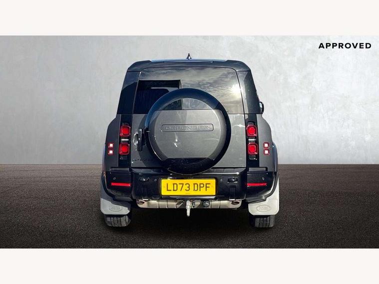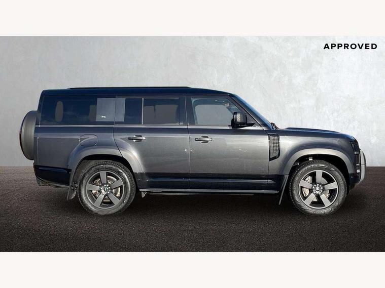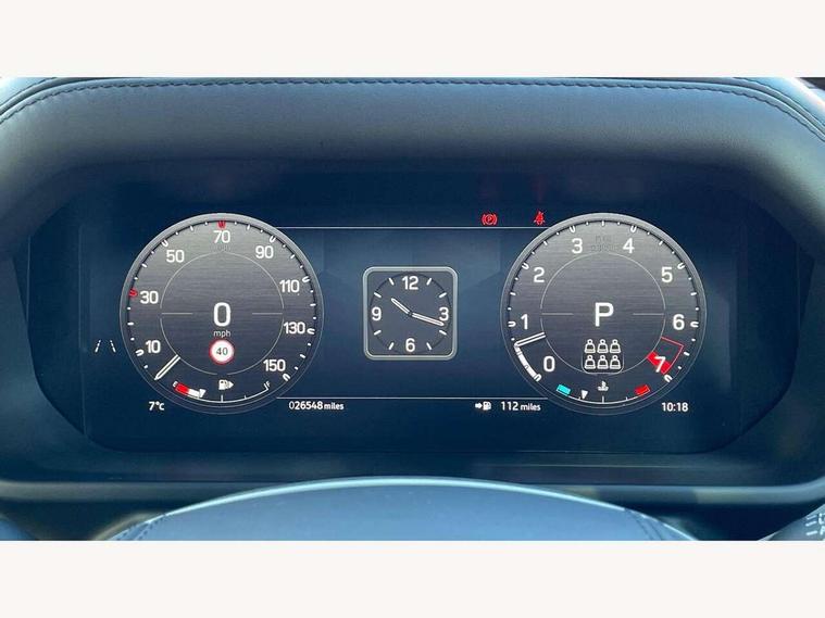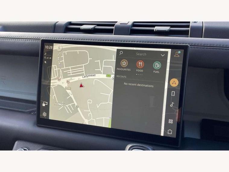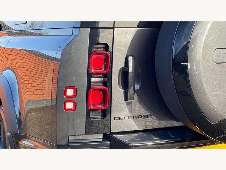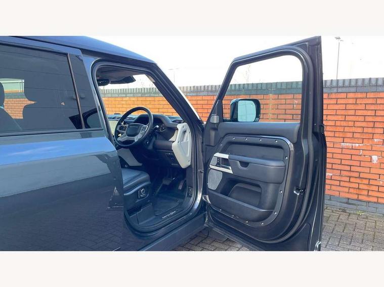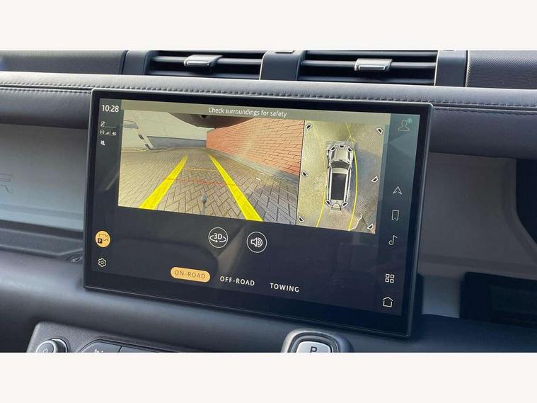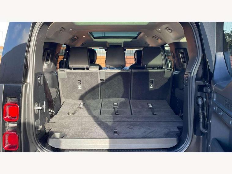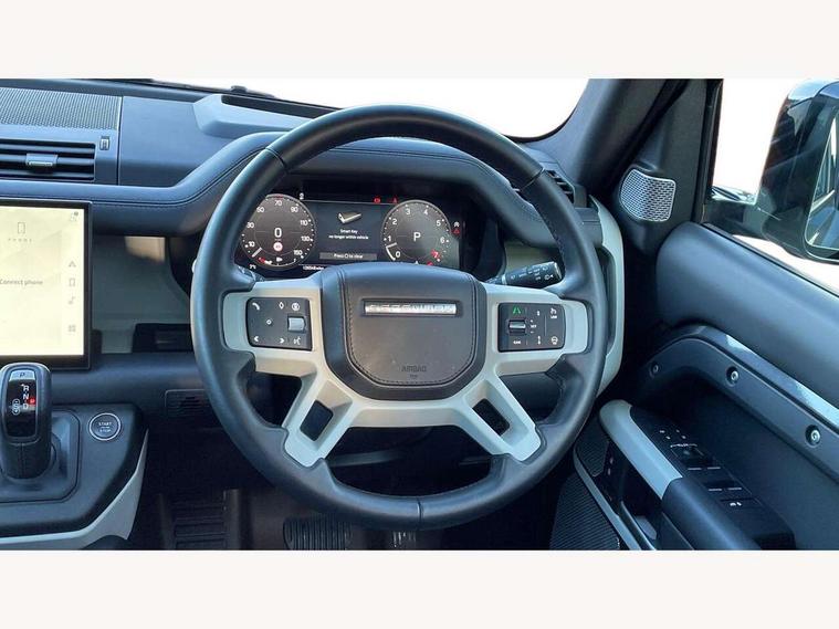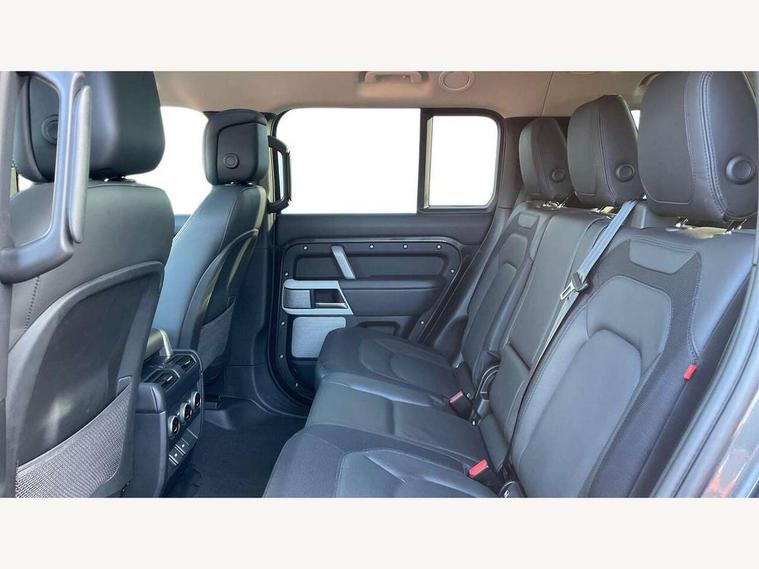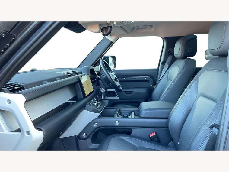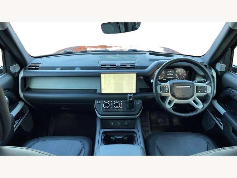11.4" touchscreen, 360 degree parking aid, 3D Surround Camera with 360 View, 180 Rear View, Front Traffic Detection, Forward Vehicle Guidance, Tow Hitch Assist and clear sight Ground View, Adaptive cruise control, Android Auto, Apple CarPlay, Assisted tailgate with soft close, Blind spot assist, Bluetooth system, Brake pad wear indicator, Clear exit monitor, Connected navigation pro, Driver condition monitor, Electric power assisted steering (EPAS), Interactive driver display, Lane keep assist, Push button start, Rear collision monitor, Rear traffic monitor, Traffic sign recognition with adaptive speed limiter, Trip computer, Wade Sensing, 8 speed automatic transmission, Adaptive dynamics, All wheel drive system, Electronic air suspension, Twin speed transfer box, DAB Radio (Digital Audio Broadcasting), Meridian 400w sound audio system with 11 speakers and subwoofer, Pivi pro connected, Auto dimming interior rear view mirror, Automatic headlight levelling, Automatic headlights, Black exposed rear recovery eyes, Black roof rails, Centre high mounted stop light, Electric heated/power fold door mirrors with approach lights and auto dimming driver side, Electric windows with one touch open/close and anti-trap, Follow me home lighting, Front fog lights, Heated rear window with timer, Heated windscreen, LED tail lights, Privacy glass, Puddle lights, Rain sensing windscreen wipers, Rear fog lights, Rear side wing doors, Rear wiper, Side hinged tailgate, Sliding panoramic roof, Trailer stability assist, X-Dynamic badge, 12V power socket in loadspace, 14 way heated and cooled electric adjustable memory front seats with 4 way manual headrests, 3 seat bench in 2nd row, 3 seat bench in third row, Air quality sensor, Alpine lights, Cabin Air Purification plus, Configurable cabin lighting, Durable rubber cabin flooring, Durable rubber loadspace flooring, Electric cabin pre conditioning, Electric reach + rake adjustable steering column, Extended leather upgrade, Footwell lights, Front passenger isofix child seat attachment, Heated steering wheel, Loadspace cover, Loadspace Hook, Multifunction steering wheel, Overhead stowage for sunglasses, Premium cabin lighting, Rear headrests, Rear ISOFIX, Rear reading lights, Single front passenger seat, Storage glovebox, Sunvisors with illuminated vanity mirrors, Twin front cupholders with cover, Online pack with data plan - Defender, 5 x 3 point seatbelts, ABS, Brake hold function, Cornering brake control (CBC), Customer configurable autolock, DSC - Dynamic Stability Control, EBD - Electronic brakeforce distribution, Electric parking brake (EPB), Emergency brake assist, Emergency braking, ESP + traction control, Front airbags with passenger seat occupant detector, HDC - Hill descent control, Hill launch assist, Low traction launch, Power operated child locks, Remote for (e-Call, Optimised assistance call, InControl app, Climate, beep and flash and door), RSC - Roll stability control, Seat belt reminder, TPMS (Tyre pressure monitoring system), Alarm, Immobiliser, Intrusion sensor, Keyless entry, Locking wheel nuts, Body coloured spare wheel cover,