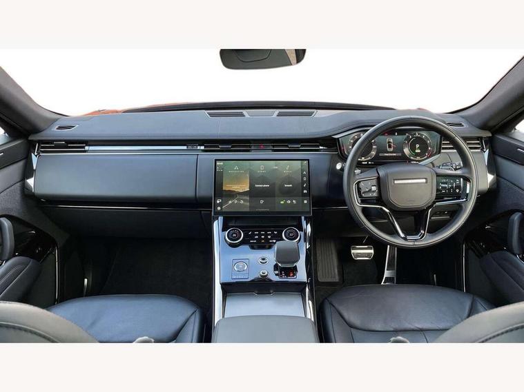 13.1" Touchscreen, 3D 360 degree surround camera with wade sensing, Adaptive cruise control with steering assist, Android Auto, Apple car play, Blind spot assist, Bluetooth connectivity streaming, Driver condition response, Eco mode, Electric power assisted steering (EPAS), Interactive Driver display instrument cluster, Lane departure warning system, Lane keep assist, Push button start, Rear collision monitor, Rear traffic monitor, Remote, Traffic sign recognition with adaptive speed limiter, Trip computer, Wireless device charging with phone signal booster, 8 speed automatic transmission, Adaptive dynamics, All wheel drive system, Automatic access height, Home charging cable, Public charging cable, Terrain Response 2, Twin speed transfer box, DAB Radio (Digital Audio Broadcasting), Incontrol protect - SOS emergency call with automatic collision detection, optimised assistance call and Incontrol remote app essential, Pivi pro connected, USB/aux input socket, Adaptive brake lights, Automatic headlight levelling, Automatic headlights, Centre high mounted stop light, Electric heated/power fold memory door mirrors with approach lights and auto dimming driver side, Electric windows with one touch open/close and anti trap, Flush deployable exterior door handles, Follow me home lighting, Front and rear recovery eyes, Headlight power wash, Heated rear window, Heated washer jets, Heated windscreen, Integrated twin tailpipes, LED tail lights, No badges, Rain sensing windscreen wipers, Rear animated directional indicators, Rear fog lights, Rear side wing doors, Rear wash/wipe, Remote window closing, Side repeater indicators in mirror, Trailer stability assist, Winter wiper park position, 3 seat bench in 2nd row, 60:40 seats with power recline and loadthrough, Air quality sensor, Auto air recirculation, Bright metal foot pedals, Centre console with armrest, Customer configurable single point entry, Driver's footrest, Easy boot loading, Ebony console door armrests and seatbelts, Electric adjustable steering column, Front and rear cupholders, Front door storage space, Front head restraints, Front map lights, Front seat back map pockets, Front stowage pocket, Front/rear passenger grab handles, Gearshift paddles, Heated steering wheel, Isofix child seat preparation, Loadspace cover, Loadspace Hook, Loadspace light, Loadspace mounting provisions, Lockable glovebox, Luggage tie-downs in loadspace, Multifunction steering wheel, Pollen filter, Power socket, Rear centre armrest, Rear head restraints, Rear ISOFIX, Single front passenger seat, Three 12V accessory power outlets, Upper secondary glovebox, Online pack with data plan - Range Rover Sport, 3 point seatbelts on all seats, Anti-lock braking system (ABS), Brake pre-fill technology, Configurable autolock, Cornering brake control (CBC), DSC - Dynamic Stability Control, EBD - Electronic brakeforce distribution, Electric parking brake, Electronic traction control, Emergency braking, Front seatbelt pretensioners, Front side airbags, Height adjustable front seatbelts, Hill descent control, Hill launch assist, Low traction launch, Occupant protection assist, Passenger seat occupant detector with front airbags, Power operated child locks, Roll stability control, Seatbelt warning, TPMS (Tyre pressure monitoring system), Immobiliser, Intrusion sensor, Keyless entry, Locking wheel nuts, Perimetric and volumetric anti theft alarm, Remote locking, Moonlight noble chrome interior finishers,
