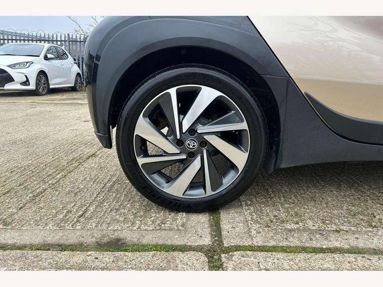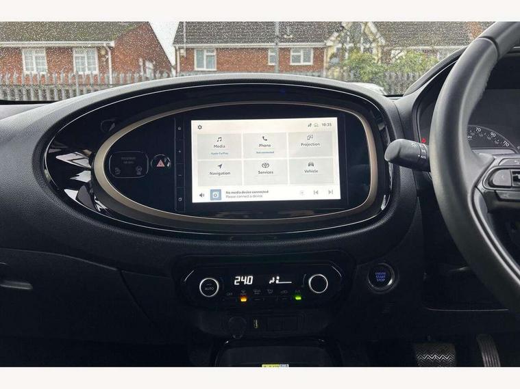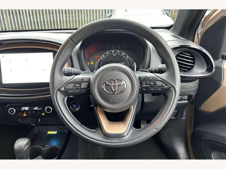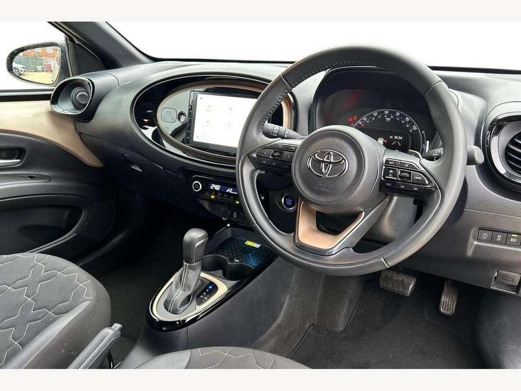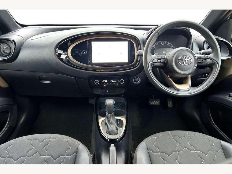 4.2" TFT colour screen, Adjustable speed limiter, Analogue speedometer, Bluetooth connectivity, Digital tachograph, Driver attention alert system, eCall emergency call system, ECO-driving indicator, Electric power steering, Front and rear parking sensors with auto brake, Intersection turn assist, Key reminder warning, Noise reduction kit, Pre collision system with emergency steering assist, Remote boot door release on key, Reversing camera with static guide lines, Smart entry and push button start, Speed limit display, Start and stop, Wireless charger, Wireless Smartphone Integration includes Apple CarPlay and Android auto, Vehicle Stability Control (VSC), 4 speakers, 9" HD multimedia display touch screen with Toyota smart connect, DAB digital audio broadcast, USB connector, Auto headlights, Auto wipers, Automatic headlights cut-off, Automatic high beam On/Off switch, Bicycle towing hook, Black fog light surrounds, Black side protection mouldings, Black wheel arch mouldings, Body colour door handles, Body coloured front bumper, Boot door scuff plate, Eclipse black rear bumper, Electric heated door mirrors, Follow me home headlights, Front and rear underruns in silver, Front fog lights, Front power windows, Gloss black door mirrors, Gloss black upper front grille, Headlight cut-off reminder, LED daytime running lights guide, LED front light guide, LED High mounted stop lamp, LED projector headlights, Manual day/night rear view mirror, Manual headlight levelling, Pagoda roof, Power adjustable door mirrors, Privacy glass, Rain sensor, Rear combination lights LED bulb type, Rear side wing doors, Rear windscreen defogger, Rear windscreen wiper, Remote hazard lights system, Short antenna, Variable intermittent windscreen wipers, 12v power outlet - front, 2 seat bench in 2nd row, 3 spoke leather steering wheel, 50/50 split folding rear seat, Adhesive roof headlining, Adjustable speed limiter switch on steering wheel, Audio and telephone switches on steering wheel, Auto air conditioning, Black roof lining, Body colour satin anodised insert on steering wheel, Boot light, Centre room light, Chrome interior door handles, Chrome surround on air conditioning buttons, Clean air filter, Floor mats, Front and rear cup holders, Front head rest deco art, Front head restraints, Gear shift indicator, Height adjustable driver seat, Intelligent adaptive cruise control switch on steering wheel, ISOFIX child restraint system on rear seats, Lane departure alert switch on steering wheel, Leather gearshift knob, Light blue ambient lighting in centre console, Manual tilt steering wheel, Manually reclining and sliding driver seat, Manually reclining and sliding front passenger seat, Multimedia switches on steering wheel, Paddle shift levers on steering wheel, Partial synthetic leather upholstery, Pollen filter, Rear door pockets, Rear head restraints, Remote air-conditioning system, Satin silver insert on gear shift knob, Single compartment glovebox with lights, Single front passenger seat, Soft tonneau cover, Sun visors with mirror on driver and passenger side, Voice recognition switch on steering wheel, Toyota safety sense pack - Aygo X, Anti lock braking system + Electronic brake force distribution, Child safety door lock, Emergency brake light signal (EBS), Hill start assist control (HAC), Passenger airbag on/off switch, Seat belt reminder for front and rear seats, Supplement restraints system (SRS) - 6 airbags, Traction control, Tyre pressure warning system, Immobiliser, Remote power door locks, Black wheel centre caps, Tyre repair kit,