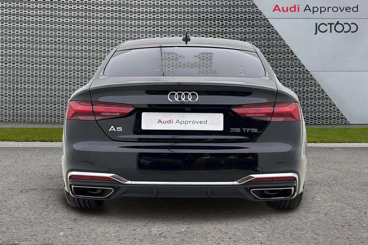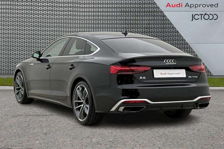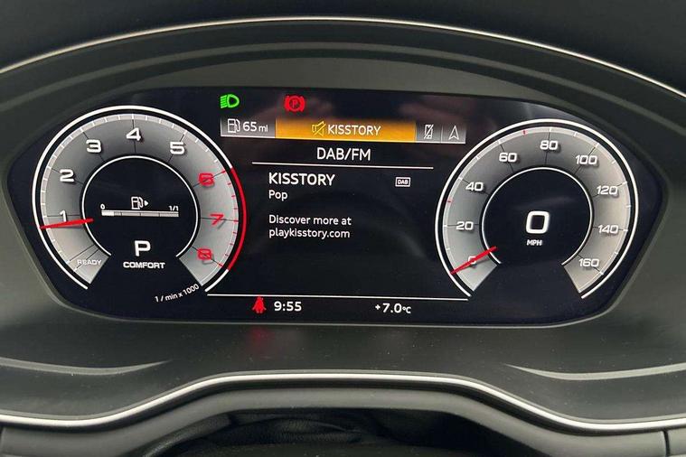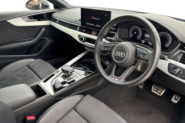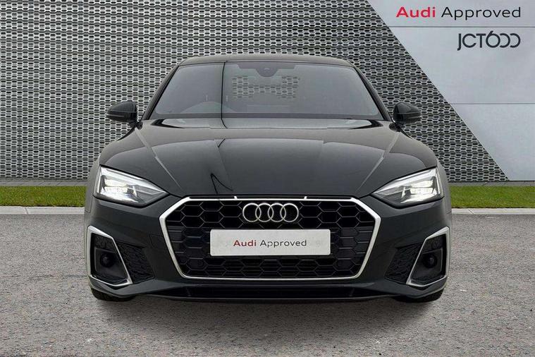 Audi connect safety and service (e-call), Audi drive select (Auto, Comfort, Dynamic and Individual), Audi smartphone interface, Audi virtual cockpit - 12.3" full colour digital instrument cluster, vehicle/engine speed, Radio/media information+Driver assistance systems, Automatic start-stop system with coasting functionality and efficiency programme, Bluetooth interface, Camera based traffic sign recognition, Electro-mechanical power steering, Email, calendar and text messages displayed via MMI, Front and rear parking sensors, Lane departure warning, MMI nav+ with MMI touch - 10.1" high resolution MMI display, touch sensitive, 3D map, route/country info, dynamic route guide, personal route assist, Power operated tailgate, Rear view camera, Service interval indicator, Voice control system, 54 litre fuel tank, Sports suspension lowered by 23mm, 8 passive loudspeakers, CD player, DAB digital radio reception, Two additional USB ports for rear passenger in rear centre console, Two SDXC card slots, Auto dimming door mirrors, Auto dimming rear view mirror, Body colour bumpers, Body colour door handles, Body colour front spoiler lip, Body colour side sill trim, Body coloured door mirrors, Electric adjustable heated door mirrors, Electric folding door mirrors, Electric front windows, Front fog lights, Honeycomb structure radiator grille in grained matt black, Kerb-view function for passenger side, LED headlights and rear lights with LED daytime running lights, LED side indicator lights integrated into door mirrors, LED third brake light, Matt aluminium silver tailpipe trim, Privacy glass, Rain and light sensors, Rear side wing doors, Rear wiper, S line badges on front wings, S line front and rear bumpers with side skirts, S Line rear diffuser in matt anthracite black with trim strip in matt aluminium silver, Side air inlets in grained matt black with matt aluminium silver inlay, Variable front intermittent wipers, Windscreen with acoustic glazing, 3 seat bench in 2nd row, 3 spoke high multifunction leather sport steering wheel with paddle shfit and S badging perforated leather grips, 4 way electric lumbar support for driver and front passenger, 40/20/40 split folding 3 seater rear bench seat, Adjustable steering column, Black cloth headlining, Black perforated leather gearknob, Contrast stitching on seats, steering wheel and gear lever gaiter, Deluxe 3 zone electronic climate control, Front centre armrest, Front head restraints, Front/rear floor mats, Heated front seats, Illuminated door sill trim with S logo, ISOFIX child seat mounting and top tether, Luggage compartment mat, Manual seat adjustment, Rear centre armrest, Rear headrests, Single front passenger seat, Stainless steel pedals and footrest, Sunvisors with vanity mirrors, LED interior light pack - A5/RS5, 3x3 point rear seatbelts, 6 airbags - Driver, front passenger, curtain and side airbags, Attention and drowsiness assist, Electromechanical parking brake, Electronic Stabilisation Control (ESC) including ABS, ASR and EDL, Front passenger airbag deactivation, Height adjustable front seatbelts, Hill hold assist, Manual child lock in rear doors, Multi collision brake assist, Pop-up bonnet for pedestrian protection, Pre sense city, Seatbelt monitoring, Tyre pressure warning, Variable restraint system, Warning triangle and first aid kit, Anti theft alarm system, Anti theft wheel bolts, Immobiliser, Keyless Go, Remote central locking, Matt brushed aluminium inlays, Tool kit, Tyre repair kit,