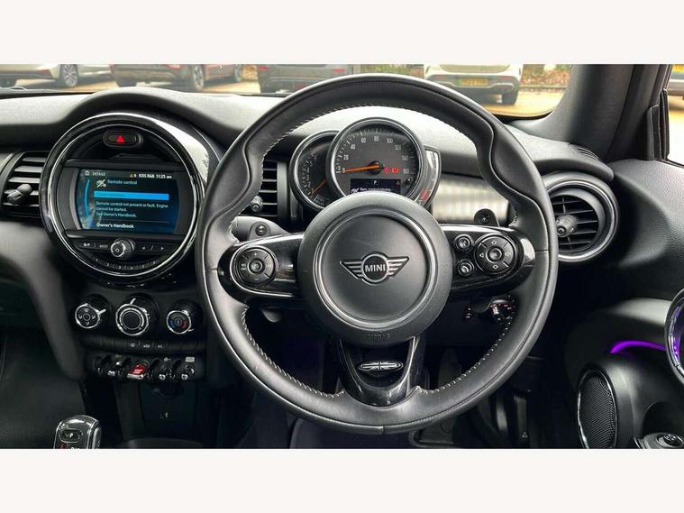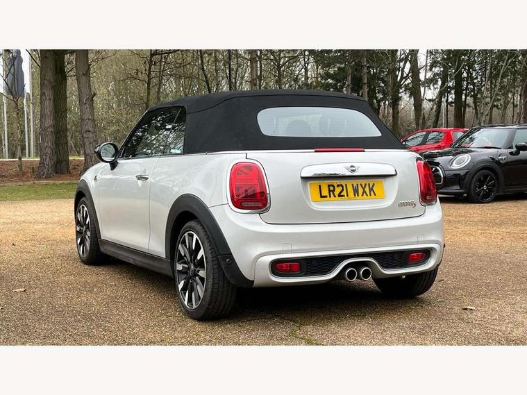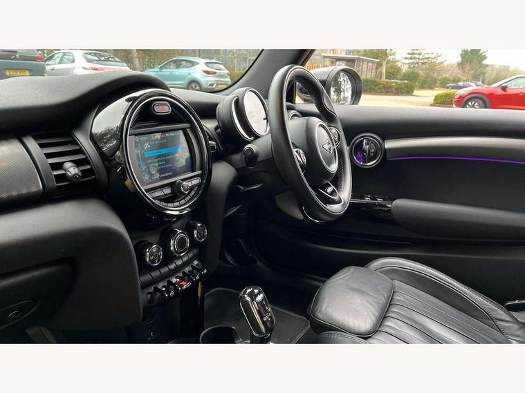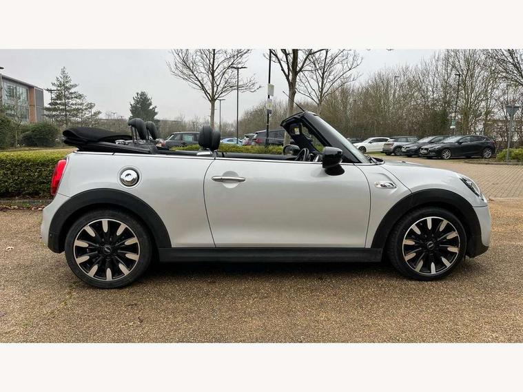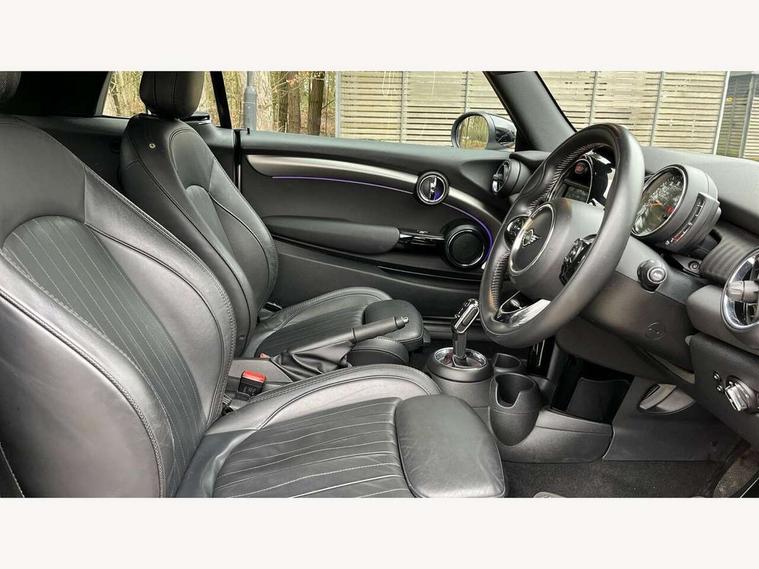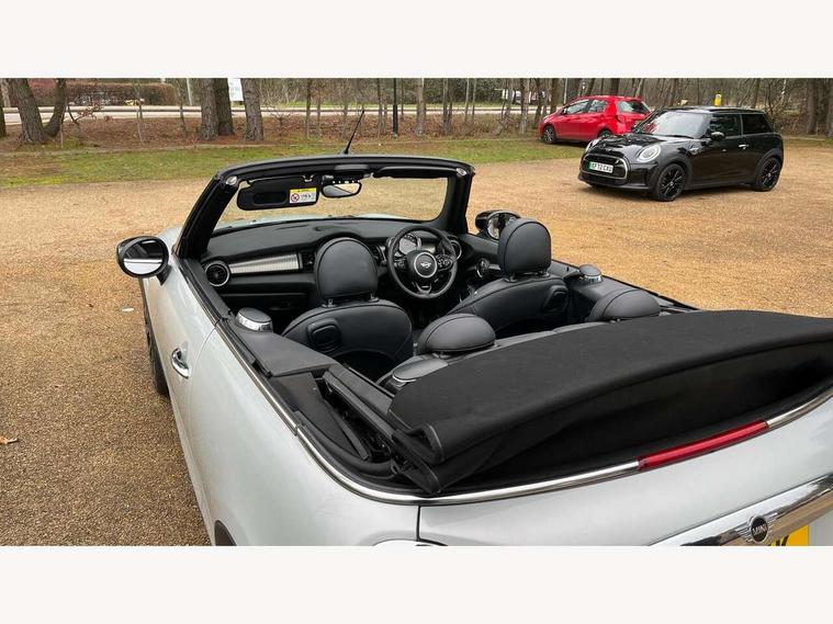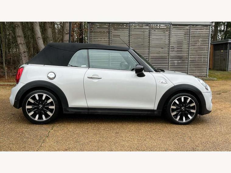 Automatic start/stop function with brake energy recuperation, Compatible mobile phone bluetooth with audio streaming, Electro-mechanical speed dependant steering assistance, Instrument cluster, MINI Driving Modes - centre toggle switch to control driving setting (sport, mid and green), Mini E-call, MINI TeleServices, On board computer, Rear park distance control, Service interval indicator, Double Vanos system, Fully variable valve control, High precision injection, Performance Control, Steptronic sport transmission with double clutch and steering wheel paddles, 6.5" touchscreen with LED ring, FM tuner and DAB digital radio, Automatic headlight activation switch, Bonnet scoop, Chrome plated fuel cap, Dynamic brake lights, Electric windows, Fully electric black softtop with integrated sunroof functionality, Heated rear window, Heated windscreen washer jets, LED headlight with closed ring and daytime driving lights, Metal door sill strips with Cooper S imprint, Model logo Cooper S on right of tailgate, Radiator grille bars, tailgate handle, lower front grille grating, rear central fog light in chrome, Rain sensor window wipers, Rear fog lights, Rear LED lights with union jack design, Side scuttle panel with integrated indicator, Sun/heat protection glass, Two central exhaust tailpipes with chrome finisher, White indicator lenses, 12V Accessory socket in centre console, 4 lashing eyes in luggage compartment, 50/50 split folding rear seats, Air vents, gear lever base, speakers in doors, door handles in chrome, Chrome interior highlights, Cupholders, Easy Load boot handles, Front and rear head restraints, Front and rear isofix with front passenger airbag deactivation, Front seatback storage pockets, Glove compartment, Height and length steering column adjustment, Interior lighting with 12 basic colours selectable via toggle switch in roof, Leather gearshift lever and handbrake gaiters, LED reading lights, vanity mirror lights, front foot well light and spotlight on front seats, Manual air conditioning, Mechanical seat adjustment, driver seat height adjust, forward/back and front seats backrest, Mini logo projection on floor from drivers exterior mirror, MINI Yours fine walk nappa leather steering wheel with contrast stitching in silver and MINI Yours badge, Multifunction steering wheel, Storage compartments in doors, Sunvisors with vanity mirrors, Convertible pack with comfort access - Mini Convertible, 3 point seatbelts on all four seats, 6 Airbags - front, side and seat belt tensioners, Active rollover protection, Anti-lock braking system (ABS), DSC - Dynamic Stability Control, Front and rear disc brakes, Hill start assist, Two tone horn, Tyre pressure monitoring system, Alarm system with tilt sensor, monitoring doors, bonnet interior and tailgate, Electronic vehicle immobiliser, Keyless Go, Chrome line interior, Tool kit,