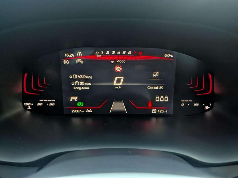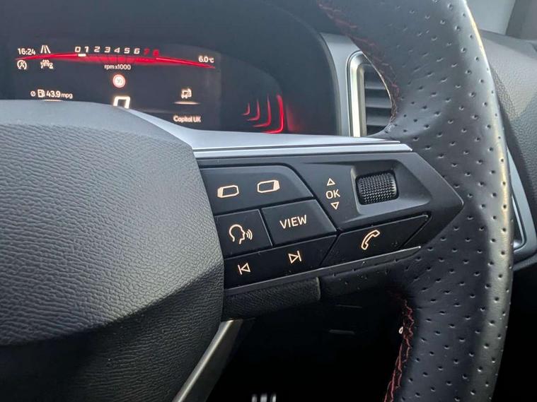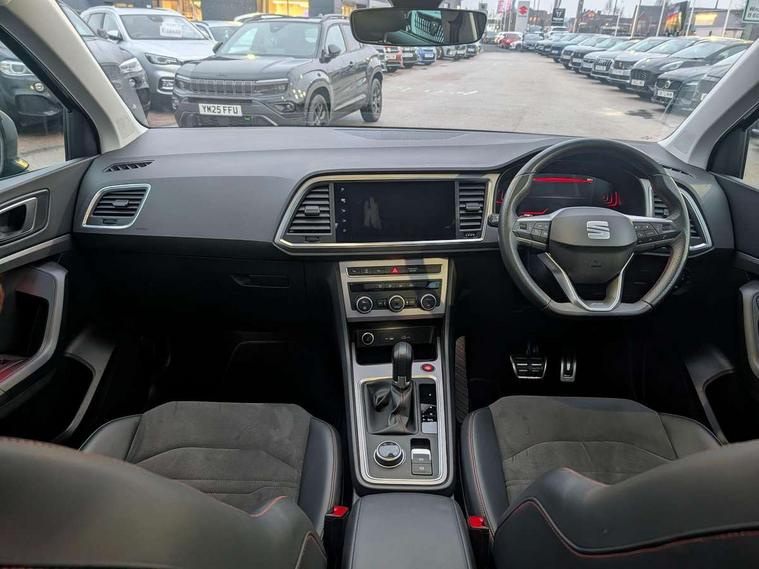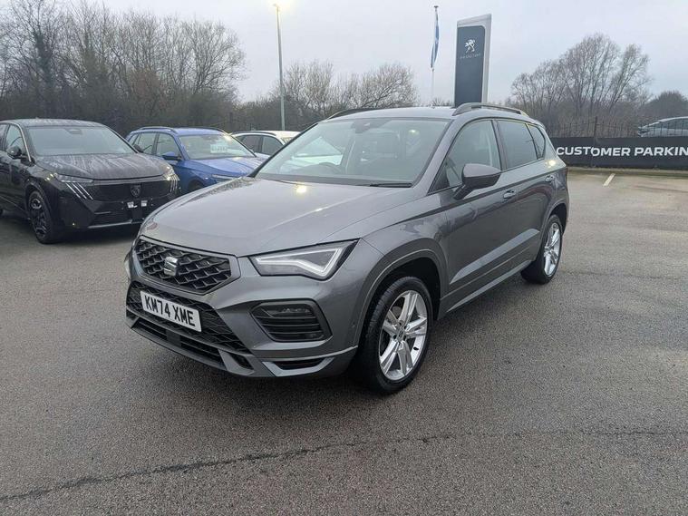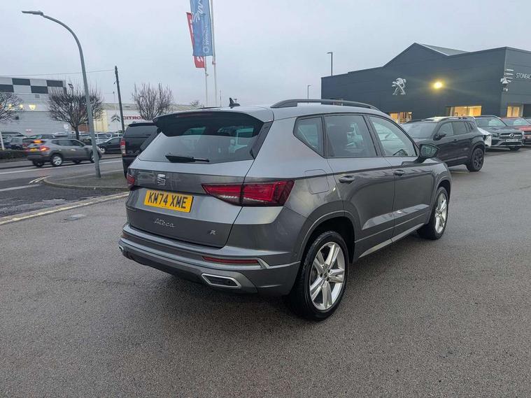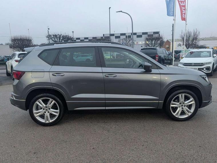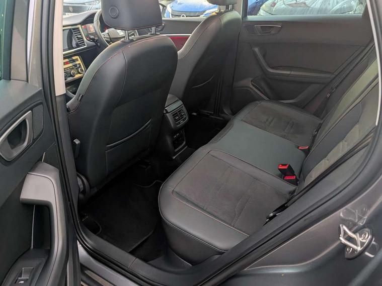8" Digital cockpit, Colour multi-function on board computer display, Cruise control system with speed limiter, E-call, Outside temperature gauge, Progressive power assisted steering, SEAT drive profile with driving experience button - Normal, Sport, Eco and Individual mode, gearshift, steering and throttle response, Self parking functionality (includes front and rear parking sensors), Start/stop system, Tailgate, Trip computer, wired and wireless full link smartphone integration, Wireless phone charger, Steering wheel mounted audio/phone controls, Black roof rails, Black side window trim, Body colour bumpers, Body coloured wheel arch surrounds, Chrome front grille frame, Dark tinted rear windows, Daytime running lights, Door mirrors with welcome light silhouette, Dynamic headlight range control with self adjusting whilst driving, Electric adjustable/heated/folding door mirrors, Front and rear electric windows, Full LED headlamps with lens and LED front fog lamps with cornering function, Illuminated aluminium front door sill, LED 3rd brake light, LED rear tail lights with dynamic indicators, Rear exhaust tailpipe, Rear fog lights, Rear side wing doors, Rear wash/wipe, Roof spoiler, Variable front intermittent wipers, 12V socket in front, 3 seat bench in 2nd row, 60/40 split folding rear seat, Aluminium pedals, Dinamica upholstery with front comfort seats, Drawer under right front seat, Dual zone climate control, Front and rear head restraints, Front centre armrest, Front seat back storage pockets, Height adjustable driver and passenger seat with lumbar adjustment, ISOFIX points in outer rear seats with top tether anchorage points, Leather sports steering wheel and gear knob, Rear armrest and easy back seat release mechanism from boot, Single front passenger seat, Steering wheel mounted gearshift paddles, Convenience pack - Ateca, Interior lighting pack - Ateca, Navigation system pack with DAB - Ateca, Safety and driving pack with attention and drowsiness assist - Ateca, 3x3 point rear seatbelts, ABS, Traction control system (TCS), Electronic stability control (ESC) and Electronic differential lock system (XDS), Airbags - Driver and front passenger airbag with deactivation, front side, two curtain and driver's knee airbags, Electric parking brake with auto hold function, Front and rear seatbelt reminder, Front assist with autonomous emergency braking, Hill hold control, Manual rear child locks, Single tone horn, Tiredness recognition system, Tyre pressure monitoring system, Alarm, Keyless entry, Locking wheel bolts, Remote central locking, Chrome interior detailing, 18" Brillaint silver alloy wheels,
