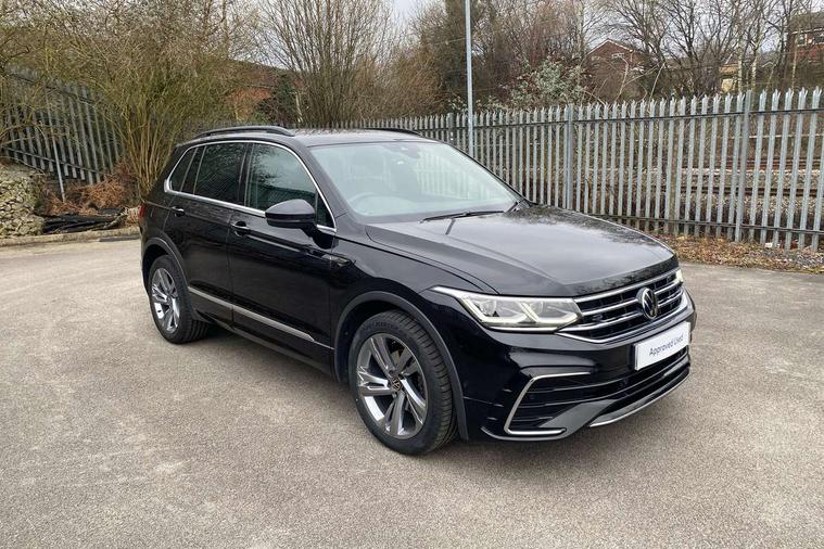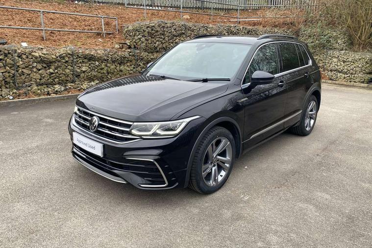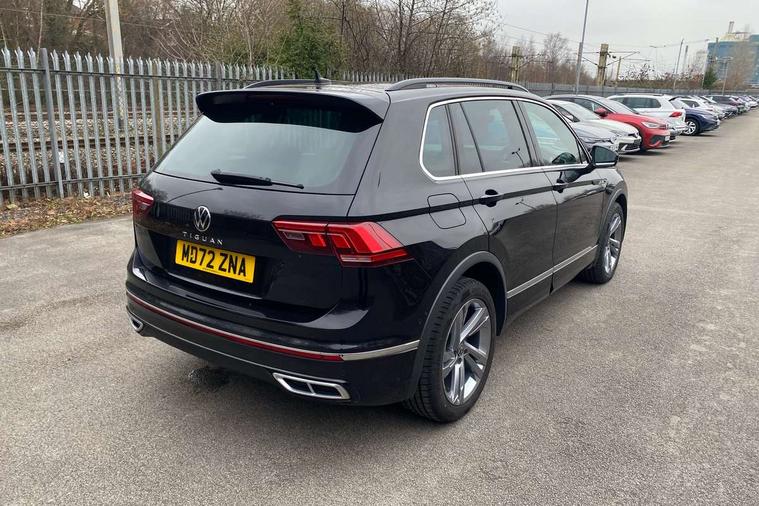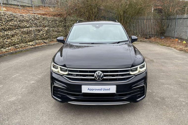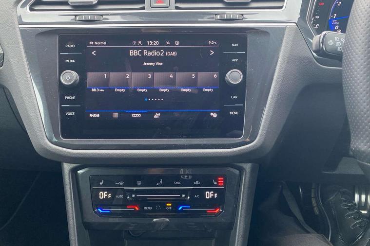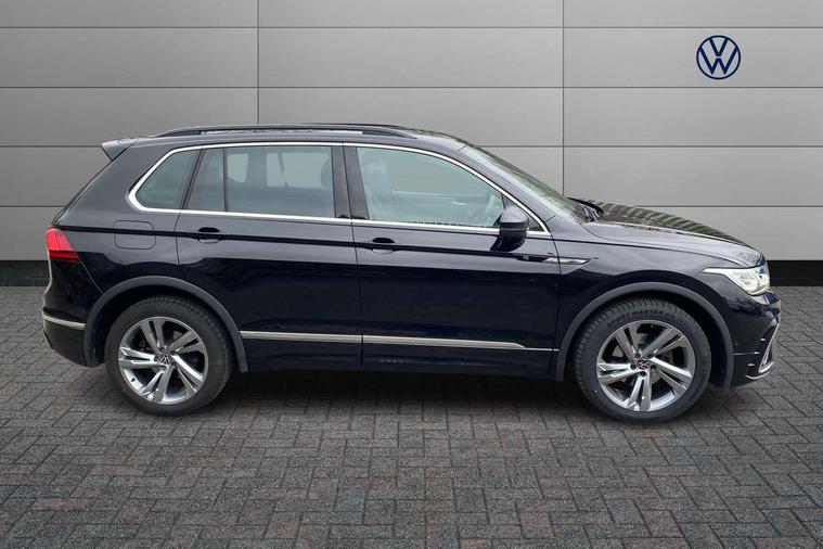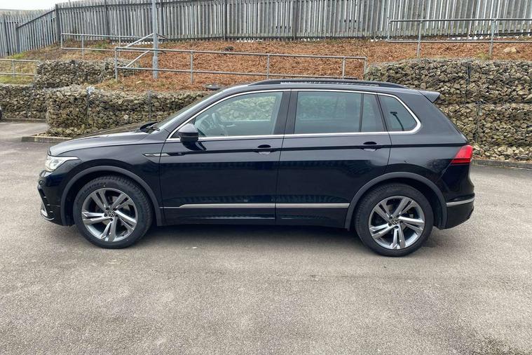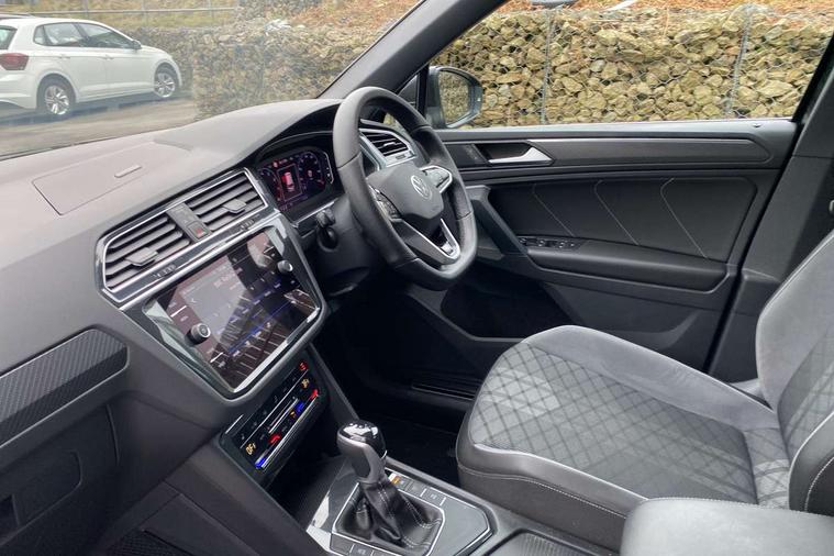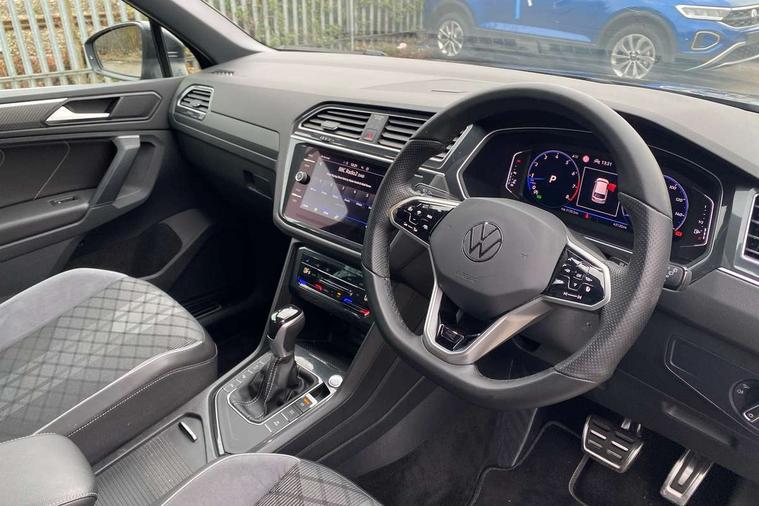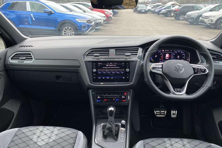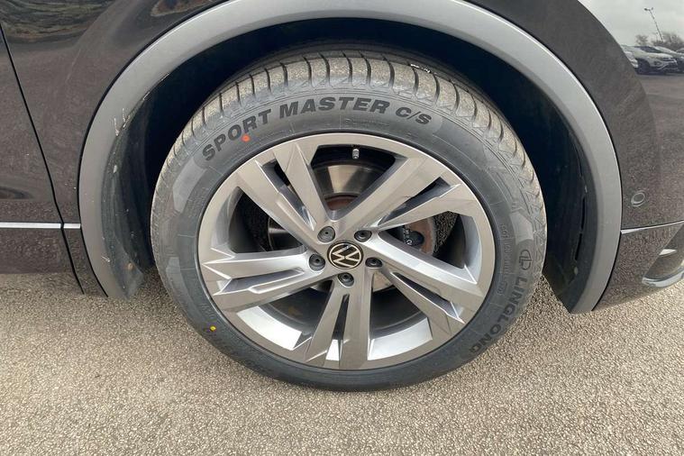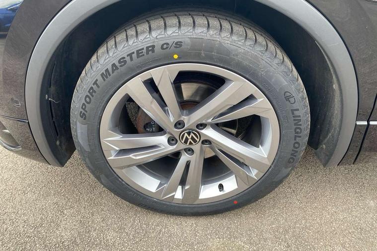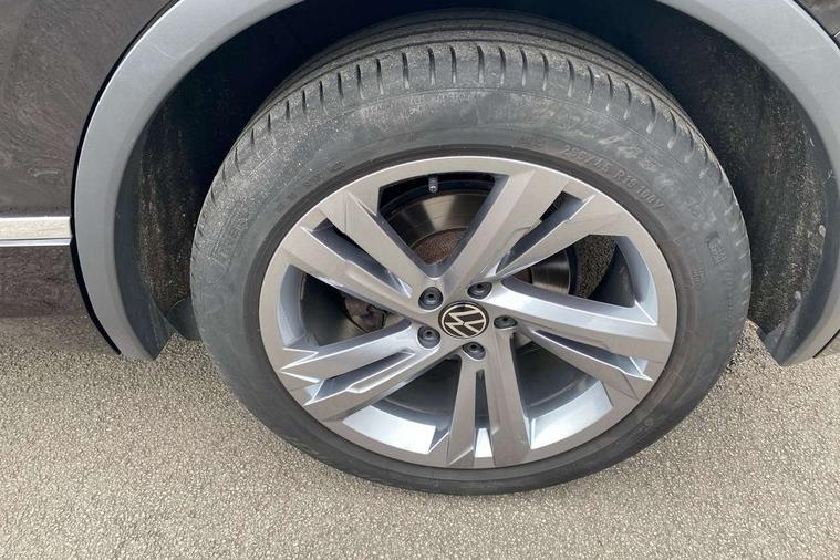 Adaptive cruise control ACC stop and go including speed limiter, App-Connect incl. App-Connect Wireless for Apple CarPlay and Android Auto, Bluetooth phone integration system, Comfort drive travel assist, Digital cockpit pro, Driver alert system, Driver profile selection, Dynamic road sign display, eCall emergency call system, Electromechanical speed sensitive power steering, Emergency assist, Front and rear parking distance sensors, Instrument cluster mph speedometer Great Britain, Lane keeping system Lane Assist, Lights on warning, Multifunction front facing camera, Outside temperature display, Premium multifunction display with multi colour display, Preparation for subsequent activation Navigation feature Discover Media includes Streaming and Internet, Remote control boot opening, Rev counter, Service interval indicator, Speed limit display, Start/stop system with regenerative braking, Tailgate/trunk lid unlocking from outside, Trip computer, Warning sound and light for doors and tailgate open, Battery regeneration during braking, Sports suspension, 8 Speakers, Digital radio reception DAB+, Diversity antenna for FM reception, Radio, Auto dimming interior rear view mirror, Automatic headlight control system, Body colored bumpers in R-Line style, Body colored exterior mirror housings, Body colour door handles, Chrome moldings on the side windows, Coming/leaving home lighting function, Dynamic headlight range control, Front and rear electric windows, Heated rear window, High level 3rd brake light, Laminated safety glass windshield, heat and sound insulating, LED headlamps with LED separate daytime running light and dynamic cornering light, LED rear combination lamps, LED rear number plate lights, License plate carrier in front and rear, Poor weather light and cornering light, Power adjustable, folding and heated door mirrors with surround lighting, front passenger exterior mirror lowering function, Privacy glass for rear side windows and rear window, R Line body kit, R Line side sills, Rain sensor, Rear exhaust tailpipe, Rear fog lamp, Rear side wing doors, Rear spoiler in R style, Rear windscreen washer and wiper with interval delay, Side and rear windows in heat insulating glass, Trailer Stability Programme, Unique R Line badging, Windscreen wipers/ intermittent wipe + 4 position delay, 12V outlet in center console rear and in luggage compartment, 12V outlet in front and tray, 2 LED front reading lights, 2 LED rear reading lights, 3 bench rear seats in 2nd row, 3 rear headrests, Air Care Climatronic 3 zone automatic climate control with enhanced air filter and controls in the rear, Art Velours greyson sports cloth upholstery, Backrest release for left front seat, Black headlining, Brushed stainless steel pedals and footrest, Carpet mats in front and rear with decorative stitching in Gray, Climate control unit rear with touch function, Door and side trim panel in foam film, insert in leatherette, Driver + front passenger lumbar support, Front footwell illumination, Front scuff plates in aluminum with R-Line logo, Front seats head restraints (x-adjustment), Height adjustable front seats, Height/reach adjust steering wheel, Isofix Preparation 2 Rear child seats, Leather gear knob, Rear bench seat asymetrically split folding, longitudinally movable and folding with load-through hatch and center armrest, Remote unlocking for rear seat backrest, Single front passenger seat, Sun visors with illuminated vanity mirrors, Top front comfort seats, Winter pack - Tiguan, 3 point seat belt for centre rear seats, 3 point seat belts with seat belt pretensioners for the outer rear seats, Curtain airbags for front and rear passengers, Driver/Front Passenger airbags, Drivers knee airbag, Electronic parking brake with auto hold, Electronic Stability Control with driver steering recommendation, ABS, ASR, EDL, EDTC and trailer stabilization, Front assist with autonomous emergency braking (for Adaptive Cruise Control ACC up to 130 mph), Front disc brakes, Front passenger airbag deactivation, Front side airbags, Height adjustable front 3 point seatbelts + pretensioners, Manual child proof rear door locks, Pedestrian monitoring system, Proactive passenger protection system in combination with front assist, Rear disc brakes, Two tone horn, Tyre pressure loss indicator, Warning sound and light for front seat belts if unfastened, Warning triangle, Anti theft alarm system with interior monitoring, backup horn and towing protection, Anti theft wheel bolts, Electronic engine immobiliser, Keyless locking and starting system keyless access with safelock, Chrome elements on the mirror switch power window switches and door pulls, Decorative inserts Carbon Gray for dashboard and front door trim panels, Interior door handle in matte chrome, 19" Valencia alloy wheels with AirStop tyres, Tool kit, Tyre mobility kit Includes 12V compressor and tyre sealant,