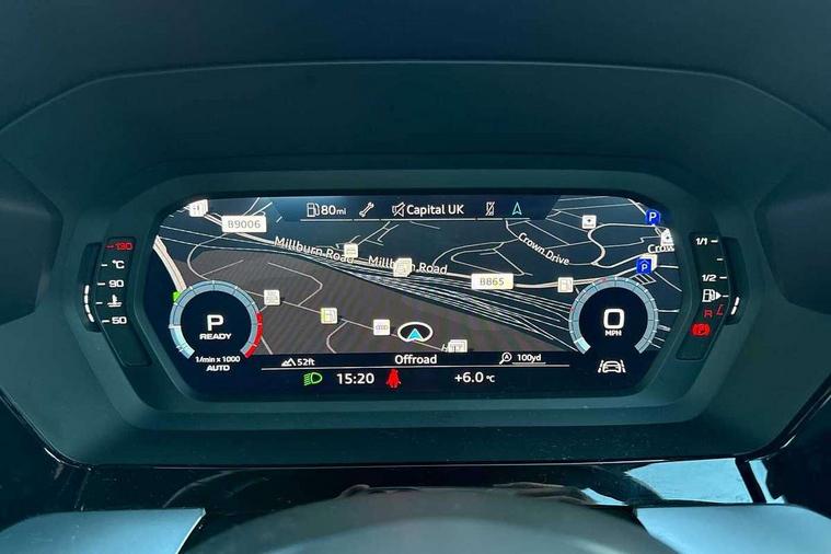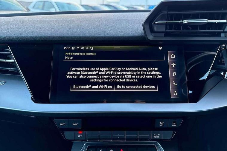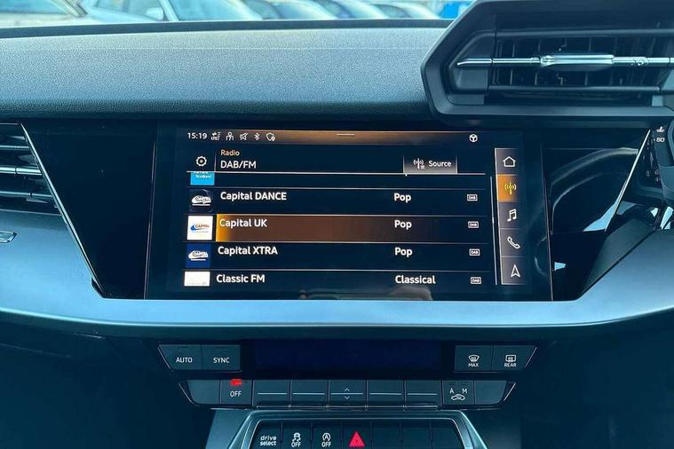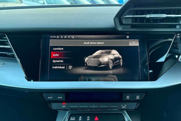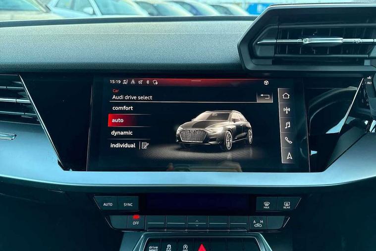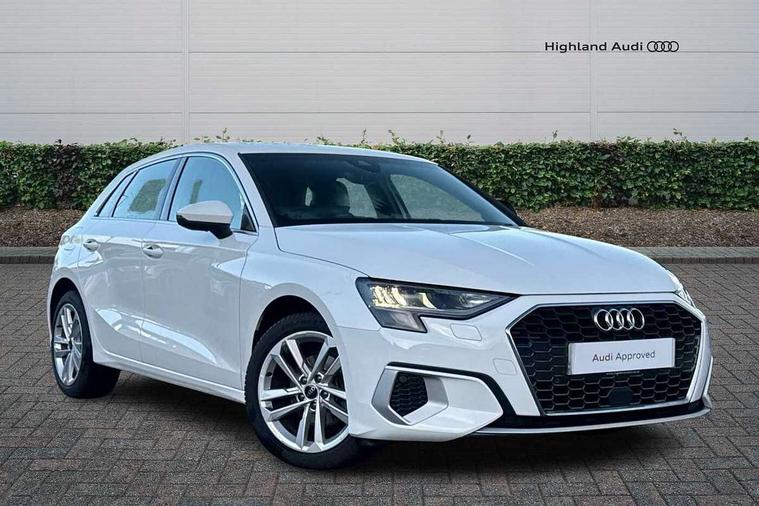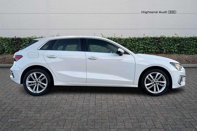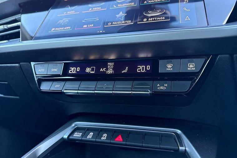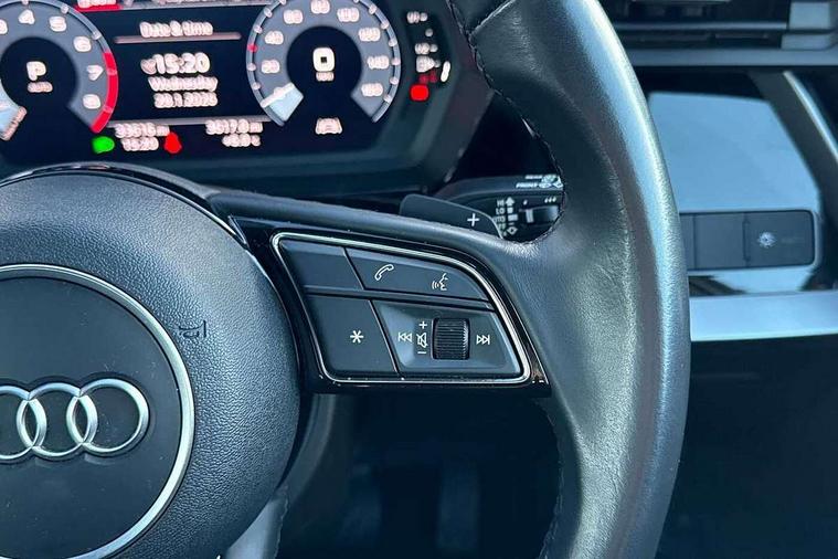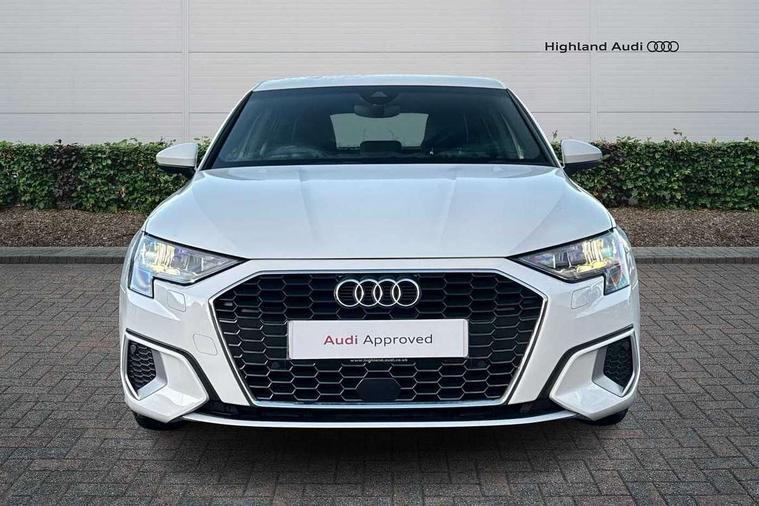 Audi connect emergency call and service, Audi drive select (Auto, Comfort, Dynamic and Individual), Audi smartphone interface, Audi Virtual Cockpit - 10.25" digital and colour instrument cluster, Automatic start/stop system with recuperation, Bluetooth interface, Collision avoidance assistant, Electromechanical power speed sensitive steering, Lane departure warning system, MMI Navigation Plus with high resolution 10.1" colour touch screen display, Service indicator, Trip computer, Voice control system with natural language interaction, Standard suspension, 2xUSB-C connection with data and charging functions, 6 passive loudspeakers, DAB Digital radio, 3rd brake light, Acoustic glass windscreen, Aluminium window trim, Auto dimming frameless rear view mirror, Body colour exterior mirrors, Body colour roof spoiler, Electrically adjustable/heated/folding/auto dimming door mirrors with integrated LED indications + kerb view function for passenger side, Front electric windows, LED daytime running lights, LED headlights and halogen rear lights, Light and rain sensors, Rear electric windows, Rear window, rear door windows and rear side windows in clear glass, Rear wiper, 12V socket and storage compartment in front centre console, 40/20/40 split folding rear seat bench with cupholder, Dual zone electronic climate control, Front and rear centre armrest, Front and rear headrests, Front door sill trims with aluminium inlay, Front/rear floor mats, Height and reach adjustable steering wheel, Interior lighting - Front and rear roof module including reading lights, glove compartment light and right hand side, Luggage compartment floor covering, Manual boot compartment lid, Manually adjustable front seats, Seat side bolsters, Steel grey cloth headlining, Twin leather upholstery, Aluminium interior elements pack - A3 Sportback, Sport styling pack - A3 Sportback, 3x3 point rear seat belts, Driver and front passenger airbag with passenger airbag deactivation, Electronic Stabilisation Control (ESC) including ABS, ASR and EDL, First aid kit with warning triangle and 2 safety vests, Front side airbags with head airbags and interaction airbag, Hill hold assist, Pre-sense front with pedestrian and cyclist detection, Seatbelt monitoring, Tyre pressure loss indicator, Anti theft alarm, Anti-theft wheel bolts, Electronically operated child lock, Immobiliser, Remote control central locking, Inlays with silk effect paint in platinum grey,