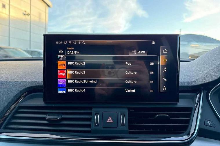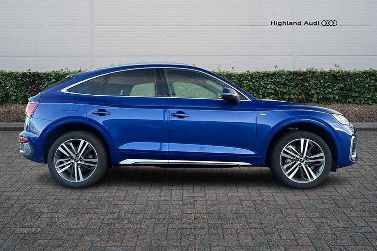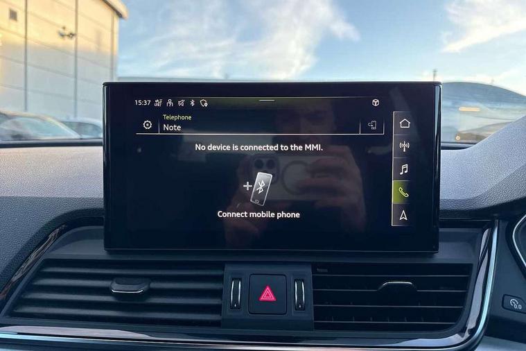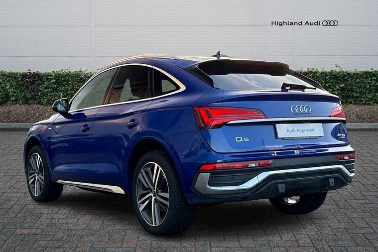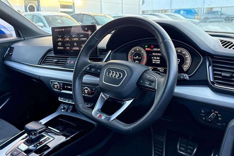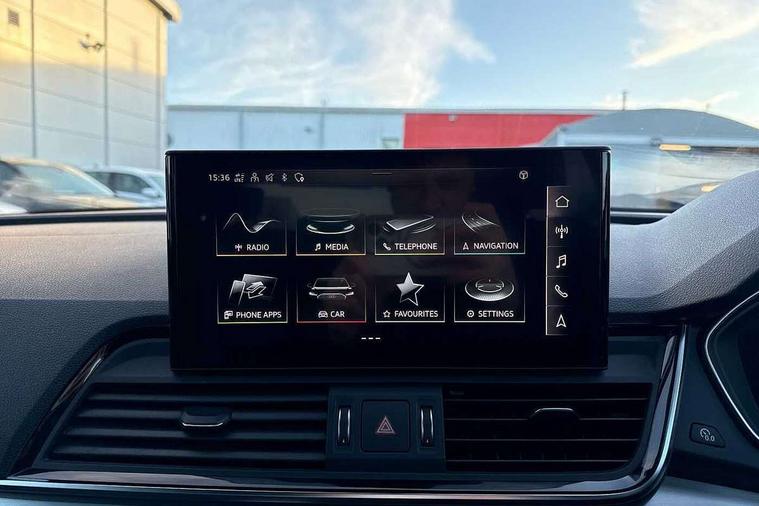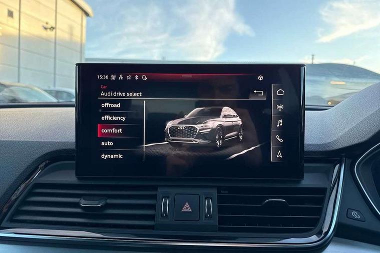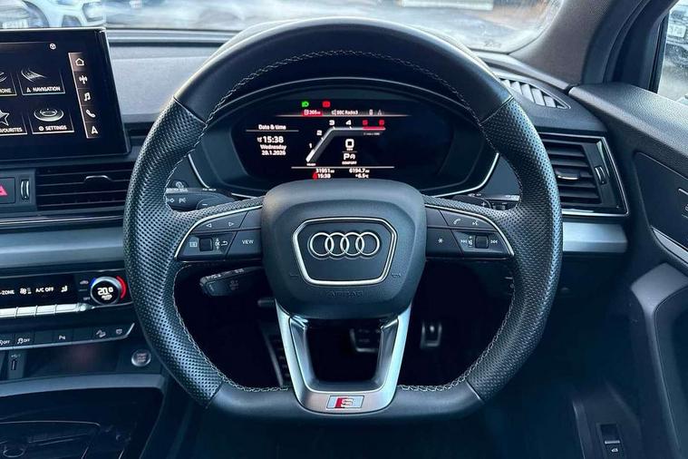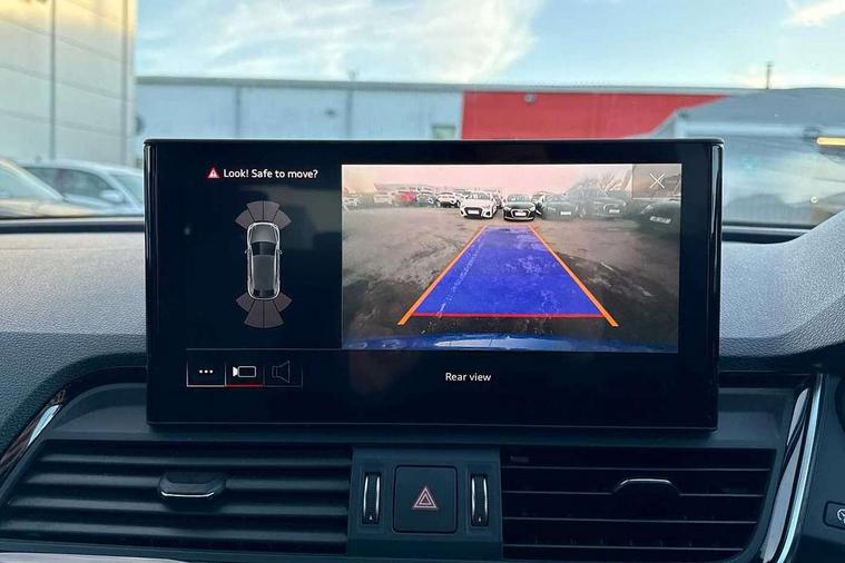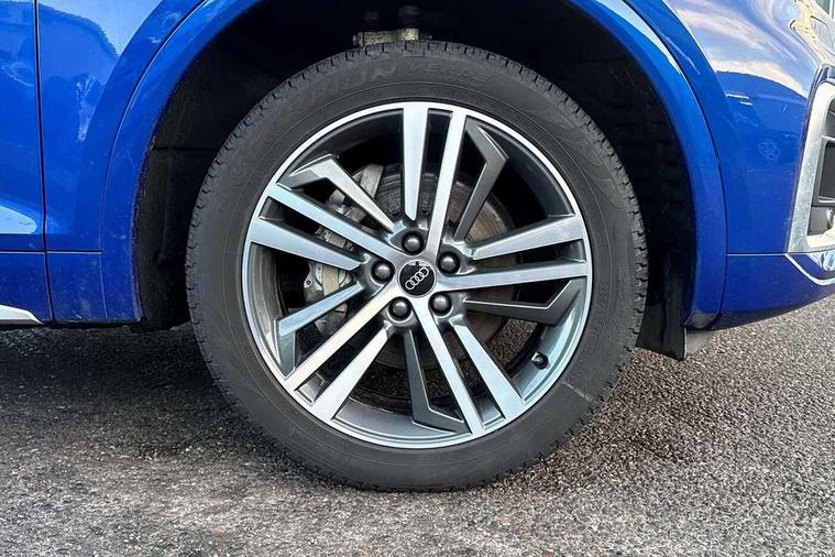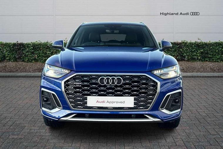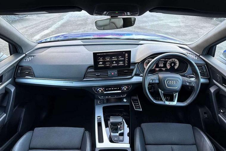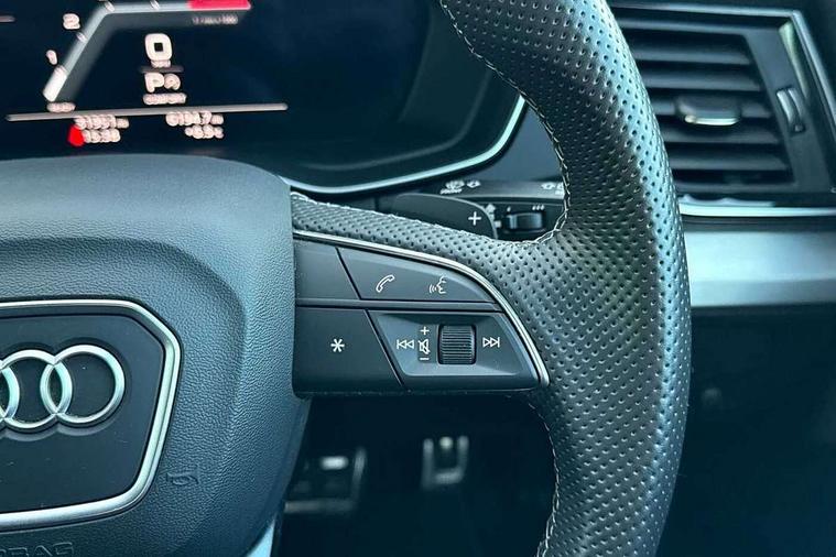 Audi connect safety and service (e-call), Audi connect with Amazon Alexa Integration, Audi drive select, Audi virtual cockpit plus with 12.3" screen and three different layout designs, Audi wireless smartphone interface, Automatic start-stop system with coasting functionality and efficiency programme, Bluetooth interface, Electro - mechanical power assisted steering, MMI navigation plus with 10.1" touch screen, Power tailgate, Reversing camera, Service interval indicator, Voice control system with Audi hotword activation "Hey Audi", Diesel particulate filter, Quattro on demand, S line sports suspension, 2 x USB charging port with aux input socket, DAB Digital radio, Acoustic windscreen, Aluminium roof rails, Audi matrix LED headlights with dynamic front and rear indicators, Auto dimming door mirrors, Auto dimming rear view mirror, Automatic headlights and windscreen wipers, Body colour door mirrors, Body colour rear diffuser with matt aluminium silver surrounds, Body colour underbody protection, Chrome plated exhaust trims, Daytime running lights, Door sills in Selenite silver, Electric adjustable/heated/folding door mirrors, Front air inlet surrounds in aluminium, Front and rear electric windows, Front radiator grille in honeycomb design, Headlight washers, High level LED brake light, Lower bumpers painted in contrast Manhattan grey, Rear chrome trim strip below lights, Rear privacy glass and rear side windows, Rear side wing doors, Rear wiper, Roof bars, S Line badges on the front wings, S Line front and rear bumpers, S Line rear spoiler, S Line side skirts, 3 rear headrests, 40:20:40 split folding 3 rear bench seat in 2nd row with rear centre armrest, Black cloth headlining, Comfort front centre armrest, Contrast stitching on seats, steering wheel and gear lever gaiter, Deluxe 3 zone electronic climate control, Front head restraints, Front/rear floor mats, Gear lever in black leather, Heated front seats, Height/reach adjustable steering column, Illuminated door sill trims with S logo, ISOFIX child seat mounting and top tether, Manual seat adjustment with 4-way electric lumbar support, Removable luggage compartment floor, Single front passenger seat, Stainless steel pedals, Sunvisors with vanity mirrors, Trunk roller cover, High gloss pack - Q5, LED interior light pack - Q5, 3 point seatbelts on all seats, 6 airbags - Driver, front passenger, curtain and side airbags, Electrically operated child locks on rear doors, Electromechanical parking brake, Electronic stabilisation control including ABS, ASR and EDL, Front passenger airbag deactivation, Hill descent control, Hill hold assist, Multi collision brake assist, Pop-up bonnet for pedestrian protection, Pre sense city, Seat belt force limiter, Seatbelt monitoring, Tyre pressure warning, Warning triangle and first aid kit, Anti theft alarm, Anti-theft wheel bolts, Keyless Go access/ignition system, Remote central locking, Matt brushed aluminium inlays,