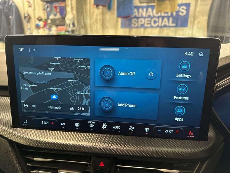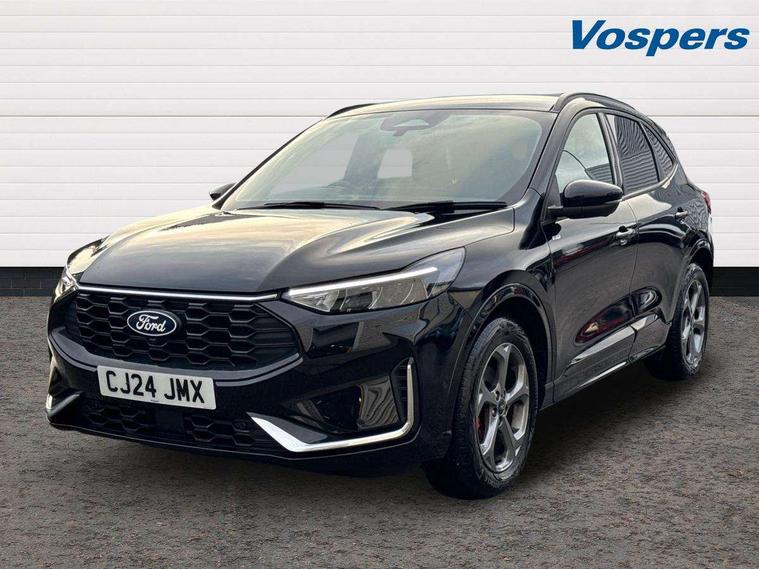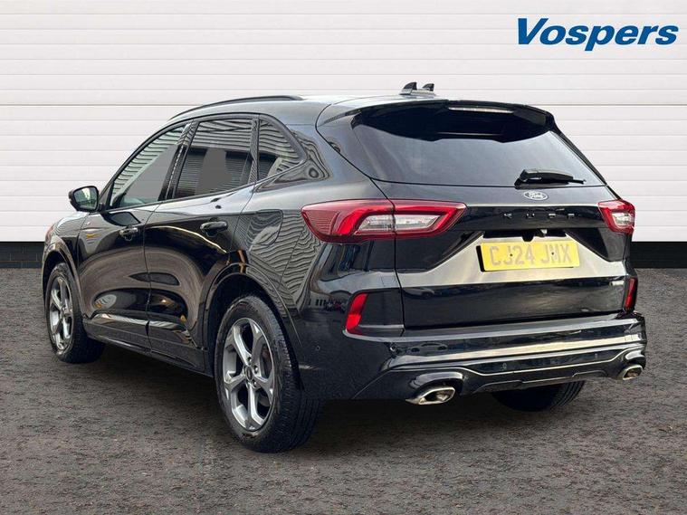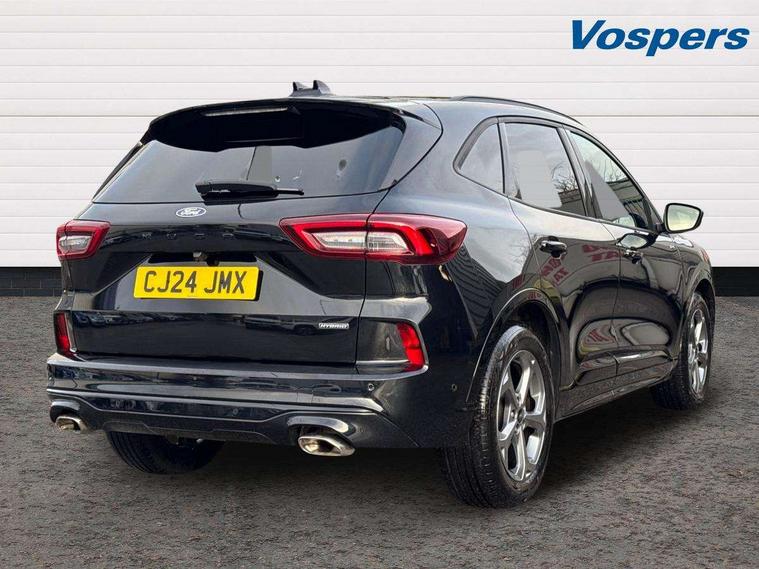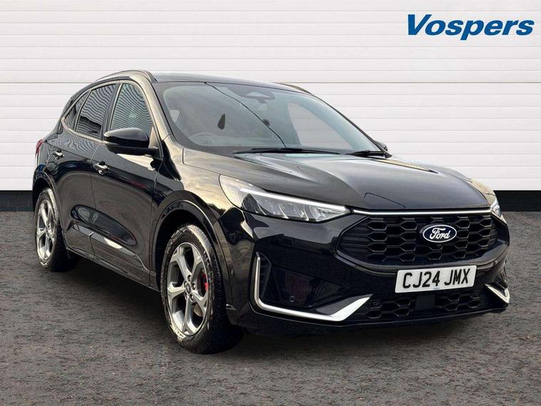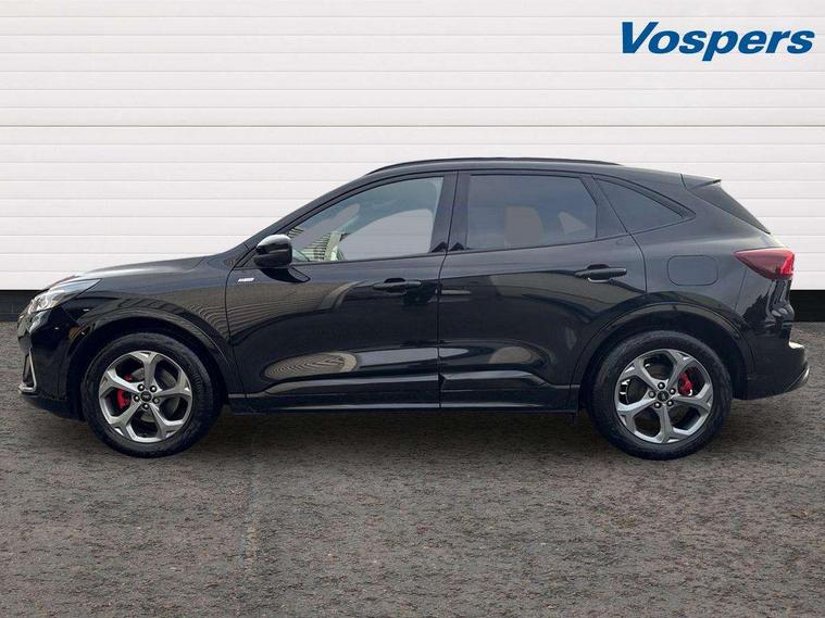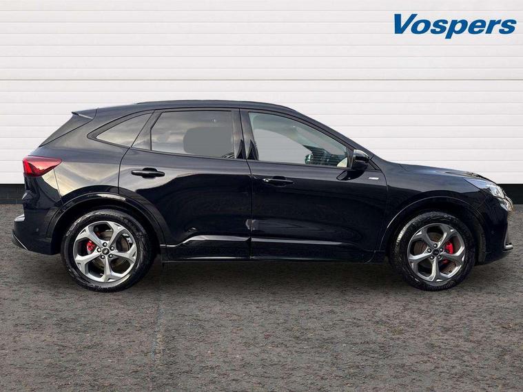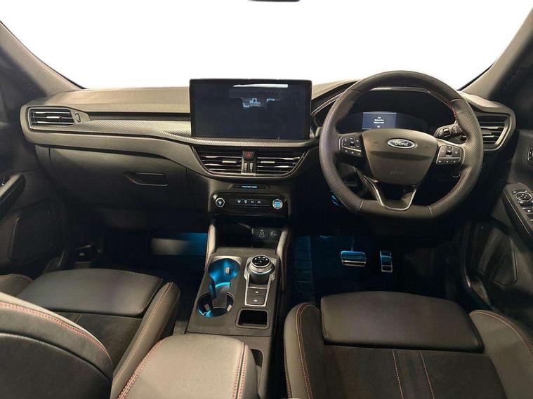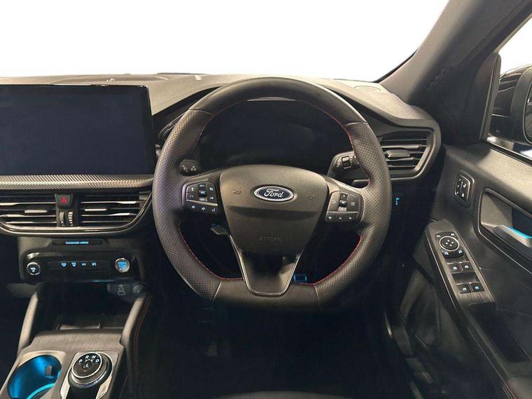 12.3" digital colour instrument cluster, 360 degree view camera, e-Call (emergency call), Ford easy fuel, Ford SYNC 4 Navigation with 13" touchscreen, DAB radio, emergency assistance, Andriod Auto/Apple CarPlay, 5G modem & Ford Pass connect, Front and rear parking sensors, Hands free power tailgate, Lane centering assist, Lane keeping aid with lane departure warning, Power assist steering, Selectable drive modes, Service interval indicator, Sports suspension, Twist beam rear suspension, B&O premium audio system with 10 speakers, subwoofer and 2 USB ports, Auto headlamps with high and low beam, Black roof rails, Body colour bumpers, Front LED fog lamps, Large rear spoiler, LED daytime running lights, LED rear lights, Pop out door edge protectors, Power front/rear windows with global close, Power heated folding door mirrors with puddle lights, memory function and camera, Quickclear heated windscreen, Rain sensing wipers, Rear privacy glass, Rear side wing doors, Rear wiper, ST-Line body styling kit, Third brake light, 12 way ergonomic power adjust driver's seat with memory (AGR certified), 12 way ergonomic power adjust passenger seat (AGR certified), 2nd row sliding seats, Electronic automatic temperature control (EATC), Front and rear head restraints, Partial premium touch sensico upholstery, Rear centre head restraint, Single front passenger seat, Sports seats, Driver assistance pack with intelligent adaptive cruise control - Kuga FHEV/PHEV, 3x3 point rear seatbelts, Airbags - front driver/passenger, front and rear curtain, Drivers knee airbag, Dynamic brake support, Electronic stability control (ESC) and ABS, Evasive steering assist, Ford MyKey Gen 2 safety system, Manual child proof rear door locks, Pre collision assist with autonomous emergency braking, Rear seat Occupancy alert, Red brake calipers, Tyre pressure monitoring system, Engine immobiliser, Keyless entry and Ford power start button (Keyless start), Locking wheel nuts, Remote powered central double locking doors, Thatcham category 1 alarm,
