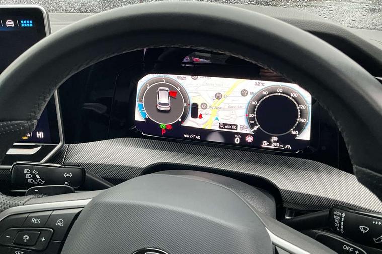 Activated carbon canister, Adaptive cruise control (ACC), Advanced driver attention and drowsiness monitor, Dynamic road sign display, Dynamic steering, E-Sim card for online connectivity, eCall emergency call system, Multi-color Digital cockpit pro, selection of different info profile possible, Multifunction front facing camera for distance control, Navigation system, Oncoming vehicle braking when turning including swerve support, Preparation for light assist system, Speed limiter, Speedo, rev counter, electronic odometer, trip, service interval display, exterior temperature and fuel gauge, Traffic jam assist, Voice enhancer and voice control, Warning signal and warning light for front and rear seatbelts not fastened, We connect plus preparation, We connect preparation, Wireless app connect, Diesel particulate filter, Hybrid propulsion system, Start-stop system with battery regeneration (recuperation - energy recovery during braking), XDS electronic differential lock for improved traction and handling, 2 USB C ports in front, 2 USB charging sockets on the centre console in the rear charging capacity upto 45W, Comfort telephony + wireless charging, without wireless aerial connection, Digital radio reception (DAB), Diversity antenna for FM reception, Gaming platform via car app, Infotainment system with 12.9" display, Mobile phone interface with inductive charging feature, 3rd brake light, Auto headlights, Automatic headlamp activation with Coming home and Leaving home feature, Body colored bumpers in R-Line style, Body colour door handles, Exterior ambient lighting with illuminated door handles, Exterior mirrors convex on the left and aspherical on the right, Front and rear electric windows, Heat insulating windshield made of laminated glass, LED daytime running lights, Rear exhaust tailpipe, Rear fog light on one side and reversing lights on both sides, Rear side wing doors, Rear windscreen washer and wiper with interval delay, Remote electrically foldable door mirrors, puddle lights and reverse activated passenger's door mirror, Welcome light with surround lighting, 12V socket in front centre console, 12V socket in luggage compartment, 3 rear head restraints, 3 seat bench in 2nd row, Ambient lighting with 30 colour including LED light unit in front footwell with selectable light colour, Brushed stainless steel pedals, Carpet mats, front and rear, Chrome plated radiator grille inserts, air vent surrounds and light switch surrounds, Front centre armrest, Integrated front head restraints, ISOFIX anchors for child seats on outer rear bench seats and on front passanger seat compatible for i-Size, Luggage compartment lighting, Plastic gear knob, Premium sports seats in front, Rear cupholder and loadthough, Single front passenger seat, Soul black instrument panel, Split folding backrest with centre armrest and unsplit rear seat bench, Storm grey roof lining, Sun visors with illuminated vanity mirrors, 3 point height adj front seatbelts + pretensioners, 3 rear three point seatbelts, ABS, Autonomous emergency braking front assist with pedestrian and cyclist monitoring, Child locks on rear doors, Driver and front passenger airbag with front passenger airbag deactivation, Electronic parking brake with auto hold, ESC (Electronic Stability Control), Extended pedestrian protection measures, Hill start assist, Rear disc brakes, Two tone horn, Tyre pressure loss indicator, Volkswagen roadside assistance, Anti theft wheel bolts, Preparation for alcohol interlock, Decorative inserts carbon grey for dashboard and front door trim panels,