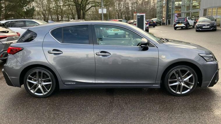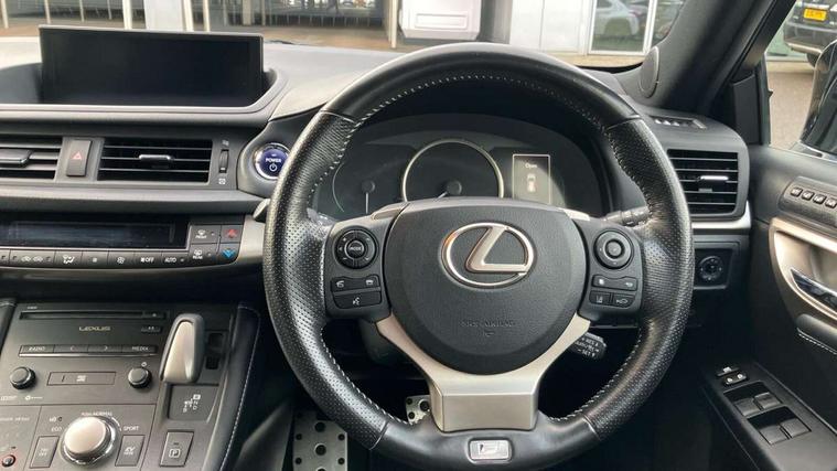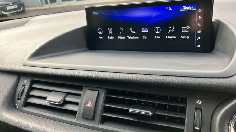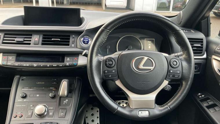 Bluetooth mobile phone connection, Digital clock, Drive mode selector, EPS with speed sensitive steering, Lexus Navigaton System, Lexus safety systems+ Dynamic radar cruise control, pre-collision system, lane keep assist, road sign assist, automatic high beam, Push button starter, Reversing camera, Trip computer, Lateral damping system, Sports suspension, Vehicle Dynamics Integrated Management, Vehicle Stability Control (VSC), 2 USB ports, 4.2" thin film transistor, AUX socket with VTR compatibility, DAB Digital radio, Lexus media display with 6 speakers, 7" display screen, CD and rotary dial controller, Auto dimming rear view mirror, Body colour bumpers, F Sport exterior styling - black mesh grille, black lower fog light bezel, front/rear bumpers, large rear spoiler+air ducts, badge, black mirror cover, Front and rear one-touch automatic power windows equipped with a jam protection, Halogen headlights, Heated and electrically folding outside mirrors with turn indicators and puddle light, LED brake lights and rear lights with emergency brake signal, LED daytime running lights, LED front fog lamps, Rain sensor windscreen wipers, Rear privacy glass, Rear wiper, 2 cup holders in the front and rear centre console, 2 map pockets in the rear of the front seats, 2 x coat hooks in the rear, 2 x sun visors with vanity mirror and lamp, 4 x tie down hooks in the boot, 60/40 split folding rear seat, Card holder installed in drivers sun visor, Driver 6-way manually adjustable front seat, Driver and passenger door pocket, Dual zone climate control, F Sport aluminium sports pedals, Fabric/Tahara leather upholstery, Front aluminium scuff plates, Front and rear head restraints, Front and rear textile carpet mats, Front centre armrest with storage, Front glove box with lock, Front sport seats, Heated front seats, Manually reach and rake adjustable F Sport leather steering wheel, Multifunction steering wheel, Passenger 4-way manually adjustable front seat, Storage tray under the deck board boot + storage location for tonneau cover, Sunglasses storage by interior rear view mirror, Whiplash lessening front seats, 2 x Isofix child rear seat restraints, 3 point ELR front seatbelts with pretensioners, ABS, BAS (Brake Assist System), Driver and front passenger 2 stage airbag, Driver and front passenger knee airbag, Driver and passenger side airbags, ECB (Electronically Controlled Brake System), Electronic brake force distribution, Front and rear curtain airbags, Hill assist control, Passenger airbag cut-off device, Three 3 point rear seatbelts, Traction control, Tyre pressure warning, Anti-theft system with siren, intrusion sensor, tilt sensor and immobiliser, Locking wheel nuts, Remote central locking, Two motion door lock with double lock, VIN Window etching, 17" F Sport Dark premium metallic alloys wheels, Space saver spare wheel,