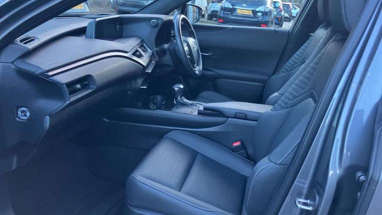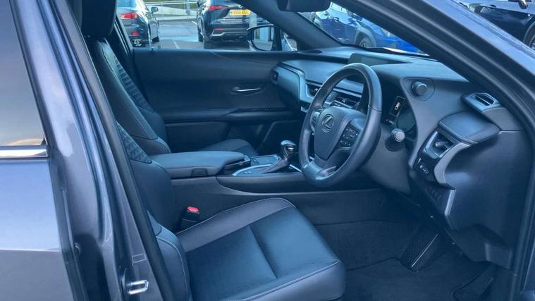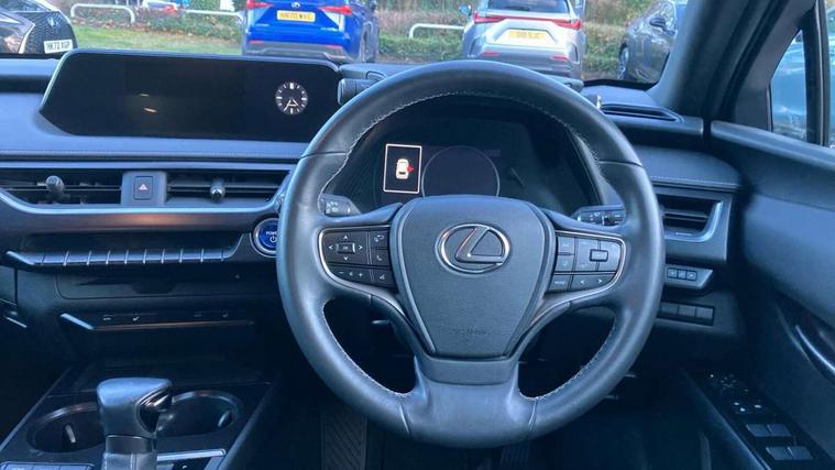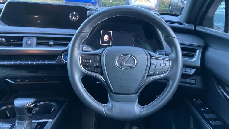 4 driving modes EV/Eco/Normal/Sport, 7" Lexus media display, 7" TFT instrument cluster, Analogue clock with GPS function, Apple car play/Android Auto, Compatible mobile phone bluetooth with audio streaming, E-call, Electric power steering (EPS) with speed sensitive features, Lane change flasher function, Lexus link connected services, Lexus safety systems + includes dynamic radar cruise control, pre collision system day and night, lane tracing assist, road sign assist, Push button start, Remote touch interface, Trip computer, Vehicle Dynamics Integrated Management (VDIM), Vehicle Stability Control (VSC), 2 front USB and 2 rear USB charging points, 6 speakers, AM/FM and DAB radio, AUX socket with VTR compatibility, CD player, Acoustic windscreen, Aero stabilising arch mouldings, Aero stabilising rear lights, Aero ventilated wheels, Bi-LED (low and high beam) headlights with Auto High Beam (AHB), Black roof drip mouldings, Black wheel arches, Body adhesive, laser screw welding and laser brazed roof structure, Body coloured bumpers, Electric adjustable/heated door mirrors, Front and rear one touch power windows, with anti-jam protection, Headlight cleaners, LED daytime running lights, LED tail lights, LED third brake light, Light green UV glass, Rain sensor windscreen wipers, Rear side wing doors, Rear wiper, Shark fin roof aerial, Single hidden exhaust pipe, Towing preparation, Variable front intermittent wipers, 12V accessory port centre console and luggage compartment, 2 cup holders in the front and rear centre console, 2 x folding shopping bag hooks in boot, 2 x sun visors with vanity mirror and lamp, 3 seat bench in 2nd row, 4 x tie down hooks in the boot, 5 headrests, 6 way driver and passenger manually adjustable front seats, 60/40 split folding rear seat, Card holder installed in driver and passengers sun visors, Centre armrest with storage, Driver and passenger door pocket, Dual zone electronic climate control + Nano-E humidity sensor, Glovebox, Illuminated entry system, Leather gear lever, Leather steering wheel, LED interior illumination, Map pockets in the rear of passenger's front seat, Premium fabric upholstery, Rear air vents with 2 USB chargers, Rear armrest with 2 cupholders, Single passenger seat, Storage tray under audio panel, Textile carpet mats, Tilt/reach adjustable steering column, Under deck storage, Under desk side storage, 2 x Isofix child rear seat restraints, 3x3 point rear seatbelts, Anti-lock braking system (ABS), BAS (Brake Assist System), Driver and front passenger 2 stage airbag, Driver and front passenger knee airbag, Driver/front passenger side airbags, EBD - Electronic brakeforce distribution, ECB (Electronically Controlled Brake System), Electric child locks, Electric parking brake, Front adjustable seatbelt anchor points, Front and rear curtain shield airbags, Front outer seatbelt+pre-tensioners, force limiter+tension reduction: 3-point with active safety link to PCS, Hill start assist control (HAC), Passenger airbag cut-off device, Rear outer seatbelt+pre-tensioners, force limiter+tension reduction: 3-point with active safety link to PCS, Centre belt w/o pre tensioner+force limiter, Secondary Collision Brake (SCB), TRC (Traction Control), Tyre pressure warning, 2 x remote key fobs, Anti theft system : Alarm instruction sensor, glass breakage sensor and engine immobiliser, Locking wheel nuts, Remote central door locking, Speed sensitive auto door locking, Two motion door lock with double lock, VIN Window etching, 17" Alloy wheels, Tyre repair kit,