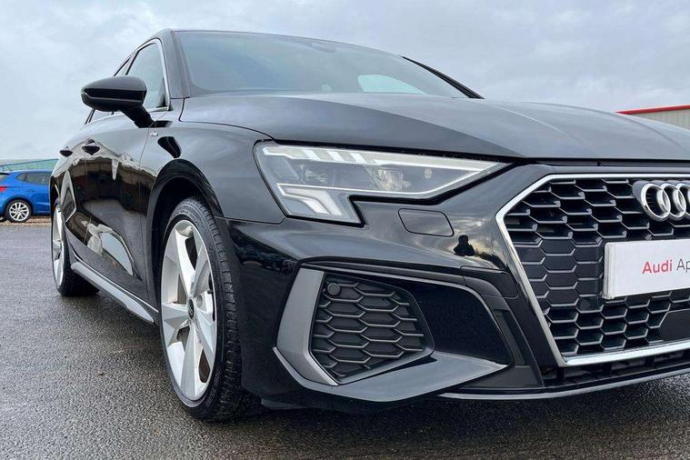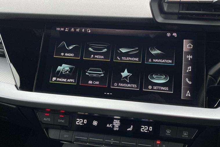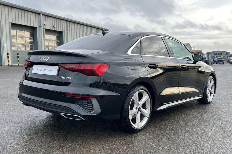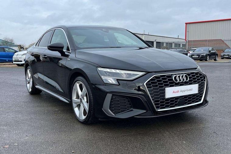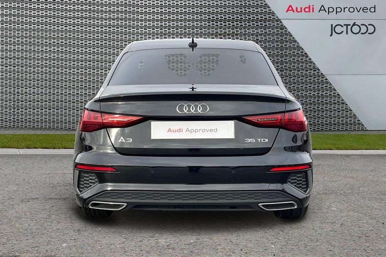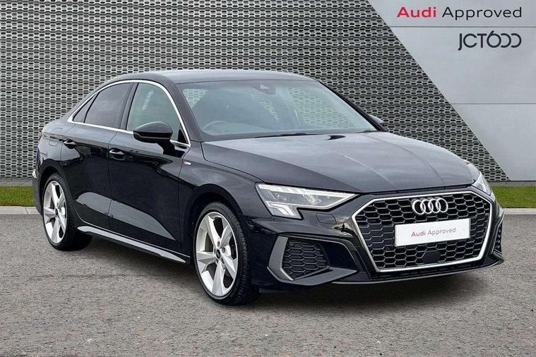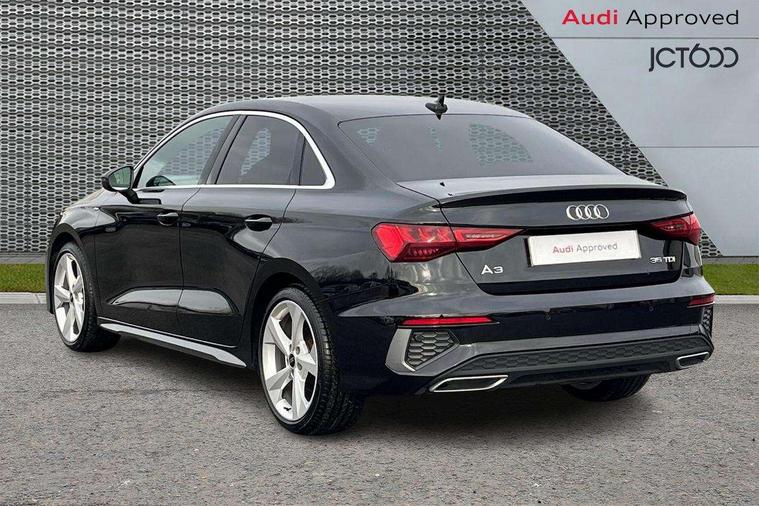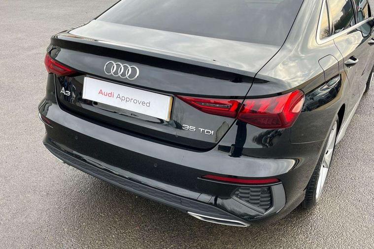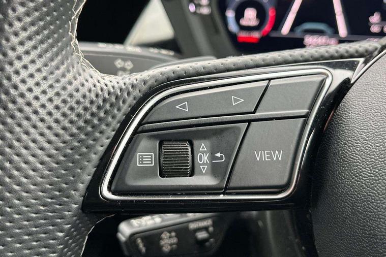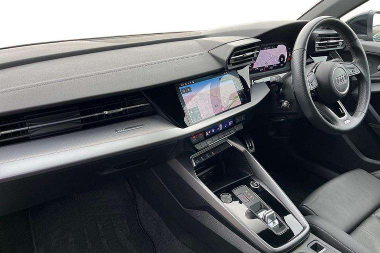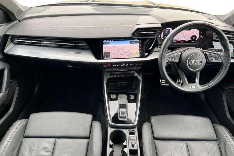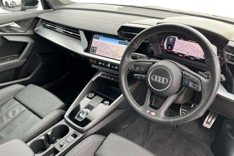 Audi connect emergency call and service, Audi drive select (Auto, Comfort, Dynamic, Efficiency and Individual), Audi smartphone interface, Audi Virtual Cockpit - 10.25" digital and colour instrument cluster, Automatic start/stop system with recuperation, Bluetooth interface, Camera based traffic sign recognition, Collision avoidance assistant, Electromechanical power speed sensitive steering, Lane departure warning system, MMI Navigation Plus with high resolution 10.1" colour touch screen display, Service indicator, Voice control system with natural language interaction, Diesel particulate filter, Sports suspension, 2x USB Type C ports (for charging and data transfer), 6 passive loudspeakers, CD player, DAB Digital radio, 3rd brake light, Acoustic glass windscreen, Aluminium window trim, Auto dimming frameless rear view mirror, Body colour exterior mirrors, Electrically adjustable/heated/folding/dimming door mirrors with kerb view includes integrated LED indications + kerb view function for passenger side, Front electric windows, Illuminated door sills with aluminium inserts at the front with S logo, LED daytime running lights, LED headlights with LED rear lights and dynamic rear indicators, Light and rain sensors, Model and engine designation badges at rear, Privacy glass - dark tinted rear window, rear door and side windows, Rear boot, Rear electric windows, Rear side wing doors, S line bumpers, S roof spoiler, 12V socket and storage compartment in front centre console, 3 seat bench in 2nd row, 3 spoke leather multifunction steering wheel with gear shift paddles, 4 way electrically adjustable lumbar support for driver and front passenger, 60/40 split folding rear seat bench, Black cloth headlining, Dual zone electronic climate control, Front and rear centre armrest in leather, Front and rear headrests, Front/rear floor mats, Height and reach adjustable steering wheel, Interior lighting - glove compartment light and right hand side, Luggage compartment floor covering, Manual boot compartment lid, Manually adjustable front seats, Seat side bolsters, Single front passenger seat, Stainless steel pedals and front footrest in black, Twin leather upholstery with front sports seats S embossed logo, Aluminium interior elements pack - A3 Saloon, LED interior lighting pack - A3 Saloon, S line styling pack - A3 Saloon, 3x3 point rear seat belts, Driver and front passenger airbag with passenger airbag deactivation, Electronic Stabilisation Control (ESC) including ABS, ASR and EDL, First aid kit with warning triangle and 2 safety vests, Front side airbags with head airbags and interaction airbag, Pre-sense front with pedestrian and cyclist detection, Seatbelt monitoring, Tyre pressure loss indicator, Anti theft alarm, Anti-theft wheel bolts, Electronically operated child locks, Immobiliser, Remote control central locking, Aluminium air vent surrounds, Dark spectrum aluminium inlays, accent surfaces in the dashboard and centre console in platinum grey silk effect paint finish,