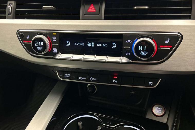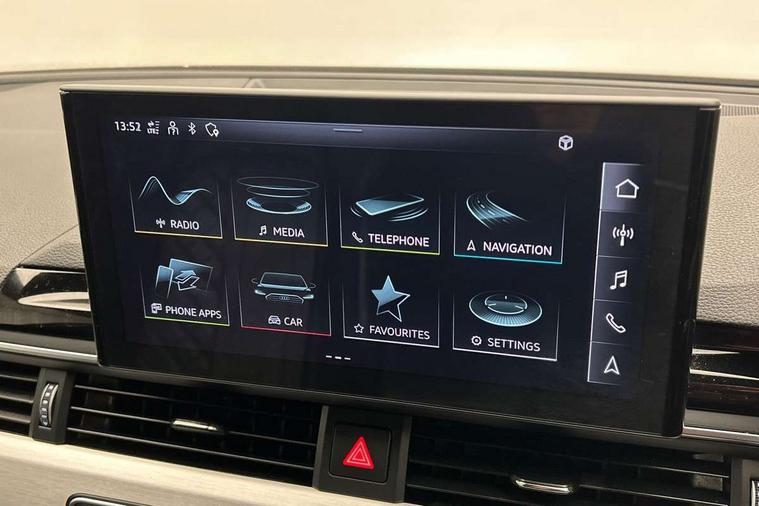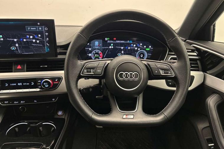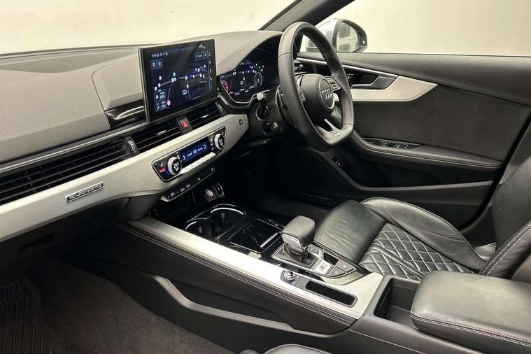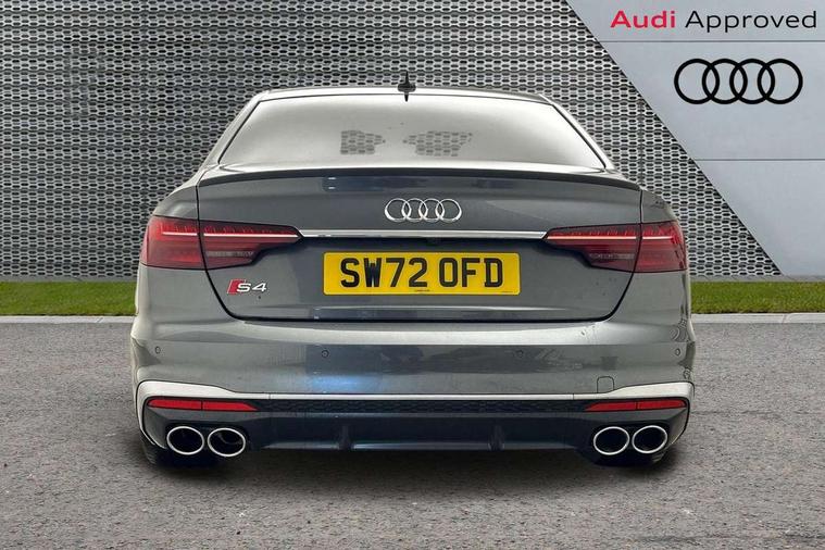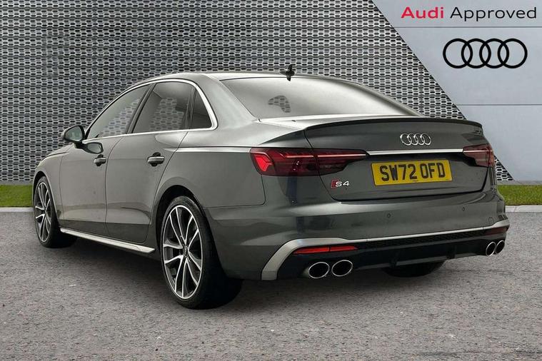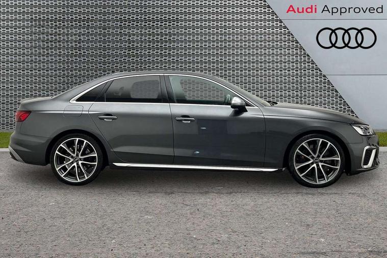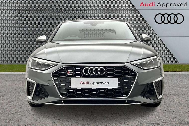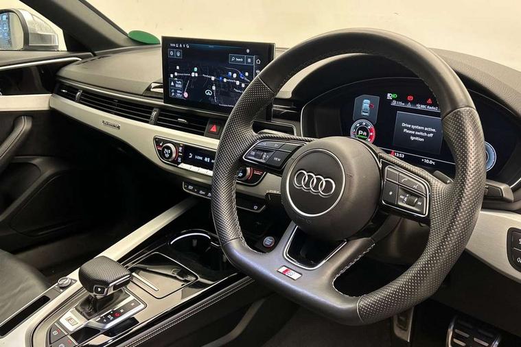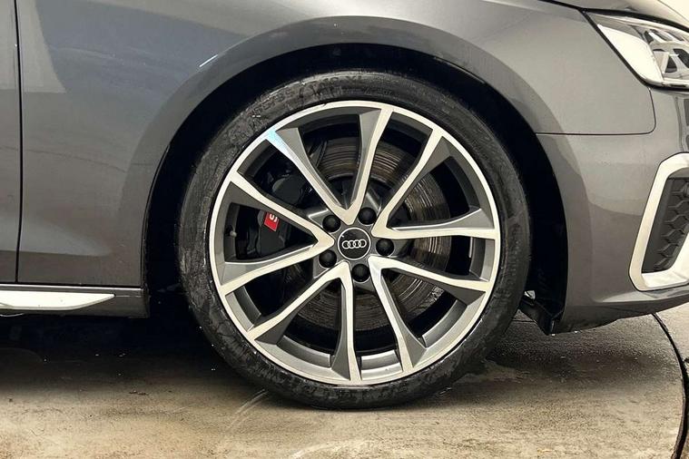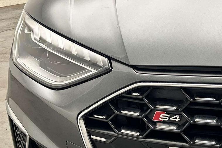 Audi connect safety and service (e-call), Audi connect with Amazon Alexa Integration, Audi drive select, Audi smartphone interface, Audi virtual cockpit, Automatic start-stop system with coasting functionality and efficiency programme, Bluetooth interface, Electric boot lid release, Electromechanical power steering, Email, calendar and text messages displayed via MMI, MMI Navigation plus with MMI touch includes 10.1" high resolution colour MMI display, 3D map, S instrument dials, Voice control system, 58 Litre fuel tank, S sports suspension, 2 USB charging ports, Audi sound system with 10 loudspeakers, DAB digital radio reception, Aluminium effect door mirror housings, Audi Beam uses LEDs to project the Audi logo, Auto dimming rear view mirror, Body colour door handles, Body colour front spoiler lip, Body colour side sill trim, Electrically folding auto dimming/adjustable/heated door mirrors with LED side indicators and kerb view function for passenger side, Front and rear bumpers with side skirts, High beam assistant, LED headlights with LED rear lights + dynamic rear indicators + headlight adjustment and high beam, turning light + LED daytime running lights, LED third brake light, Privacy glass, Rain and light sensors, Rear boot, Rear side wing doors, S Line badges on the front wings, S radiator grille in twilight grey matt with dual struts in aluminium and S4 logo, S rear diffuser in twilight grey matt and honeycomb grille in black, S specific dual branch chrome tailpipes with twin oval pipes on left and right, S specific side air inlets in titan black with chrome inlays in unique S design, S Style rear spoiler, Variable intermittent front wash/wipe, Windscreen with acoustic glazing, 40/20/40 split folding 3 rear seat bench in 3 parts with rear centre armrest, Black cloth headlining, Black leather gear lever knob, Contrast stitching on seats, steering wheel and gear lever gaiter, Deluxe 3 zone electronic climate control, Door sill trims with aluminium inlay, Electrically adjustable front seats, Fine nappa leather upholstery with S embossed logo + super sports seats, Front and rear head restraints, Front centre armrest, Gear lever with diamond S badge, Heated front seats, Illuminated door sill trims with S logo, ISOFIX child seat mounting and top tether, Key with S logo, Pneumatically adjustable lumbar support with massage function, Single front passenger seat, Stainless steel pedals and foot rest, Extended leather pack - A4/S4, High gloss package - A4, LED Interior light pack - A4/S4, 3 rear seatbelts, 6 airbags - Driver, front passenger, curtain and side windows, Electronic Stabilisation Control (ESC) including ABS, ASR and EDL, Front brake calipers painted in black with S4 logo, Hill hold assist, Multi collision brake assist, Pop-up bonnet for pedestrian protection, Pre sense city, Rear door child safety locks, S model enhanced braking system, Seatbelt monitoring, Warning triangle and first aid kit, Anti theft alarm, Anti theft wheel bolts, Central locking, Keyless Go, Matt brushed aluminium inlays, 19" 5 spoke V design contrasting grey alloy wheels, Tool kit, Tyre repair kit,