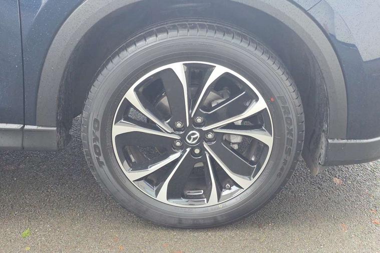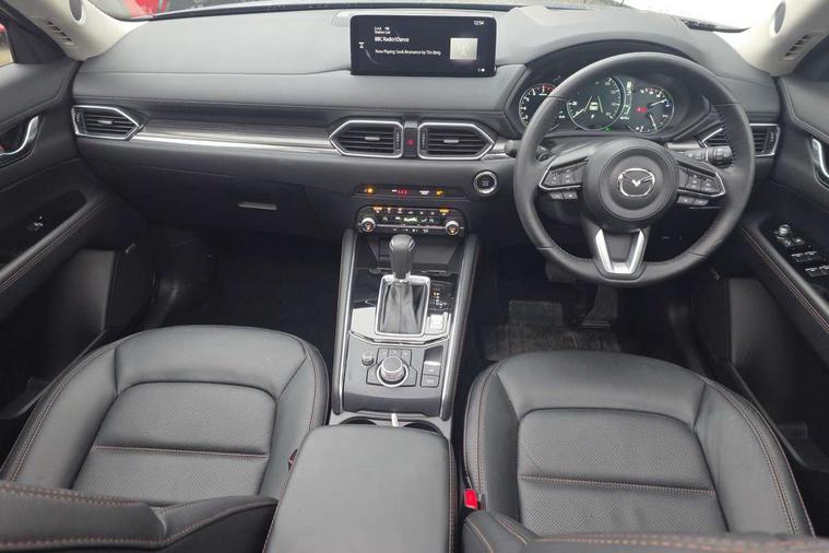 10.25" display with Mazda Connect infotainment, 7" colour TFT display, Advanced blind spot monitoring, Bluetooth connectivity with voice control, Collision prevention assist, Connected services, Cruising Traffic Support, Drive mode selector, Electric power steering, Emergency stop signalling system, Engine start/stop button, Forward collision warning, Front and rear parking sensors, Integrated navigation system, Intelligent speed assist, Lane departure warning system, Lane keep assist, Power liftgate, Qi wireless phone charging, Radar cruise control with Stop and Go, Rear cross traffic alert, Reversing camera, Service indicator, Traffic sign recognition (TSR), Trip computer, Windscreen projected colour active driving display (HUD) with memory, Wireless apple car play/android Auto, Cylinder Deactivation, i-stop, AM/FM radio, Bluetooth audio streaming, Bose premium sound system with 10 speakers, DAB Digital radio, Multimedia Commander including separate volume dial, Steering wheel mounted audio controls, Adaptive front lighting system, Auto dimming rear view mirror, Automatic headlights, Black inlay dashboard panel, Body colour door mirrors, Body colour roof spoiler, Body coloured front and rear black lower bumper mouldings, Coming/leaving home lighting function, Door mirror integrated indicators, Dual chrome tailpipes, Dusk sensitive headlamps, Electric front/rear windows with one touch auto up/down, Front grille in gloss black finish, Front grille in gloss black finish with chrome signature wing, Gloss black B and C pillars garnish, High beam assist, Intermittent rear wash/wipe, LED auto levelling, LED daytime running lights, LED front fog lights, LED Headlights, LED third brake light, Power folding and heated door mirrors, Power tilt/slide sunroof, Privacy glass (rear side windows only), Rain sensing front wipers, Rear side wing doors, Satin black side mouldings, Scuff plates, Shark fin antenna, Signature LED rear combination lights, Variable intermittent front wash/wipe, Vinyl with wood grain metal inlay door trim panel, Windscreen wiper de-icer, 12v electrical power outlet, 3 seat bench in 2nd row, 3 stage heated front seats, 40:20:40 Karakuri fold-flat seat system, 6 way electric adjustable passenger seat, 8 way electric driver seat with lumbar support + memory, Cargo room flat floor board with waterproof undertray, Driver seat power slide, recline and height adjustment, Driver, Front passenger and two rear grab handles with coat hooks, Driver/passenger front seatback pockets, Driver/passenger sunvisors + illuminated vanity mirrors (drivers with ticket holder), Dual zone climate control, Folding centre armrest with 2 cup holders, Front and rear door pockets, Front centre storage with two cupholders, Front passenger seat power slide, recline and height adjustment, Heated steering wheel, Humidity sensor, Illuminated glovebox, Interior dome light with integral spotlight, ISOFIX child seat anchorage points attached on outer rear seats, Karakuri tonneau cover, Leather upholstery, Leather wrapped steering wheel and gear knob, Light roof lining, Luggage compartment LED lighting, Luggage compartment power outlet, Paddle shifts, Rear air vents, Rear headrests, Rear seat recline, Roof mounted sunglasses holder, Single front passenger seat, Three height adjustable head restraints, Tilt/height adjustable steering wheel, USB Connectivity (2x front Type-C, 2x rear Type-B), White interior LED illumination lighting, 3 point front seatbelts with pre-tensioners, 3 rear 3 point seatbelts, ABS, Advanced Smart City Brake Support - SCBS, Child locks on rear doors, Driver and front passenger side airbags, DSTC-Dynamic Stability and Traction Control, Dual front airbags, Electronic brake force distribution, Electronic parking brake with auto hold, ESP, Front and rear curtain airbags, Front passenger airbag deactivation, G-Vectoring control, Hill hold assist, Seatbelt reminder front and rear, Single stage passenger airbags, Smart brake support with forward obstruction warning, Tyre pressure monitoring system, Automatic door locking when moving off, Deadlock, Immobiliser, Power door locks, Remote central locking, Smart keyless entry, Thatcham Cat.1 alarm, 19" diamond cut black alloy wheels, Tyre repair kit,