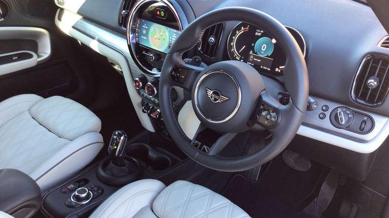 Active Guard incl speed limiting and lane departure functions with auto steering, and front collision warning with brake intervention, Automatic start/stop function with brake energy recuperation, Electro-mechanical speed dependant steering assistance, Instrument cluster, MINI Driving Modes - centre toggle switch to control driving setting (sport, mid and green), Mini E-call, MINI TeleServices, On board computer, Double Vanos system, Fully variable valve control, High precision injection, Performance Control, Steptronic sport transmission with double clutch and steering wheel paddles, FM tuner and DAB digital radio, 3rd brake light, Bonnet scoop, Chrome fuel filler cap, Day time driving lights, Dynamic brake lights, Electric windows, Heated rear window, Heated windscreen washer jets, LED fog lights, Metal door sill strips with Cooper S imprint, MINI yours exterior badge in C-Pillar, driver and passenger side, Model logo, Model logo on Tailgate, Rain sensor with auto headlights, Rear fog lights, Rear side wing doors, Rear window wiper, Side scuttle panel with integrated indicator, Split rear doors, Sun/heat protection glass, White indicator lenses, 12V socket in centre console, 3 seat bench in 2nd row, 360L luggage compartment capacity, 4 lashing eyes in luggage compartment, 40:20:40 split folding rear seats, Anthracite headlining with grab handles and clothes hooks, Chrome interior highlights, Colour line - Carbon black, Cupholders, English handbook, Front headrests, Glove compartment, Height and length steering column adjustment, Interior lighting with 12 basic colours selectable via toggle switch in roof, Isofix rear child seat preparation, Leather gearshift lever and handbrake gaiters, LED reading lights, vanity mirror lights, front foot well light and spotlight on front seats, MINI Yours fine walk nappa leather steering wheel with contrast stitching in silver and MINI Yours badge, Multifunction steering wheel, Rear headrests, Single front passenger seat, Storage compartments in doors, Sunvisors with vanity mirrors, Excitement pack - Countryman, Navigation plus pack - Countryman, 2 tone horn, 3 point seatbelts on all seats, 6 Airbags - front, side, head and seat belt tensioners, Anti-lock braking system (ABS), DSC - Dynamic Stability Control, Electronic handbrake, Front and rear disc brakes, Hill start assist, Manual rear child locks, Tyre pressure monitoring system, Alarm system with tilt sensor, monitoring doors, bonnet interior and tailgate, Auto drive away locking, Deadlocking function, Electronic vehicle immobiliser, Locking wheel bolts, Start/stop toggle with keyless go, Tool kit,