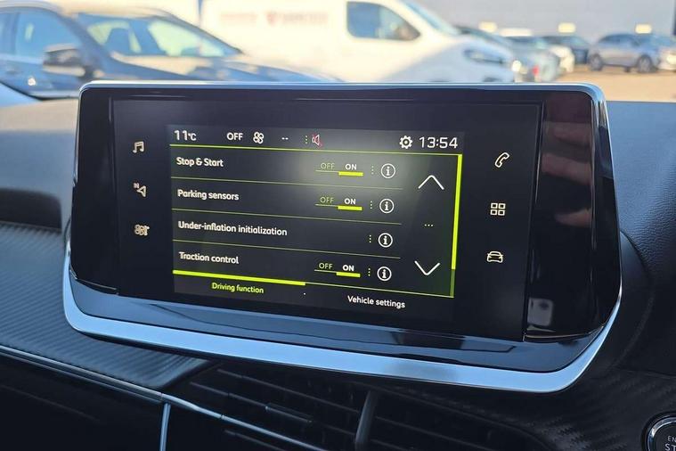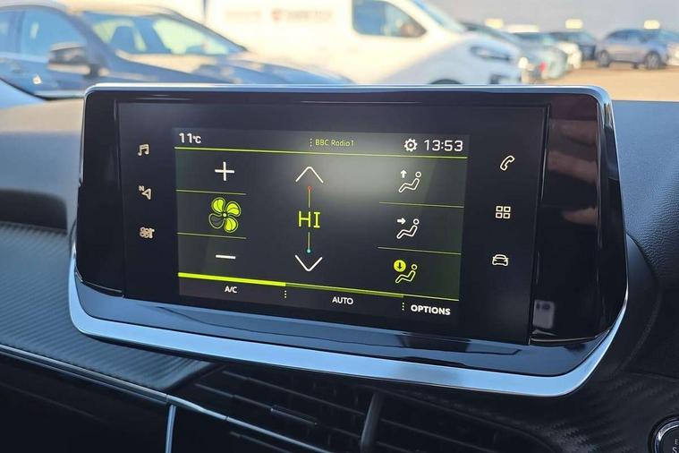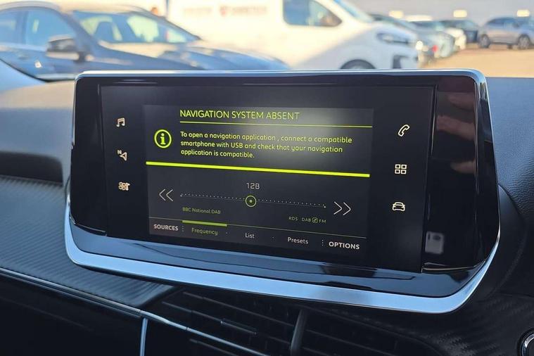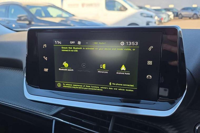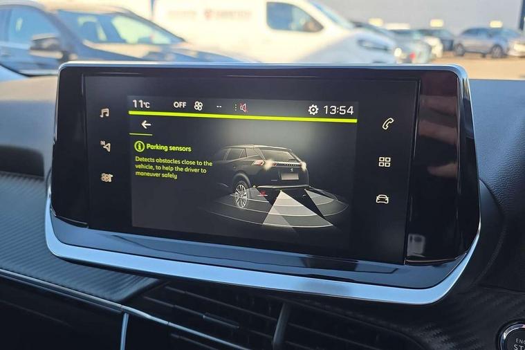 Bluetooth telephone facility, Driver attention warning, Exterior temperature indicator with ice warning, Front and rear parking sensors, Lane keep assist, Mirror screen with mirror link, apple carplay and android auto, Multi function trip computer, Peugeot connect SOS and assistance, PEUGEOT i-Cockpit with compact steering wheel, PEUGEOT i-Cockpit with configurable 3D headup instrument panel, Push button start, Smart phone docking station, Speed limit recognition and recommendation, 2 front USB socket with USB-C, 2 USB sockets in rear, 6 speakers radio with mp3 compatible, DAB Radio (Digital Audio Broadcasting), Voice recognition for radio, navigation and telephony features, 2 X Rear number plate lights, Black front wing trim with gloss black detail, Body coloured exterior door handles, Chrome front lower bumper, Colour coded door mirror shells, Colour coded rear spoiler, Colour coded roof, Dark tinted rear side and tailgate windows, Electric, heated, and power folding door mirrors, Electrochrome rear view mirror, Front windscreen wiper, Gloss black finish on B pillar, Gloss black rear cluster connecting strip, Gloss black roof bars, Halogen Eco LED headlights, Headlights left on audible warning, LED daytime running lights with distinctive tooth design, LED front fog lights, Model designation badges front and rear, One touch electric front/rear windows with pinch protection, Radiator grille chrome chequered, Radiator grille gloss black higher part, Rear full LED 3D peugeot signature claw effect lights with daylight function, Rear reversing lights, Rear windscreen wiper triggered automatically in reverse gear, Tailgate with heated rear windscreen and wiper blade, Wheel arch extensions, 1/3 to 2/3 split folding rear seats, 12V socket, Automatic air conditioning, Central front armrest with storage compartment, Driver and front passenger comfort seats, Driver and front passenger seat manual adjustment in longitudinal and back rest angle, Driver and front passenger seat mechanical height adjustment, Electric power steering with reach and rake adjustable steering column, Front LED interior light with 2 reading spotlights and rear interior light with timer, Gear lever - manual in satin chrome, Gear shift indicator, High centre console, ISOFIX child seat mounting points on passenger seat, Leather steering wheel, Light blue contrast stitching to front centre console, door panels and dashboard facia, Modular boot floor, Piano keys gloss black plated toggle switches to access main functions of the vehicle, Roof lining - light grey, Seatbelt unfastened on the move audible and visual alert for front and rear seats, Visibility pack - 2008, 2x 2nd row ISOFIX child seat mountings, ABS (Anti-lock Braking System) with EBD (Electronic Braking Distribution) and EBA (Emergency Braking Assistance), Active safety brake with night function/cyclists/pedestrians, Adaptive driver and front passenger airbags with passenger airbag deactivation function, Child locking functionality on rear doors, Driver/front passenger side airbags, Electric parking brake, ESP (Electronic Stability Program) + Hill Start Assist, Front and rear curtain airbags, Front and rear disc brakes, Front and rear three-point retractable seatbelts, with force limiters, Front optimised safety headrests and rear retractable headrests (x3), height adjustable, Tyre pressure sensor, Automatic door locking when moving off, Automatic hazard light activation upon heavy brake application, Deadlocks, Electronic code immobiliser, Thatcham Cat.1 alarm, Carbon effect Dashboard, front and rear door panel finish, 17" Salamanca diamond cut alloy wheels, Space saver spare wheel,