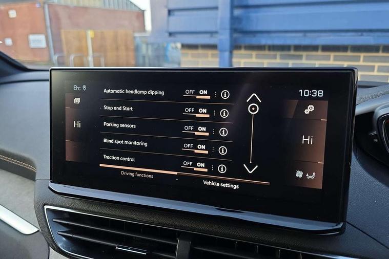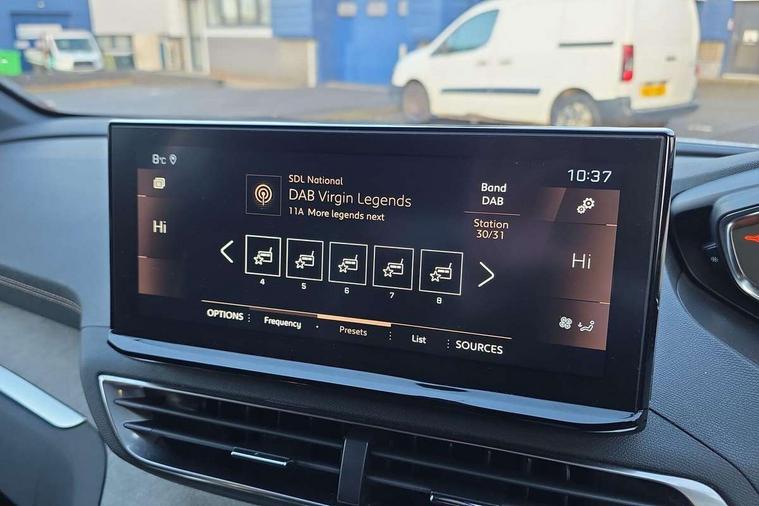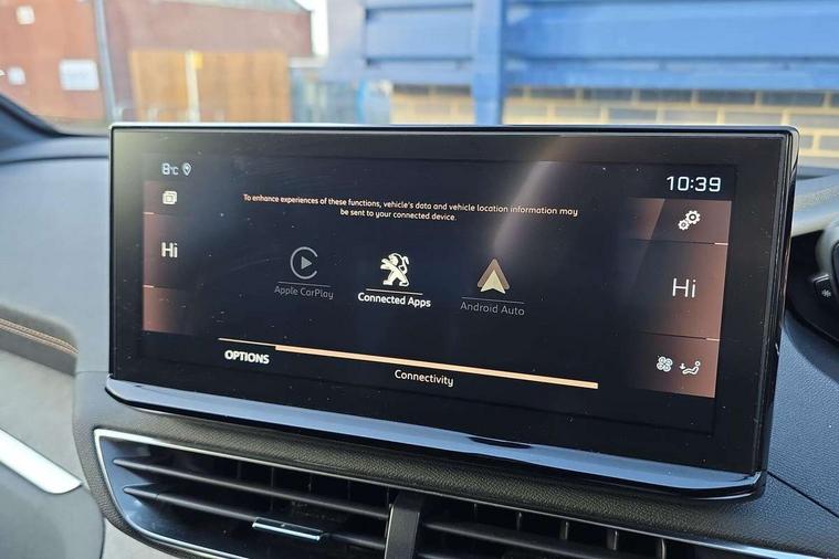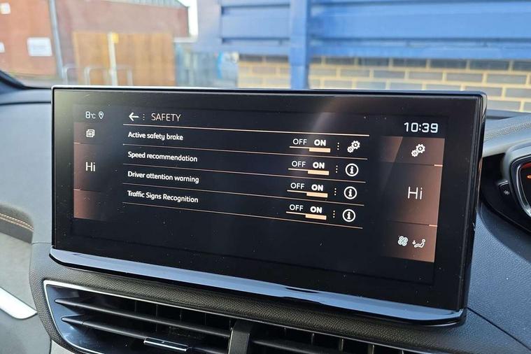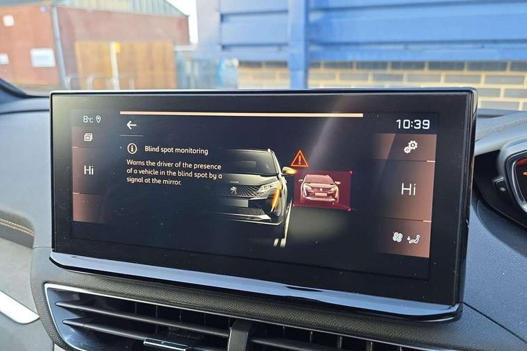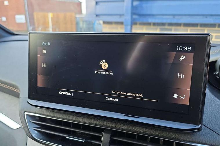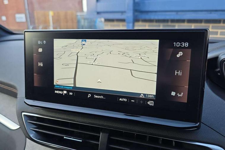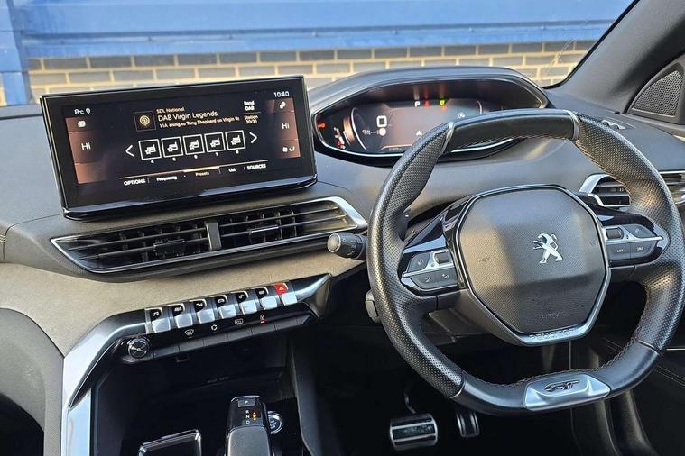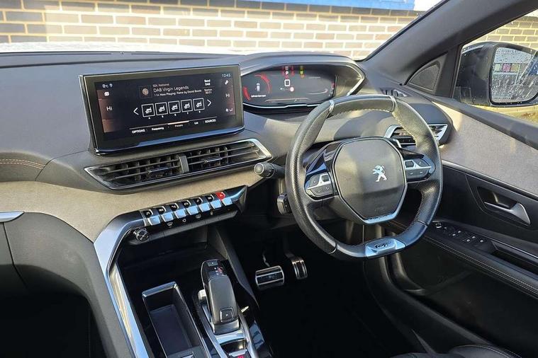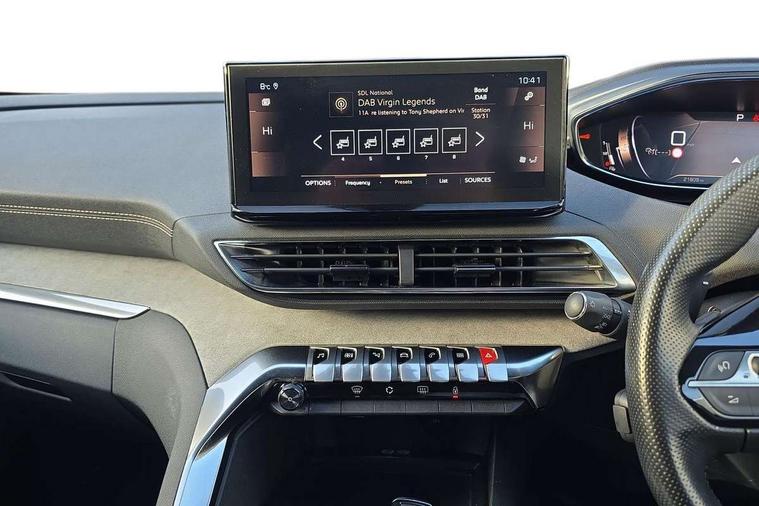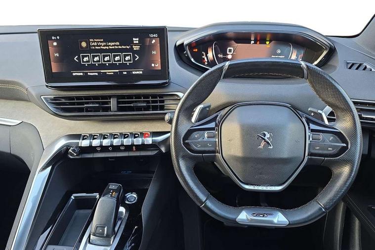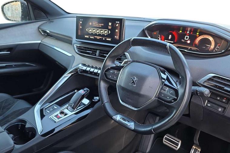 3D connected navigation with 10" HD touchscreen + voice recognition system, Bluetooth telephone facility, Driver attention alert system, Extended traffic sign recognition, Exterior temperature indicator with ice warning, Front parking sensors, Lane departure warning system, Mirror screen with mirror link, apple carplay and android auto, Multi function trip computer, Peugeot connect SOS and assistance, PEUGEOT i-Cockpit with 8.0" capacitive touchscreen in centre console, Peugeot i-cockpit with compact multi-function sports steering wheel, PEUGEOT i-Cockpit with configurable 12.3" Head-up digital instrument panel, Rear parking aid, Rear passenger USB charging sockets (x2) (type A), Speed limit recognition and recommendation, Dynamic stability control and electronic anti-skid system, Stop/start function, DAB Digital radio, USB socket, Automatic hazard light activation upon heavy brake application, Automatic triggered rear windscreen wiper in reverse gear, Body colour door handles, Body colour rear roof spoiler with stainless steel edging trim, Body protectors (bottom of front and rear bumpers + wheel arches + protection at bottom of doors) in black, Chrome front wing trim, Chrome rear bumper facia, Dark tinted rear side windows + tailgate window, Electric operated/heated door mirrors, Fog Mode, Frameless electrochrome rear view mirror, Front door sills with stainless steel insert featuring 'PEUGEOT' lettering, Front windscreen wiper with magic wash cleaning system, Full LED headlights with LED fog lights with static cornering function, Gloss black B and C pillar and aerodynamic deflector trim, Gloss black front bumper air scoops, Gloss black rear cluster connecting strip, GT emblem in satin copper (front wings and tailgate), Headlights left on audible warning, Heated rear windscreen with integrated antenna, LED daytime running lights, LED rear number plate lighting, LED side indicator lights integrated into door mirrors, LED third brake light, Nera black door mirrors, One touch electric front/rear windows with pinch protection, Power folding door mirrors with blind spot detection indicator and auto dipping function in reverse gear, Radiator grille in chrome edge trim and facets, Rear LED Peugeot signature 'Claw Effect' lights, Rear side wing doors, Stainless steel roof arches, Twin exhaust tailpipe, 1/3 to 2/3 split folding rear seats, 12V Sockets in dashboard, rear cabin and load area, 2 cupholders in front centre console, 2x Rear coat hooks, 3x Isofix child seat fittings in the front passenger and outer rear seats, 4 Grab handles retractable and damped, Aikinite stitching in armrest, gear lever and dashboard facia, Aluminium pedals, Blue ambient lighting for connecting zone, Blue ambient lighting to front door panels, central storage and cupholders, Centre front armrest with butterfly wing opening and illuminated storage compartment, Dual zone automatic climate control, Electric power steering with reach and rake adjustable steering column, Flocked front door pocket interior with blue ambient lighting, Flocked glovebox interior, Foldable front passenger seat, Footwell illumination, Front interior light with 2 reading spotlights and rear interior light with timer, Front seat back map pockets, Gear shift indicator, Height adjustable front seats, Illuminated glovebox, Individual left and right controls in boot for seat folding, LED interior lighting in storage spaces and load area, Mistral floor mats with Aikinite contrast stitching, Mistral full grain perforated leather steering wheel with aikinite stitch detail and satin chrome 'GT' emblem, Rear bench seat with central armrest and ski hatch, Rear centre console ventilation system, Roof lining - Mistral black, Satin chrome dashboard trim, Satin chrome digital instrument panel and touchscreen trim, Satin chrome front door panel recess trim, Satin chrome interior door handles, Satin chrome scorpion's tail and toggle switch trim, Seatbelt not fastened audible and visual alert for front seats, Seatbelt unfastened on the move audible and visual alert for front and rear seats, Sunvisors with illuminated vanity mirrors, Two position boot floor, Drive assist plus pack - 3008, Driver sport pack - 3008 Auto, Visibility pack - 3008, 3x Rear three-point retractable seatbelts with force limiters in the outer rear seats, ABS (Anti-lock Braking System) with EBD (Electronic Braking Distribution) and EBA (Emergency Braking Assistance), Adaptive driver and front passenger airbags with passenger airbag deactivation function, Driver and front passenger side airbags, Electric child locking functionality on rear windows and doors, Electric parking brake, Front and rear curtain airbags, Front optimised safety headrests and 3 x rear retractable headrests with height adjustable, Front three point retractable seatbelts with pre tensioners and force limiters, Front ventilated disc brakes and rear disc brakes, Hill start assist, Two tone horn, Automatic door locking when moving off, Electronic immobiliser, Perimetric and volumetric alarm with lift and tilt sensor, Peugeot Open and Go System, Remote control central locking with two plip keys, Grey greval alcantara dashboard and door panel inserts, Puncture repair kit including compressor, sealant cartridge and towing eye,