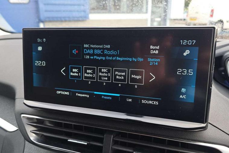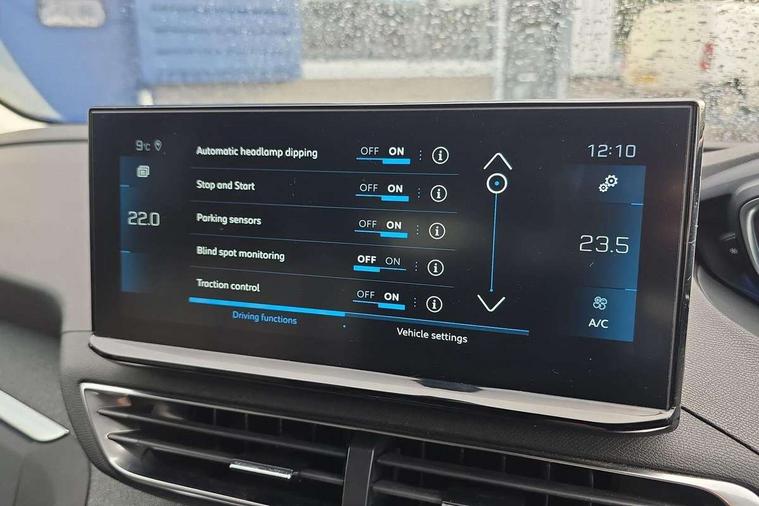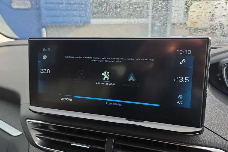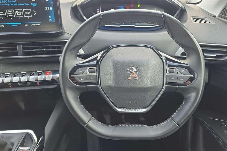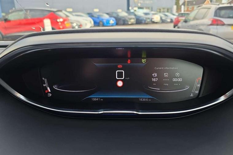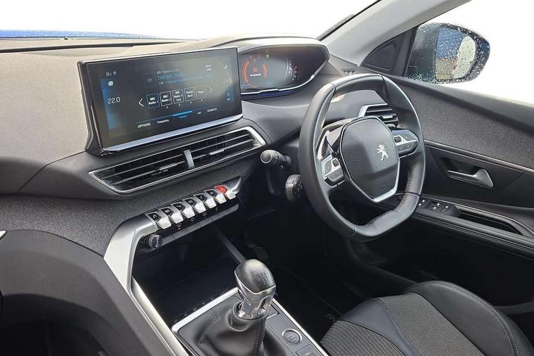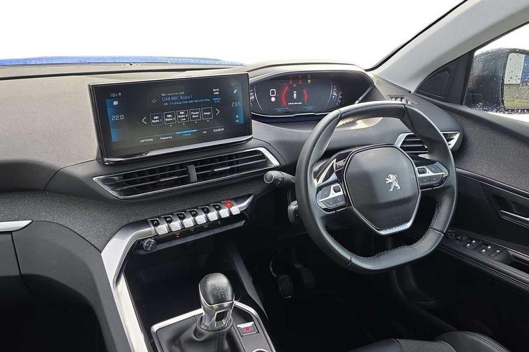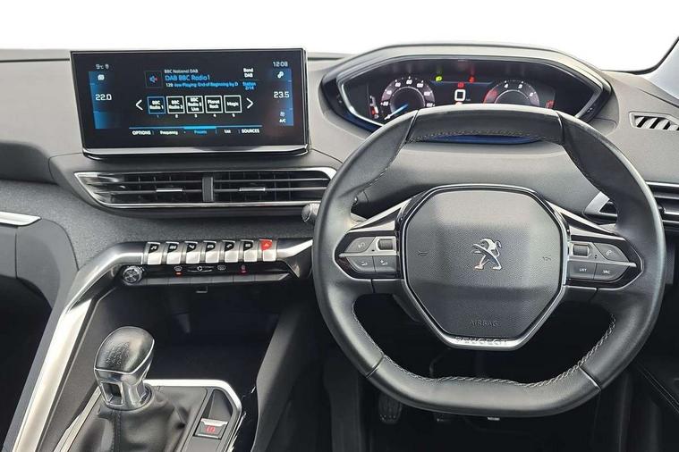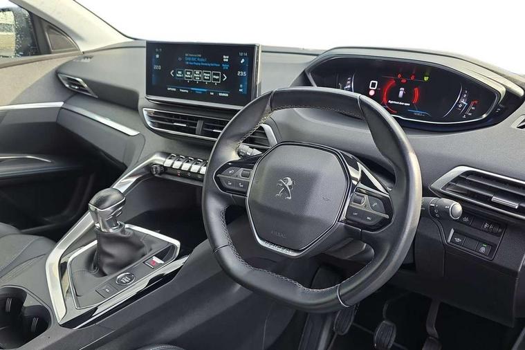 3D connected navigation with 10" HD touchscreen, Bluetooth telephone facility, Drive modes select (Eco, normal and sport), Driving Time Warning (DAA1), Emergency services call system, Extended traffic sign recognition, Exterior temperature indicator with ice warning, Front parking sensors, Mirror screen with mirror link, apple carplay and android auto, Multi function trip computer, PEUGEOT i-Cockpit with 10" high definition capacitive touchscreen, Peugeot i-cockpit with compact multi-function sports steering wheel, PEUGEOT i-Cockpit with configurable 12.3" Head-up digital instrument panel, Rear parking aid, Speed limit recognition and recommendation, Voice recognition, Dynamic stability control and electronic anti-skid system, Stop/start function, 6 speakers radio with mp3 compatible, DAB Digital radio, USB socket, Aluminium longitudinal roof bars, Automatic hazard light activation upon heavy brake application, Automatic triggered rear windscreen wiper in reverse gear, Black rubber side window trim, Black with chrome detailed front wing trim, Body colour door handles, Body colour rear roof spoiler with stainless steel edging trim, Body protectors (bottom of front and rear bumpers + wheel arches + protection at bottom of doors) in black, Chrome frameless 'Classic' grille, Chrome rear bumper facia, Dark tinted rear side windows + tailgate window, Diamond Black door mirror shells, Door mirror mounted LED courtesy floor lighting, Eco LED headlights, Electric folding door mirrors with exterior courtesy LED lighting, Electric operated/heated door mirrors, Front and rear door and sill protectors with polished stainless steel insert, Front bumper lower trim in Silver, Front windscreen wiper with magic wash cleaning system, Gloss black B and C pillar and aerodynamic deflector trim, Gloss black front bumper air scoops, Gloss black rear cluster connecting strip, Gloss black windscreen trim, Headlights left on audible warning, Heated rear windscreen with integrated antenna, LED daytime running lights, LED front indicator, LED rear number plate lighting, LED side indicator lights integrated into door mirrors, LED third brake light, One touch electric front/rear windows with pinch protection, Rear LED Peugeot signature 'Claw Effect' lights, Rear side wing doors, Stainless steel roof arches, 1/3 to 2/3 split folding rear seats, 12V Sockets in dashboard, rear cabin and load area, 2 cupholders in front centre console, 2 cupholders in rear armrest, 2 x Rear reading spotlights, 2x Rear coat hooks, 3x Isofix child seat fittings in the front passenger and outer rear seats, 4 Grab handles retractable and damped, Blue ambient lighting for connecting zone, Blue ambient lighting to front door panels, Blue ambient lighting to headup instrument panel, Brumeo fabric trimmed door armrests, Centre front armrest with butterfly wing opening and illuminated storage compartment, Driver seat lumbar adjustment, Driver seat manual adjustment (longitudinal and back rest angle), Dual zone automatic climate control, Electric power steering with reach and rake adjustable steering column, Flocked glovebox interior, Foldable front passenger seat with picnic table, Footwell illumination, Front interior light with 2 reading spotlights and rear interior light with timer, Front passenger seat manual adjustment (longitudinal and back rest angle), Front seat back map pockets, Gear shift indicator, Height adjustable front seats, Illuminated glovebox, Individual left and right controls in boot for seat folding, Leather steering wheel with detail stitch, LED interior lighting in storage spaces and load area, LED roof interior lighting, Rear bench seat with central armrest and ski hatch, Rear centre console ventilation system, Roof lining - Salin light grey, Satin chrome dashboard trim, Satin chrome digital instrument panel and touchscreen trim, Satin chrome front door panel recess trim, Satin chrome interior door handles, Satin chrome scorpion's tail and toggle switch trim, Seatbelt not fastened audible and visual alert for front seats, Seatbelt unfastened on the move audible and visual alert for front and rear seats, Sunvisors with illuminated vanity mirrors, Two position boot floor, Safety plus pack with high beam assist - 3008, Visibility pack - 3008, 3x Rear three-point retractable seatbelts with force limiters in the outer rear seats, ABS (Anti-lock Braking System) with EBD (Electronic Brakeforce Distribution) and EBA (Emergency Braking Assistance), Adaptive driver and front passenger airbags with passenger airbag deactivation function, Driver and front passenger side airbags, Electric child locking functionality on rear windows and doors, Electric parking brake, Front and rear curtain airbags, Front optimised safety headrests and 3 x rear retractable headrests with height adjustable, Front three point retractable seatbelts with pre tensioners and force limiters, Front ventilated disc brakes and rear disc brakes, Hill start assist, Two tone horn, Automatic door locking when moving off, Electronic immobiliser, key operated exterior door lock from the left hand door, Perimetric and volumetric alarm with lift and tilt sensor, Peugeot Open and Go System, Remote control central locking with two plip keys, Brumeo fabric Dashboard, front and rear door panel finish, Puncture repair kit including compressor, sealant cartridge and towing eye,