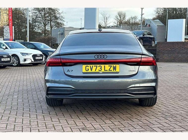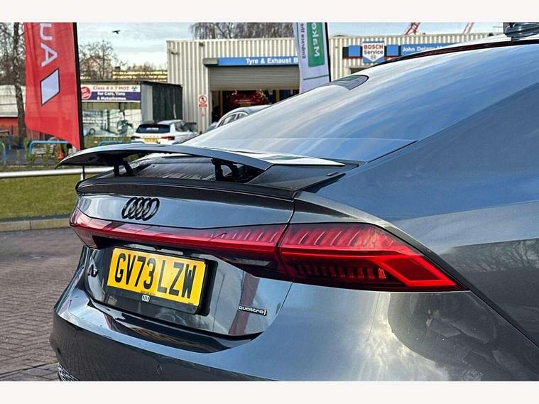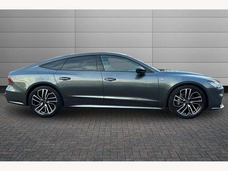 Audi connect safety and service (e-call), Audi connect with Amazon Alexa Integration, Audi drive select, Audi parking system plus - acoustic and visual park assist system for front and rear, Audi virtual cockpit, Automatic start/stop system with coasting functionality, Bluetooth interface, Camera based traffic sign recognition, Colour driver's information system display, Lane departure warning system, MMI nav plus with MMI touch + 10.1" and 8.6" HD haptic touch screen/3D city models/country information/online map/route info and personal route assist, Operating buttons in black, glass look with haptic feedback, Progressive steering, Rear view camera, Service indicator, Smartphone interface includes wireless Apple carplay/Android Auto, Voice control system, Quattro on demand, Sports suspension, Audi music interface, Audi sound system with 6 channel amplifier, 180 watt amplifying capacity and 10 loudspeakers including subwoofer, Auxiliary input socket, DAB digital radio module, Audi beam, Audi rings, front and rear as well as A7 at the rear in black, Black rear diffuser with chrome inlays, Electrically adjustable heated and folding + automatically dimming exterior mirrors with memory function, Frameless auto dimming interior rear view mirror, Front and rear electric windows, Gloss black highlights on the exterior area of the Audi Single frame, Gloss black highlights on the front and rear bumpers, Gloss black highlights on the radiator grille, Gloss black highlights on the side windows trim strips, HD Matrix LED headlights, Heat insulating darkened glass in side and rear windows, LED rear lights with dynamic indicators, Omission of output/technology badging, Privacy glass with side and rear windows, Rain and light sensors, Rear side wing doors, Rear wiper, Retractable rear boot spoiler, S air inlet in titanium anthracite black, Signature LED daytime running lights, Towbar preparation, Windscreen with heat-insulating glass, 2 zone deluxe electronic climate control, 4-way electric lumbar support, 40/20/40 split folding 3 seater rear seat bench with rear centre armrest, Audi phone box light, Black cloth headlining, Electrically adjustable front seats - driver seat with memory, Front and rear headrests, Front centre armrest, Heated front seats, Height/reach adjust steering wheel, Illuminated door sill trims with S logo, Illuminated sun visors with vanity mirrors, ISOFIX child seat mounting and top tether in front and outer rear seats with front passenger airbag deactivation, Leather gear knob, Leatherette upper instrument panel and door shoulders, Luggage compartment lid, electrically opening and closing, S line front and rear floor mats with contrast stitching, Single front passenger seat, Stainless steel pedals and foot rest, LED interior ambient lighting pack - A7, Non smoking pack - A7, 3 point seatbelts on all seats, Audi pre-sense front, Driver and passenger airbags, Electromechanical parking brake, Electronic stabilisation control including ABS, ASR and EDL, Extended pedestrian protection measures, Hill hold assist, Manual child lock in rear doors, Seatbelt monitoring, Tyre pressure warning light, Warning triangle and first aid kit, Anti theft alarm with tow away protection, Anti-theft wheel bolts and wheel loosening detection, Immobiliser, Keyless Go, Preparation for tracking system, Remote central locking, Carbon twill inlays, 20" 5 segment spoke evo style Audi sport black matte diamond turned alloy wheels, Tool kit,