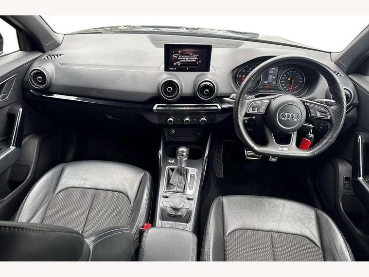 Audi drive select, Audi smartphone interface, Automatic start/stop system with recuperation, Bluetooth interface includes bluetooth audio streaming, Cruise control, MMI - Multi Media Interface control system, MMI SD card integrated nav with 3D map display, dynamic route guidance with TMC, MMI search, natural voice recognition and myAudi special destinations, Power operated tailgate, Progressive steering, Service interval indicator, Dynamic suspension, 2 x SDXC card reader, Audi music interface - apple iPod, apple iPhone, USB storage media, compatible MP3 players, 2 x USB charging points and 1 x Aux-in, CD Drive, DAB digital radio and AM/FM radio, MMI radio plus with 7" colour MMI screen and MMI controller, Black window trims, Bumper in full body colour paint finish, Chrome exhaust tailpipe, Electrically adjustable and heated door mirrors with integrated LED side indicators, Front and rear electric windows, Front underbody guard and rear diffuser trim in selenite silver, Front windscreen with grey tinted sunband, Headlight washers, Interior mirror, LED headlights with LED rear lights + dynamic rear indicators, LED indicator lights, Manual folding door mirrors, Privacy glass - dark tinted rear and rear side windows from B-pillar backwards, Rain and light sensors, Rear wiper, S Line body styling - front and rear bumpers, side skirts, radiator grille, rear diffuser insert and front air intakes, 3 spoke flat bottomed high multi-function leather sport steering wheel with gearshift paddles, 60/40 split folding rear seat bench, Black cloth headlining, Floor mats with contrast stitching, Front centre armrest, Front headrests, Front sport seats with S embossed logo, Height/reach adjust steering wheel, Illuminated door sill trims with S logo, ISOFIX child seat mounting for front passenger with airbag deactivation and outer rear seat including top tether attachment point for outer rear seats, Manual seat adjustment including seat height adjustment for front seats, Stainless steel pedals, Storage compartments - Glovebox, cupholder compartment in centre console, storage compartment in rear centre console, front and rear door pockets, Three rear headrests, Black styling pack - Q2, LED interior lighting pack - Q2, Non smoking pack - Q2, 3x3 point rear seatbelts, 6 airbags - Front, curtain and front side airbags, Electromechanical parking brake, Electronic stabilisation control including ABS, ASR and EDL, Extended and proactive pedestrian protection, Hill hold assist, Multi collision brake assist, Pre-sense front with pedestrian recognition, Seatbelt monitoring, Tyre pressure warning light, Warning triangle and first aid kit, Anti theft alarm, Anti theft wheel bolts, Central locking system with remote control key, Electronically operated child locks, Aluminium interior element, Black inlays - decorative trims in black for centre console and front and rear door pull handles,