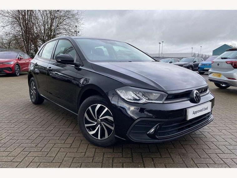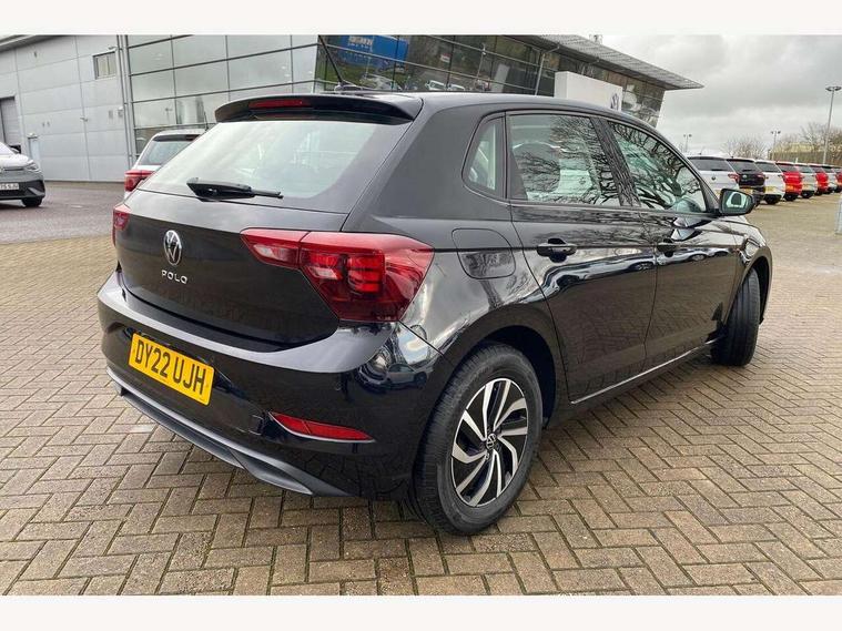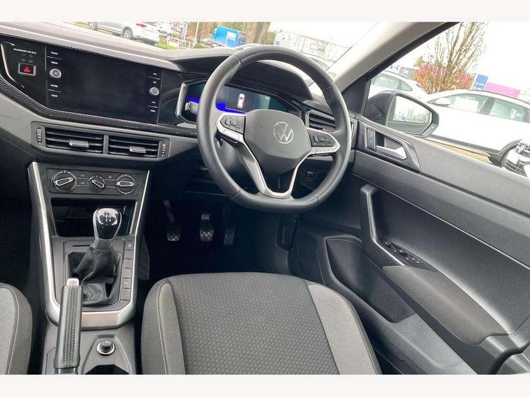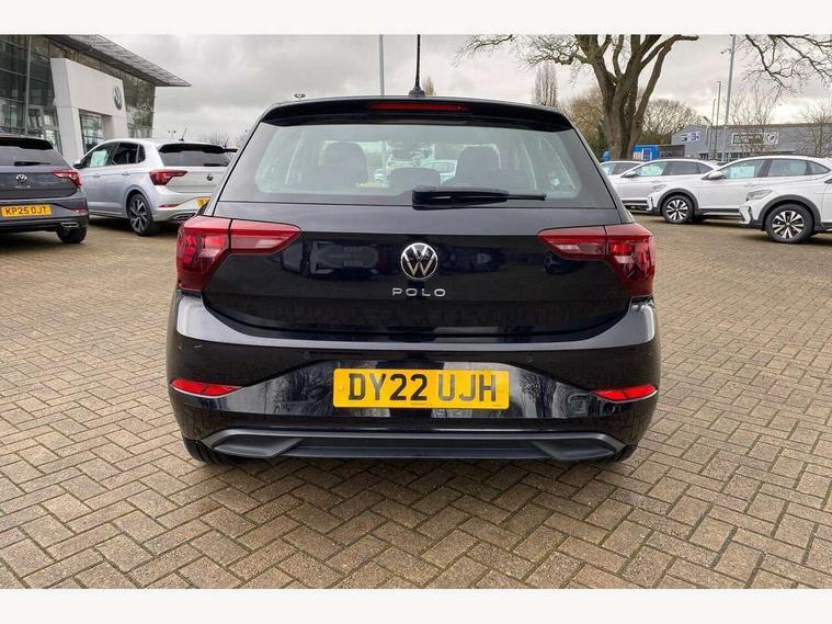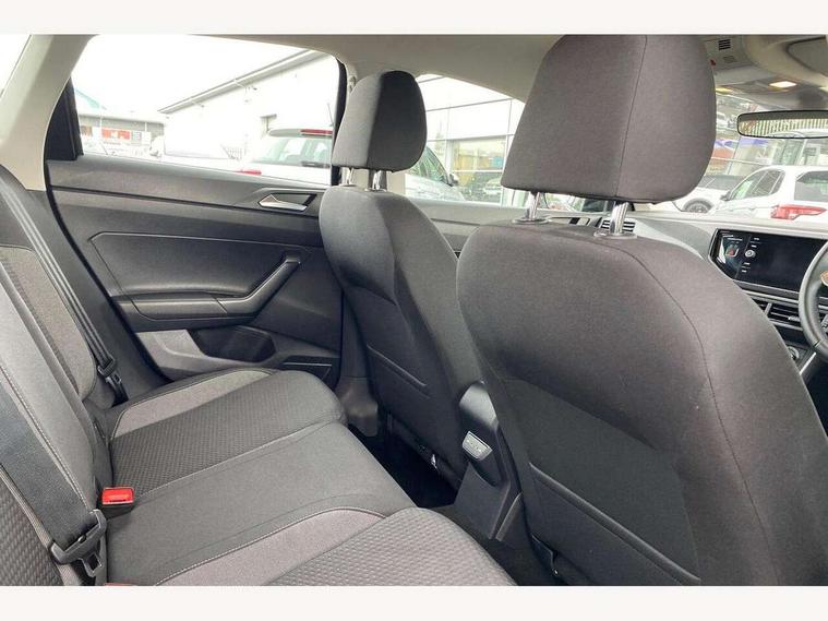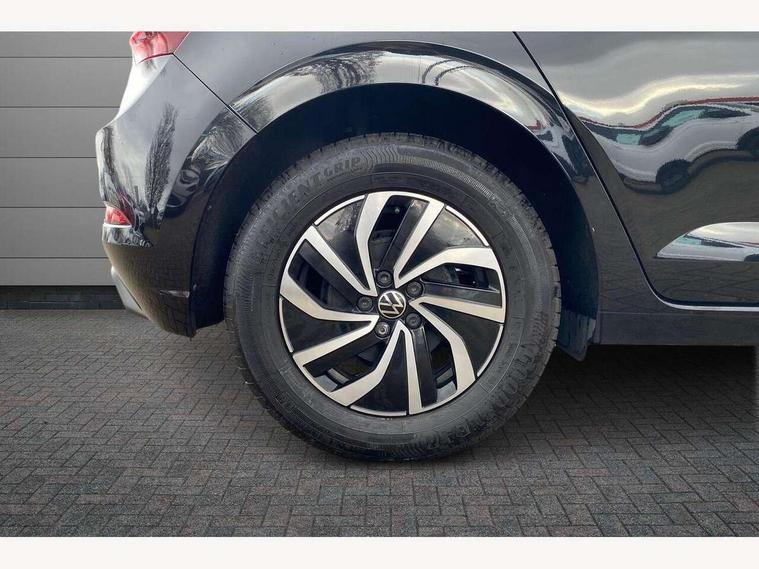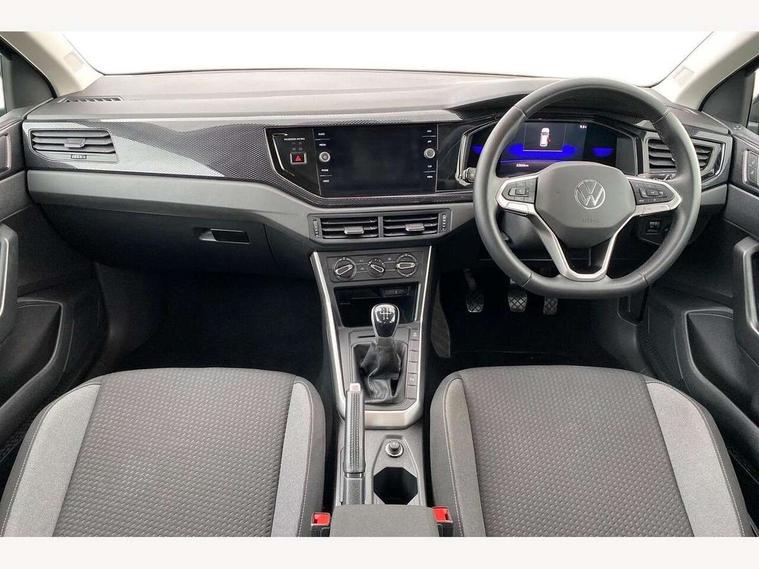 Adaptive cruise control without follow-to-stop and speed limiter, Bluetooth mobile phone interface, Driver alert system, Emergency call service, Front assist system, Power assisted speed sensitive steering, Preparation for We connect and We connect plus, Speedo and rev counter, electronic odometer, trip, service interval display and fuel gauge, Standard rear axle, Travel Assist - Lane keeping system and traffic jam assist, Travel assist including emergency assist, Trip computer, Warning signal and warning light for front and rear seatbelts not fastened, Washer fluid level indicator, Wireless app connect, Front wheel drive, Rear shock absorpion, Start-stop system with battery regeneration (recuperation - energy recovery during braking), DAB Digital radio, Diversity antenna for FM reception, Front and rear 6 speakers, Automatic dimming interior rear view mirror, Body colour bumpers, Body colour door handles, Body colour door mirrors, Electric front windows, Heat insulating darkened glass in side and rear windows, Heat insulating glass windscreen, Power folding adjustable/heated exterior mirrors and front passenger exterior mirror lowering function, Rain sensor, Rear electric windows, Rear fog light, Rear side wing doors, Rear windscreen washer and wiper with interval delay, Third brake light, 12V power socket in centre console, 2 front and 2 rear reading lights, 2 USB-C ports in the front, 2 USB-C charging sockets on the center console in the rear, 3 rear head restraints, 60/40 split folding rear seat and rear seat bench not split, Ceramique headliner, Chrome plated radiator grille inserts, air vent surrounds and light switch surrounds, Door and side trim panel, Driver and front passenger seat height adjustment, Driver/passenger sunvisors with illuminated vanity mirrors, Front centre armrest, Front seat backrest storage pockets, Front standard seats, Handbrake lever handle in leather, Hartley/Thomas cloth upholstery, Isofix child seat preparation easy-fit (for two outer rear seats, and front passenger seat) compatible with I-size, Leather trimmed gear knob, Luggage compartment cover, Luggage compartment floor, Luggage compartment lighting, Multifunction steering wheel, Single front passenger seat, Standard pedal cluster, Light and vision pack - Polo, 3 point height adj front seatbelts + pretensioners, 3x3 point rear seatbelts, ABS, Driver and front passenger airbag with front passenger airbag deactivation, Drivers and front passengers safety optimised head restraints, ESC (Electronic stability control) + EDL (Electronic Differntial lock) and ASR (Traction control), Extended and predictive pedestrian/ cyclist protection, Front curtain and side airbags with center airbag, Front disc brakes, Hill hold control, Manual child lock in rear doors, Rear drum brakes, Single tone horn, Tyre pressure loss indicator, Alarm with interior protection, Anti-theft alarm system with interior monitoring, backup horn, and towing protection, Anti-theft wheel bolts, Electronic engine immobiliser, Lava stone black gloss/matt decorative inserts in dash and front door panels, Low rolling resistance tyres,