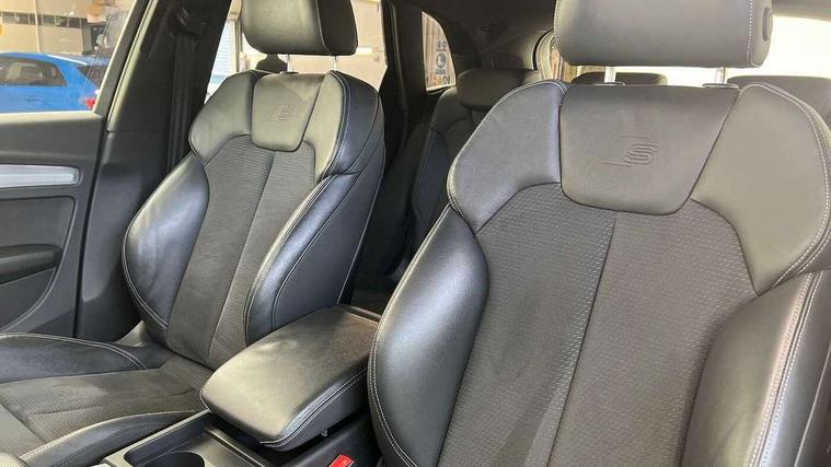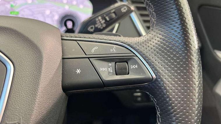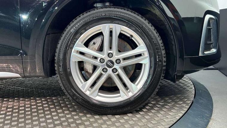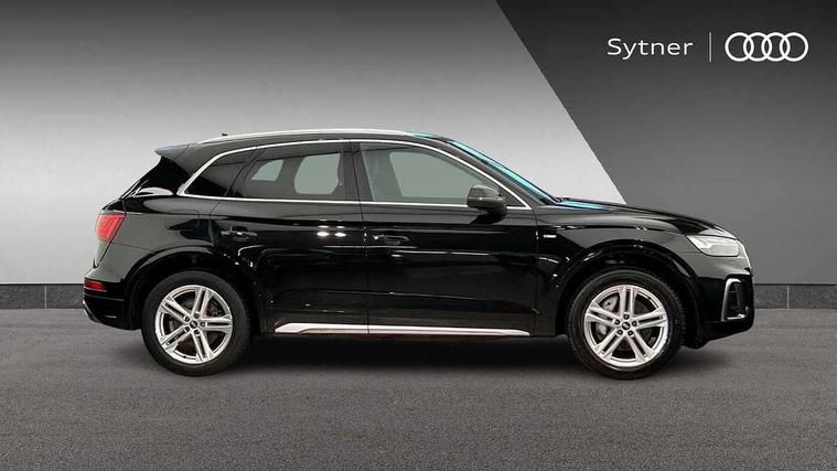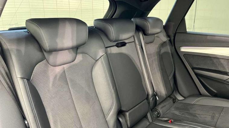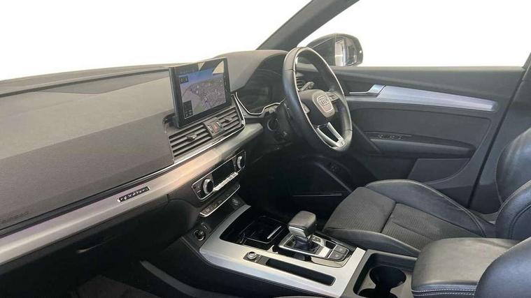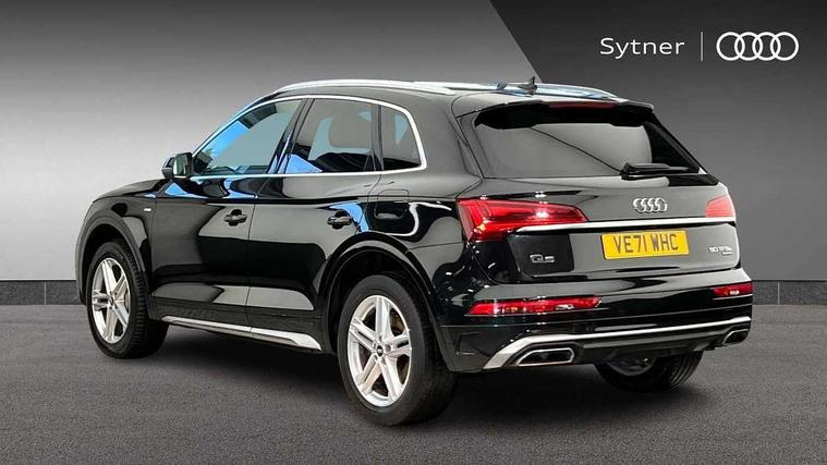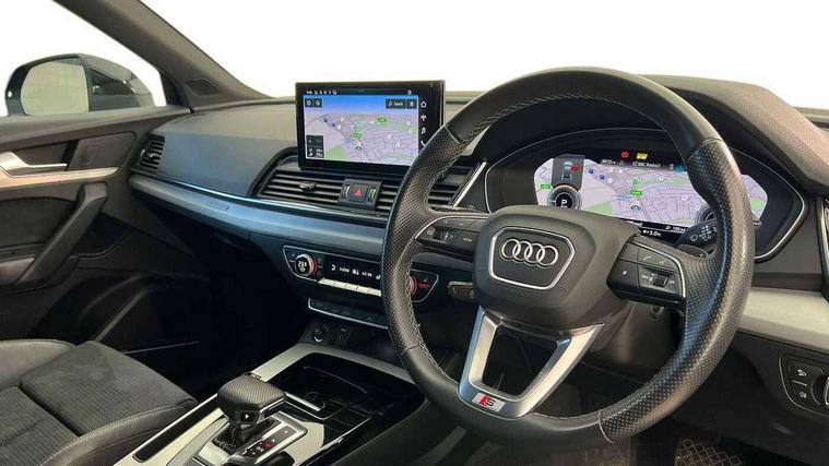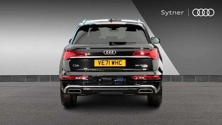 Audi connect safety and service (e-call), Audi connect with Amazon Alexa Integration, Audi drive select, Audi virtual cockpit plus with 12.3" screen and three different layout designs, Audi wireless smartphone interface, Automatic start-stop system with coasting functionality and efficiency programme, Bluetooth interface, Electro - mechanical power assisted steering, MMI navigation plus with 10.1" touch screen, Power tailgate, Reversing camera, Service interval indicator, Voice control system with Audi hotword activation "Hey Audi", 3 pin 10 amp domestic charging cable, 7.4 kW onboard charger, Dynamic suspension, Quattro on demand, Type 2 mode 3 22kW 32 amp charging cable, Type 2 socket for AC charging, 2 x USB charging port with aux input socket, DAB Digital radio, 3rd brake light, Acoustic windscreen, Aluminium roof rails, Audi matrix LED headlights with dynamic front and rear indicators, Auto dimming rear view mirror, Automatic headlights and windscreen wipers, Body colour bumpers, Body colour door mirrors, Body colour rear diffuser with matt aluminium silver surrounds, Body colour underbody protection, Chrome plated exhaust trims, Daytime running lights, Door sills in Selenite silver, Electric adjustable/heated/folding door mirrors, Front air inlet surrounds in aluminium, Front and rear electric windows, Front radiator grille in honeycomb design, Headlight washers, Lower bumpers painted in contrast Manhattan grey, Rear chrome trim strip below lights, Rear privacy glass and rear side windows, Rear side wing doors, Rear spoiler, Rear wiper, Roof bars, S Line badges on the front wings, S Line front and rear bumpers, S Line side skirts, 3 rear headrests, 40:20:40 split folding 3 rear bench seat in 2nd row with rear centre armrest, Black cloth headlining, Comfort front centre armrest, Contrast stitching on seats, steering wheel and gear lever gaiter, Deluxe 3 zone electronic climate control, Front/rear floor mats, Gear lever in black leather, Heated front seats, Height adjustable front head restraints, Height/reach adjustable steering column, Illuminated door sill trims with S logo, ISOFIX child seat mounting and top tether, Manual seat adjustment with 4-way electric lumbar support, Rear seat bench plus, Single front passenger seat, Sunvisors with vanity mirrors, Trunk roller cover, High gloss pack - Q5, LED interior light pack - Q5, 3 point seatbelts on all seats, 6 airbags - Driver, front passenger, curtain and side airbags, Electrically operated child locks on rear doors, Electromechanical parking brake, Electronic stabilisation control including ABS, ASR and EDL, Front passenger airbag deactivation, Hill descent control, Hill hold assist, Multi collision brake assist, Pop-up bonnet for pedestrian protection, Pre sense city, Seat belt force limiter, Seatbelt monitoring, Tyre pressure warning, Warning triangle and first aid kit, Anti theft alarm, Anti-theft wheel bolts, Keyless Go access/ignition system, Matt brushed aluminium inlays, Tool kit, Tyre repair kit,