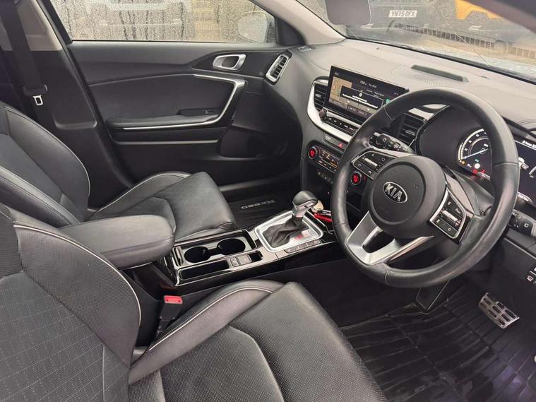 10.25" touchscreen satellite navigation with telematics, 12.3" TFT supervision cluster display, Android auto with voice control, Apple car play with voice control, Blind spot collision warning, Bluetooth with Voice Recognition & Music Streaming, Drive mode selector, Driver attention warning, Forward Collision-Avoidance Assist (FCA) - City/Pedestrian/Cyclist, Intelligent speed limit warning, Kia connected services featuring TomTom live, Lane Following Assist (LFA), Lane keep assist, Motor driven power steering, Reversing camera with dynamic guide lines, Smart cruise control with stop and go functionality, Smart park assist system (SPAS) with parallel/perpendicular/reverse with front/rear parking sensors, Smart power tailgate, Trip computer, Wireless Mobile Phone Charger, 7 speakers, DAB Radio with MP3, Front USB port, Steering wheel mounted controls, USB Fast Charger in Front Centre Console, All-round Electric Windows with Auto Up & Down Function, Auto dimming rear view mirror, Automatic defog system, Automatic headlights, Black chrome and satin chrome closed radiator grille, Black wheel arch extensions, Body colour bumpers, Body colour exterior door handles, Body colour side sill mouldings, Body coloured rear spoiler, Electrically folding, adjustable and heated door mirrors with integrated LED indicator lights, Gloss black shark fin antenna, Heated rear window with timer, High beam assist, High gloss black door mirrors with matt black lower housing, LED Bi-Function projection headlights, LED daytime running lights, LED High-mounted Brake Light, LED rear fog light, LED rear lights, Panoramic sunroof with tilt/slide function and automatic electric roll blinds, Privacy glass - Rear windows and tailgate, Projection front fog lights, Rain sensing front wipers, Rear wiper, Satin chrome window surround, Silver roof rails, Tinted glass, Wide view drivers door mirror, Windscreen Washer Level Warning, 12V power socket in front centre console, 12V socket in luggage compartment, 40:20:40 split folding rear bench seat, All-round height adjustable headrests, Aluminium pedals, Centre console with cupholders and sliding cover, Centre Console with Storage Box and Sliding Armrest, Chrome interior door handles, Driver + front passenger electric lumbar support, Driver seat memory function, Driver seat power height adjuster, Dual zone automatic air conditioning, Faux leather door trim, Front and rear door storage, Front cabin LED map light with sunglasses case, Front Passenger Seat Height Adjuster, Front seat and rear pockets, Heated front seats, Heated outer rear seats, Heated steering wheel, Illuminated driver and front passenger sunvisors with vanity mirror, ISOFIX Child seat top tethers and anchor fixings, Leather steering wheel and gearshift, Leather upholstery, Luggage area light, Luggage area parcel shelf, Luggage hooks, Rear cabin light, Rear centre armrest with cupholders, Tilt/telescopic adjustable steering wheel, Ventilated front seats, Trailer Pack - XCEED, ABS with Electronic Brakeforce Distribution (EBD) and Brake Assist System (BAS), All round 3-point seatbelts, Dual front side airbags, Dual horn, Electronic parking brake, Electronic stability control (ESC) and vehicle stability management (VSM), Front passenger airbag cut off switch, Height adjustable front seatbelts, Hill start assist control (HAC), Impact sensing auto door unlocking, Rear door child safety locks, Seatbelt reminder warning, Traction control, Twin curtain airbags, Twin front airbags, Tyre pressure monitoring system, Alarm system, Engine Immobiliser & Deadlocks, Engine Start/Stop Button with Smart Entry System, Locking wheel nuts, 18" Alloy wheels, Tyre mobility kit,