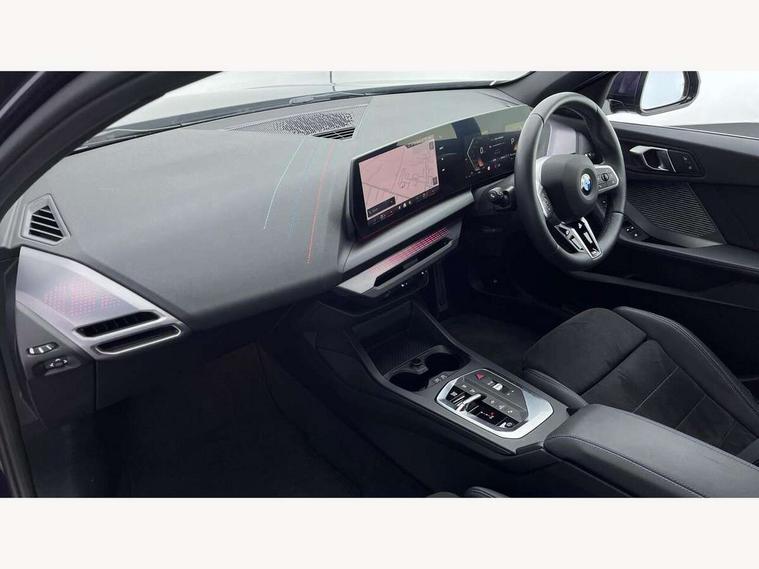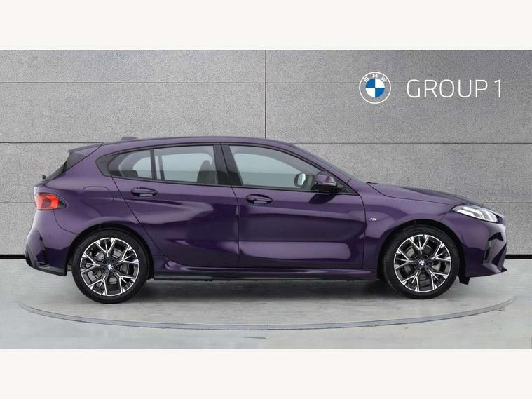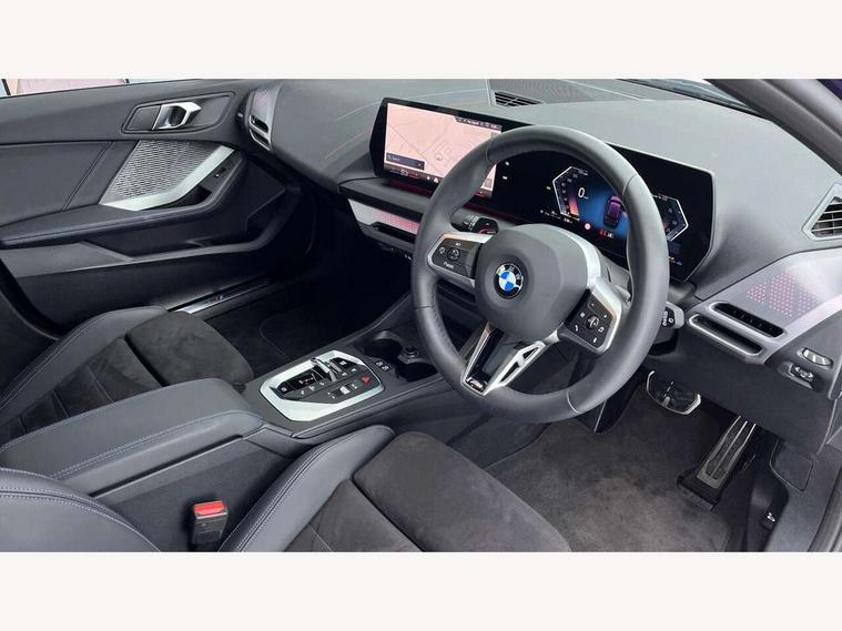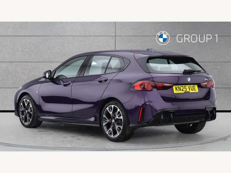 Active guard plus, Attentiveness assist, Bluetooth / WiFi interface for wireless connection of mobile terminal devices and audio streaming, BMW ConnectedDrive online services, BMW Live cockpit plus, BMW Teleservices, Check Control warning system for monitoring of lights and door/luggage compartment open warning, Eco pro mode, Electric power steering with Servotronic steering optimised at all speed ranges, Evasion assistant, Flat airvents in instrument panel with adjustable slats, Front and rear parking sensors, Front axle single joint with specific axle kinematics to minimise drive influences on steering + provide increased rigidity agile driving behaviour, Gearshift time display in manual mode, Integrated owners handbook, Left turn warning with brake function, My modes (Personal / Efficient / Sport), Oil sensor for level and grade, On board computer, Optimum shift indicator, Park assist including reversing assistant, lateral parking aid and reversing assist camera, Personal e-SIM, Personal Profile, Pull away assistant, Rigidly mounted rear subframe - Multi link construction with separate spring / damper configuration and excellent driving characteristics, Speed limit Info including no-overtaking indicator, Speed limiter, 49 litre fuel tank, Aluminium lightweight construction, Anti roll bar front and rear, Balancer shaft, Double VANOS twin scroll turbocharging system, Drive Performance Control, Electronic differential lock, Electronic selector lever, High precision injection, M Adaptive suspension, Petrol Particulate Filter, Steptronic transmission with double clutch, Twin tube gas filled shock absorbers with degressive characteristic curve, VALVETRONIC engine management, DAB Digital radio, Auto dimming rear view mirror, Automatic windscreen wipers and automatic headlight, Body colour door handles, Body colour mirror caps, Body colour roof trims, Chrome 'M' logo side designation, Chrome exhaust twin tailpipes round 90mm in left, Chrome kidney grille frame with Satin Aluminium struts, Direction indicator side lights in exterior mirrors, Electrically adjustable exterior mirror with mirror adjustment switch on drivers armrest and aspheric on driver side, convex on passenger side, Exterior M sport design elements, Fading support, Folding side mirrors with auto dimming/folding wing mirrors with auto dimming, Follow me home headlights, Front and rear bumper system with replaceable deformation elements, Front and rear electric windows with open and close fingertip control, anti trap facility and comfort closing, Front bumper panel with M specific design in vehicle colour with inserts in black high gloss, Front door sill finishers in black plastic with M designation in metallic look, Green tinted heat protection glazing, Heated rear window, High gloss black exterior mirrors, High gloss shadowline window frame, Recess cover mirror frames and B/C pillar embelisher trim, High level third brake light, Integrated front windscreen with washer jets, LED daytime running lights, LED eyebrow turn indicators, LED front fog lights, LED Headlights, Lightweight engineering, M identification on the sides, Matt black air guide grilles, Matt black wheel arch trim, Model badge on tailgate right, Nearside reverse light in rear light cluster, Preparation for high beam assistant, Rain sensor, Rear bumper panel with M-specific design in vehicle colour with inserts in black high gloss, Rear fog lights, Rear side wing doors, Rear window wiper, Shark fin antenna, Side sill covers with M specific design in body colour, Trailer stabilisation logic, Visible VIN plate, Welcome lighting, 12V power socket in front centre console with blanking plug, 3 rear seat head restraints, 3 seat bench in 2nd row, 3 spoke sports leather steering wheel with black leather and stitching, pearl chrome decorative finish, specific M Badge, Anthracite front and rear floor mats, Anthracite headlining, Black boot net with lashing eyes, Cargo function on 2nd seat row, Child seat ISOFIX attachment for two outer rear seats and front passenger seat with anchorage points, Conditioned based service, Driver and front passenger backrest net on rear, Driver and front passenger seat heating, Driver side folding compartment in instrument panel, Folding rear clothes hook, Footrest and pedals in black plastic, Four grab handles integrated in roof lining, Front and rear door pockets with bottle holders, Front and rear side armrest integrated into door trim, Front armrest with storage compartment, Gearshift paddles on steering wheel, Glove compartment, Height adjustable front head restraints, Luggage compartment for bag hooks on left and right, foldable luggage compartment liner and four lashing eyelets, Manual adjust steering wheel, Multi-function controls for steering wheel, Rear seat backrest with manual 60:40 split folding with 3 top tether clips integrated on rear of seat panels, Single front passenger seat, Storage compartment in centre console, Storage compartment in luggage compartment, Stowage of the parcel shelf in luggage compartment trim, Sun visors with vanity mirrors and insert tab, Two front centre console cupholders, Type C two USB ports in rear centre console, Upper retaining strap integrated into backrest rear panels, Connected pack professional - 1 Series, Interior lights pack - 1 Series, M Sport exterior styling aerodynamics pack - 1 Series, 2 tone horn, 3 point seatbelts on all seats, front pyrotechnic belt tensioners, stopper and belt force limiters, rear coded belt buckles, Airbags - Front driver/passenger, front and rear curtain head protection, front side, manual deactivation of front passenger airbag, Anti lock braking system (ABS) with brake assist, BMW emergency call, Brake drying, Braking readiness, Child proof locking system in rear door, Comfort modes, Cornering brake control, Crash sensor activating of airbags, Unlocking doors, hazard warning lights, interior light, safety battery terminal, Driver and front passenger seat belt sec