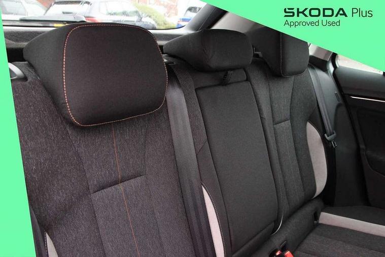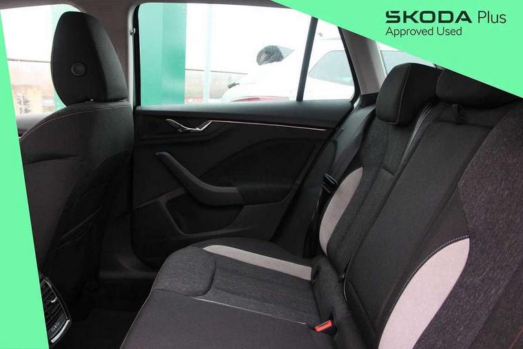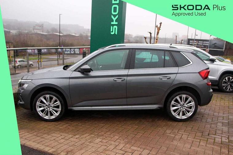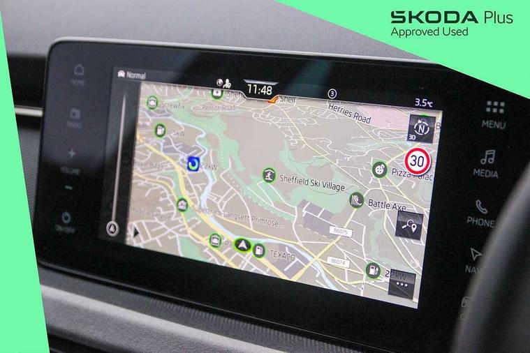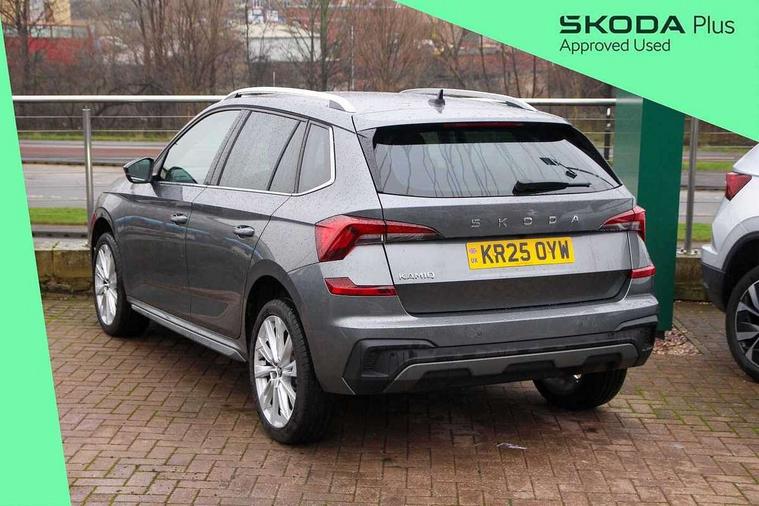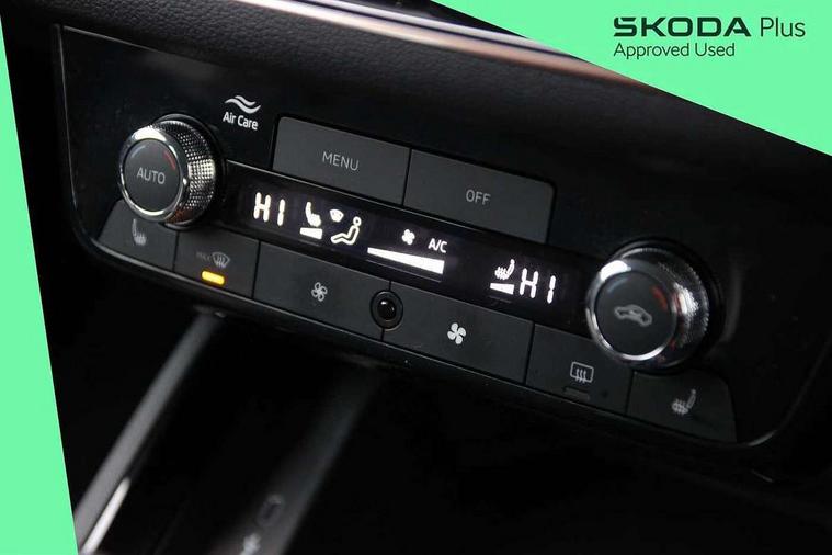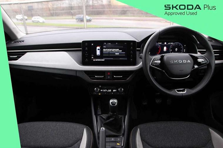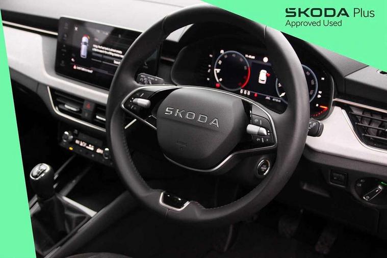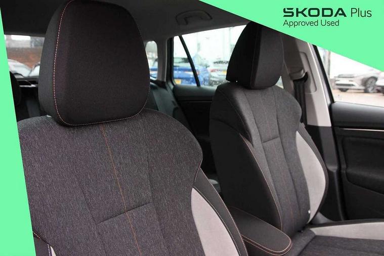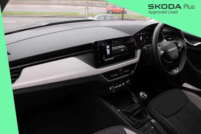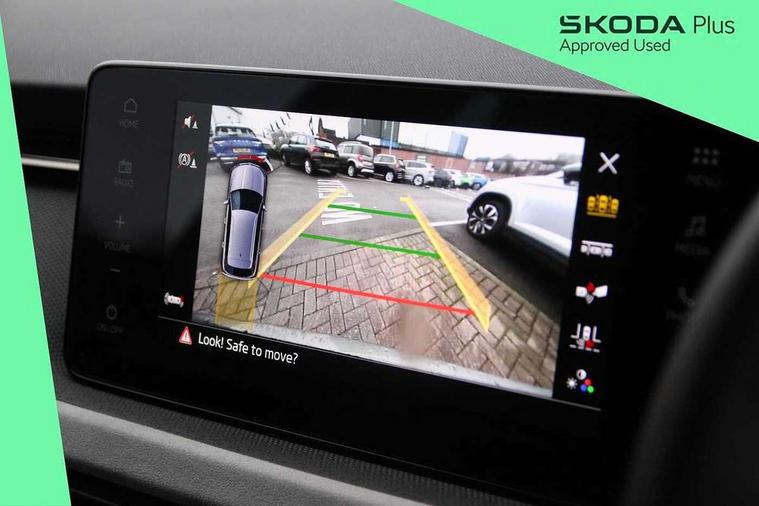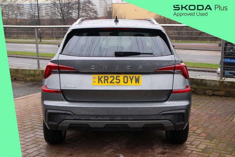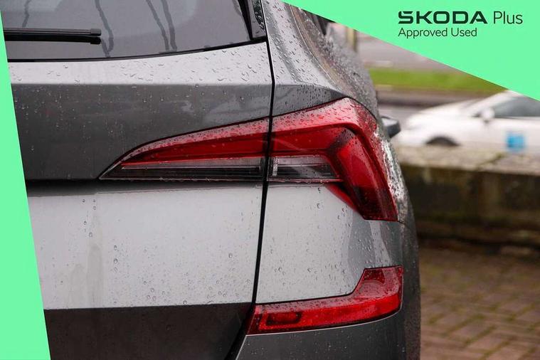 Advanced driver attention and drowsiness monitor, Bluetooth system, E-call, Front assist system, PAS, Rear parking sensors, Rear view camera, Service indicator, Speed limiter, Traffic sign recognition, Virtual cockpit with 10.25" display, Voice control system, Wireless smartlink, 4 USB C ports, 8 Speakers, 9.2" Skoda navigation display, DAB Digital radio, Auto dimming rear view mirror, Automatic headlight control with coming home and leaving home feature, Body colour bumpers, Body colour door mirrors and handles, Chrome grille surround, Chrome roof rails with chrome window surround, Front and rear electric windows, Heated rear window, LED daytime running lights, LED high beam, LED low beam, LED third brake light, Light sensors, Privacy glass, Rear side wing doors, Rear wiper, Ticket holder inside windscreen, 12V socket in luggage compartment, 3 seat bench in 2nd row, Accent black door inserts, Ambient lighting in white/red, Cargo elements, Chrome inner door handles, Copper hotstamping, Driver and passenger sun visors with vanity mirror, Dual zone climate control, Front and rear roof lights, Front centre armrest, Front head restraints, Glove compartment with illumination, Height adjustable driver seat, Height adjustable front passenger seat, Ice scraper, Inner circulation control with pollen filter, ISOFIX on front passenger seat, Isofix preparation for back seats, Leather gearknob and handbrake lever, Lodge cloth upholstery, Manual lumbar support for front seats, Net package and top tether hooks in boot space, Net under rear shelf, Overhead glasses storage compartment, Pocket on the back of both front seats include mobile phone pockets, Rake/reach adjustable steering wheel, Reading lights, Rear centre armrests, Single front passenger seat, Suedia grey decor inserts, Textile floor mats, Third rear headrest, Top tether for front passenger seat, Umbrella in driver's door, Convenience pack - Kamiq, 3x3 point rear seatbelts, Airbags - driver and front passenger, Disc brakes, ESP, Extended and predictive pedestrian/cyclist protection, Front passenger airbag deactivation switch, Front side airbags with curtain airbags, Hill hold control, Manual leather parking brake, Manual rear child locks, One tone horn, Seatbelt reminder for driver an co-driver, Traction control, Tyre pressure monitor, Anti-theft alarm system with interior monitoring, backup horn, towing protection and remote central locking with SAFE system, Anti-theft wheel bolts, Electronic engine immobilizer,
