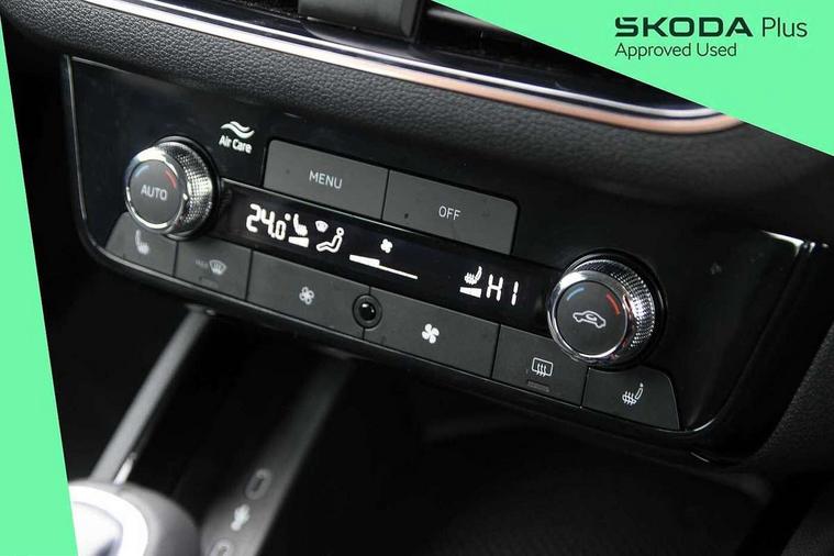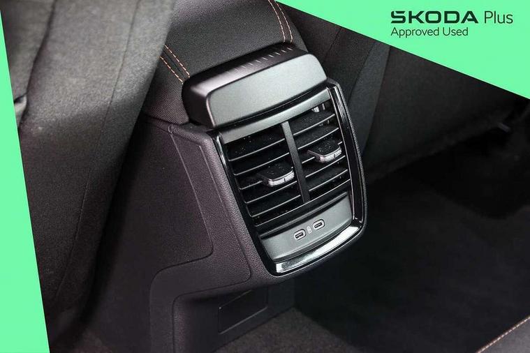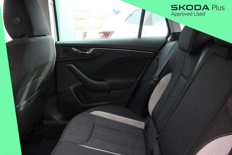 Advanced driver attention and drowsiness monitor, Bluetooth, e-Call (emergency call), Front assist system, PAS, Rear parking sensors, Rear view camera, Speed limiter, Tailgate, Traffic sign recognition, Virtual Cockpit - 10.25" digital display, Voice control system, Wireless smartlink, 4 USB C ports, 8 Speakers, 9.2" Skoda navigation display, DAB radio, Auto dimming rear view mirror, Automatic headlight control with manual coming and leaving home feature, Automatic intermittent wipers, Body colour bumpers, Body colour door mirrors and handles, Chrome moulding around grille, Chrome window frames, Front and rear electric windows, Heated rear window, LED 3rd brake light, LED daytime running lights, LED high beam, LED low beam, Light sensors, Privacy glass, Rear LED fog light, Rear side wing doors, Rear wiper, Tinted windows, Unique dark chrome design logo on alloy wheels, 12V socket in luggage compartment, 3 seat bench in 2nd row, Ambient lighting in white/red, Black / Copper armrest stitching, Cargo elements, Chrome inner door handles, Copper hotstamping, Door inserts in accent black, Driver and passenger sun visors with vanity mirror, Dual zone climate control, Front and rear roof lights, Front centre armrest, Front head restraints, Glasses storage in roof liner, Height adjustable driver seat, Height adjustable passenger seat, Ice scraper, Illuminated glove compartment, Inner circulation control with pollen filter, ISOFIX for front passenger seat, Isofix preparation for back seats, Leather gearknob and handbrake lever, Lodge cloth upholstery, Luggage net under rear parcel shelf, Manual lumbar support for front seats, Net package and top tether hooks in boot space, Pocket on the back of both front seats, incl. mobile phone pockets, Rear centre armrest, Single front passenger seat, Skoda lettering on steering wheel, Textile floor mats, Third rear headrest, Ticket holder, Top tether for front passenger seat, Umbrella in driver's door, Convenience pack without rear camera - Scala, 3x3 point rear seatbelts, ABS, Child locks, Curtain airbags and front side airbags, Disc brakes, Driver and front passenger airbags, ESP, Hill hold control, Manual leather parking brake, One tone horn, Passenger airbag switch off function, Seatbelt reminder for driver and front passenger, Tyre pressure monitoring system, Anti theft alarm system with interior monitoring, backup horn and towing protection, Anti-theft wheel bolts, Remote central locking with 2 remote folding keys, SAFE function for remote central locking, Decorative inserts,