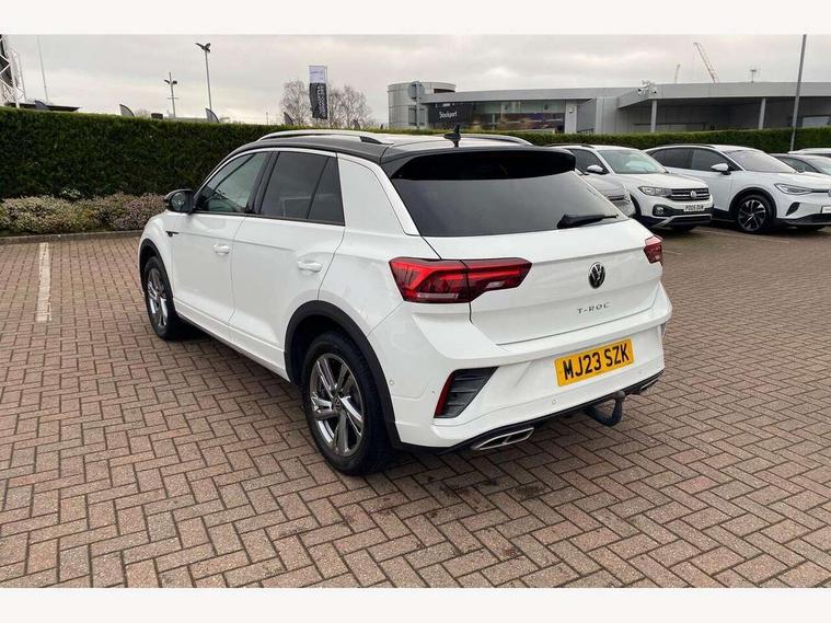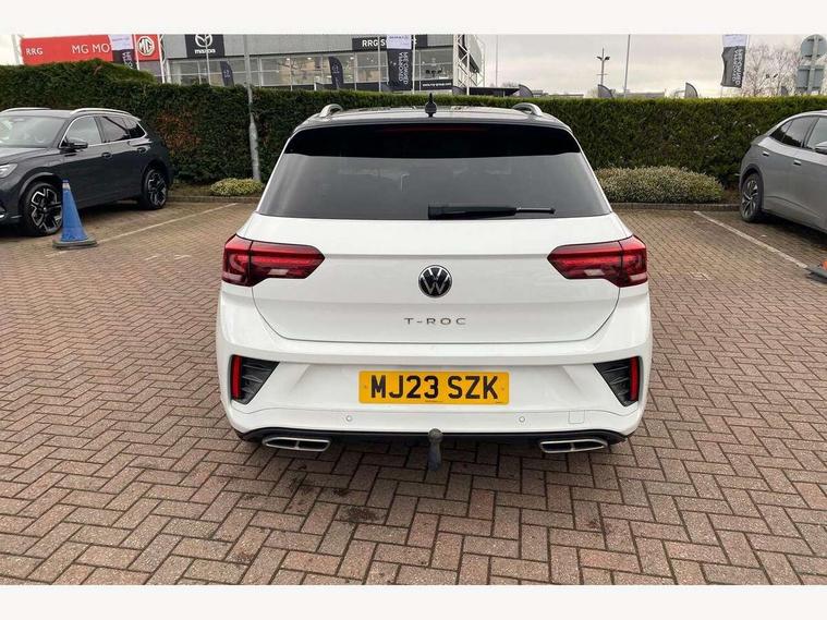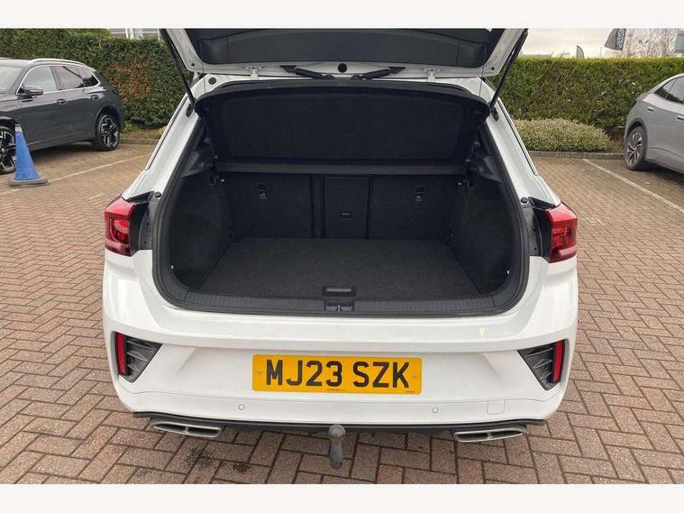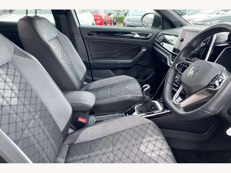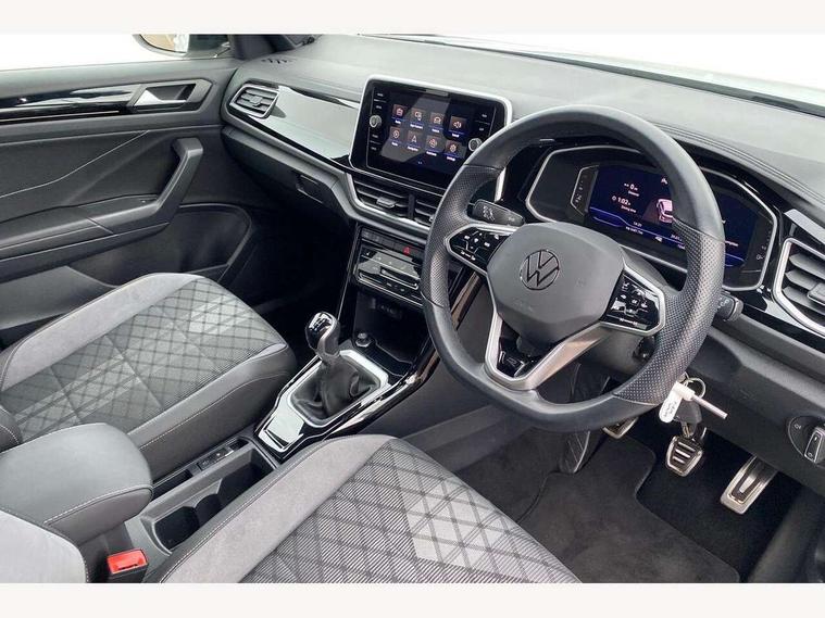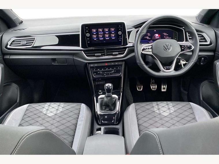 10.25" Digital cockpit pro, Bluetooth mobile phone interface, Driver alert system with fatigue detection, Driver tips and journey analysis, Emergency call service, Lane keeping system Lane Assist, Modified key software - reduce switch off time for key status change to Long no motion, Online services, Park assist including front and rear parking sensors, Service interval indicator, Tailgate/trunk lid release from outside, Think blue trainer driver tips and journey analysis, Warning sound and light for front seatbelts unfastened, Wireless app connect, Battery regeneration during braking, Start/stop function with battery regeneration, Diversity antenna for FM reception, Front and rear 6 speakers, Music playback - MP3, WMA and AAC files, Premium USB cable in choice of either Apple or Android smartphone compatibility, SD card slot, Simultaneous pairing of 2 compatible mobile devices, Title and cover art display, We Connect and We Connect Plus functionality, 3rd brake light, Auto dimming interior rear view mirror, Automatic hazard lights activation under emergency braking, Automatic headlight control with LED separate daytime running lights with coming/leaving home function, Extended roof spoiler, Exterior mirrors aspherical on driver side, convex on front passenger side, External USB type C socket and charging sockets, Front windscreen wiper with intermittent wipe and 4 position delay, Heated rear window, LED Plus headlamps, LED rear combination lamps, LED rear number plate lights, LED tail lamp rear comination lamps, Power windows with comfort operation and circuit breaker, R-Line design body coloured bumpers, Rain sensor, Rear exhaust tailpipe, Rear fog light on one side and reversing lights on both sides, Rear side wing doors, Rear wash/wipe with intermittent wipe setting, Remote electrically foldable door mirrors, puddle lights and reverse activated passenger's door mirror, 12V power socket in centre console, 3 rear head restraints, 3 seat bench in 2nd row, 4 load lashing points in luggage compartment, Air care climatronic air conditoning system with active combination filter and 2-zone temperature control, Black roof lining, Chrome plated radiator grille inserts, air vent surrounds and light switch surrounds, Door and side trim panel with leatherette insert, Drawer under drivers seat, Front + rear carpet mats, Front centre armrest, Front cupholders x 2, Front footwell illumination, Front reading light, Front scuff plates with R logo, Instrument lighting, white adjustable panel illumination, Interior ambient lighting and surround lighting, Interior light delay, Isofix child seat preparation, Leather gearshift handle, Load-through provision with cup holder when folded down ('Unsplit rear seat bench, split folding backrest, with centre armrest), Luggage compartment lighting, Single front passenger seat, Stainless steel pedals, Storage compartment in left and right luggage area, Storage compartment in rear doors, Storage compartments in driver and front passenger doors, Sunvisors with illuminated vanity mirrors, Variable boot floor, height adjustable and removable, Driver assistance pack without proactive passenger protection - T-Roc, 3 point height adj front seatbelts + pretensioners, 3 point seatbelts in outer rear with ECE label, ABS, Child locks on rear doors, Driver and front passenger airbag with front passenger airbag deactivation, Driver and front passenger safety-optimised head restraints, Drivers seatbelt reminder, Electronic parking brake, Electronic Stability Control (ESC) inc EDL (Electronic Differential Lock) and ASR (Traction Control), Front and rear passengers curtain airbag system including front side airbags, Front assist with city emergency braking and pedestrian monitoring, Front seat side impact airbags, Hill start assist, Predictive pedestrian protection, Rear disc brakes, Single tone horn, Tyre pressure loss indicator, Volkswagen roadside assistance, Alarm with interior protection, Anti-theft alarm system with interior monitoring, backup horn, and towing protection, Remote central locking with SAFELOCK, radio remote control with 2 remote control folding keys, Trims for alloy wheels,