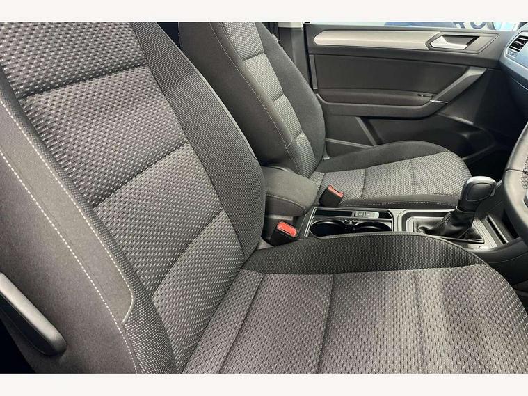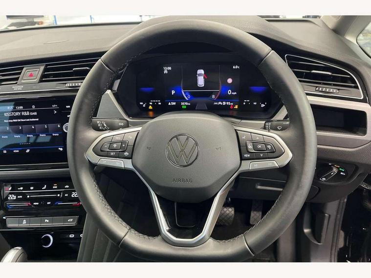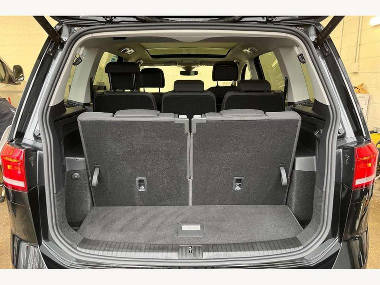 Adaptive cruise control, Audible lights on warning, Discover media navigation touchscreen navigation/radio system with streaming and internet, Driver alert system, Driver profile selection, Dynamic road sign display, Electric tailgate, Electronic odometer, Emergency services call system, Extended, crash-active and proactive Pedestrian and cyclist monitoring, External temperature gauge, Front parking sensors, Lane change system side assist and rear traffic alert, Lane keep assist, Misfuelling protection device, Mobile pairing with SMS function, Mobile phone interface with inductive charging, Rear view camera displayed via vehicles audio system display, Rev counter with fuel gauge, Side scan, Speed limiter, Speed sensitive power steering, Stop/start system, Think blue trainer driver tips and journey analysis, Trip and service interval display, We connect' and 'We connect plus' functionality, Petrol Particulate Filter, Rear stabiliser bar, XDS electronic differential lock, 4x20 watt output, 8 Speakers, Audio Connectivity System, DAB Digital radio, External USB-C data socket with increased charging performance - 2 USB sockets 45W, MP3/WMA compatability, SD card slot, Title and cover art display, USB connection, Aerial integrated into side window, Auto dimming door mirrors, on driver side, surround lighting and front passenger side mirror lowering function, Auto dimming rear view mirror, Automatic coming/leaving home lighting function, Body colour bumpers, Body colour door handles, Body colour door mirrors with integral indicators, Door mirrors with memory function, Dusk sensor + auto driving lights, Electric folding door mirrors, Electric heated + adjustable door mirrors, Electric, glass sliding/tilting panoramic sunroof including integrated roller blind and LED lighting around aperture, Front and rear electric windows, Fully galvanised body, Gloss black finish B pillar, Green tinted heat insulating glass, High level third brake light, Rain sensor, Rear fog lights, Rear side wing doors, Rear tinted glass from B-pillar backwards approx 65% tinted, Rear wash/wipe with intermittent wipe setting, Removable engine badge, Silver roof rails, Tailgate wiper- reverse gear activation, Twin chrome exhaust tailpipes, Volkswagen roundel, Windscreen wipers intermittent wipe, 12V power point for Row 2, 12V socket in luggage compartment, 2 individual fold flat 3rd row seats, 2 three point seatbelts in 3rd row, 2nd row centre armrest, 2nd row centre seat converts into table, 3 single slide/fold/removable 2nd row seats, 3 spoke steering wheel, 3x3 point seatbelts on 2nd row with height adjust on outer seats, 4 boot load lashing points, 4 way adjustable front head restraints, 5 headrests, Activated charcoal canister for intensified evaporation system, Air care climatronic 3 zone air conditioning system with rear air conditioning control panel, Chrome plated radiator grille inserts, air vent surrounds and light switch surrounds, Driver and front passenger under seat drawer, Dust/pollen filters, Foldable front passenger seat backrest with load through function, Front and rear reading lights X 2, Front centre armrest with storage compartment, Front comfort seats with lumbar support, Front cupholders x 2, Front passenger seat height adjust, Front seat storage pockets, Front seatback folding tables, Height adjustable driver's seat, Height/reach adjust steering wheel, Illuminated glovebox, Instrument lighting white adjustable panel illumination with red night time illumination, Interior light with delay, Isofix on 2nd row outer seats, Isofix on 3rd row seats, Large storage compartment in roof console, Lasano cloth upholstery, Leather multifunction steering wheel with gear knob, Leatherette on rear of front seats, Low tunnel 2nd row seat, Luggage compartment lighting, Media box in dashboard on passenger side, Multi storage in passenger/luggage areas, Multi-function centre console with storage facilities, Retractable luggage cover, Split folding rear seat backrests, Storage bins on all doors, Sun visors with illuminated vanity mirrors, Family Pack - Touran, Winter pack without heated washer jet - Touran, 3 point height adjustable front seatbelts, Auto hold function, Automatic post collision braking system, Door open warning reflectors, Driver/Front Passenger airbags, Drivers knee airbag, EDL + ASR, Electronic parking brake, Energy recovery system, ESC with ABS, First aid kit, Front and rear (row 2) curtain airbags, Front assist with autonomous emergency braking, Front seat side impact airbags, Front seatbelt pretensioners, Front/rear disc brakes, Hill hold control, Hydraulic Brake Assist (HBA), Loose wheel warning function, Manual passenger airbag deactivation function, Pre crash preventive occupant protection, Proactive passenger protection system with front and side assist, Rear child proof door locks, Road sign recognition, Seatbelt warning lamp and buzzer, Traction control, Two tone horn, Warning triangle, Alarm with remote central locking and interior protection, Electronic engine immobiliser, Keyless Access Keyless locking and starting system with SAFELOCK, New brushed design decorative inserts in dash and front doors, 17" Salvador alloy wheels with anti-theft wheel bolts, 215/55 R17 self sealing tyres with low rolling resistance,