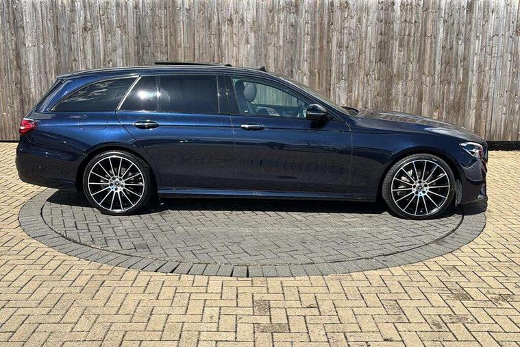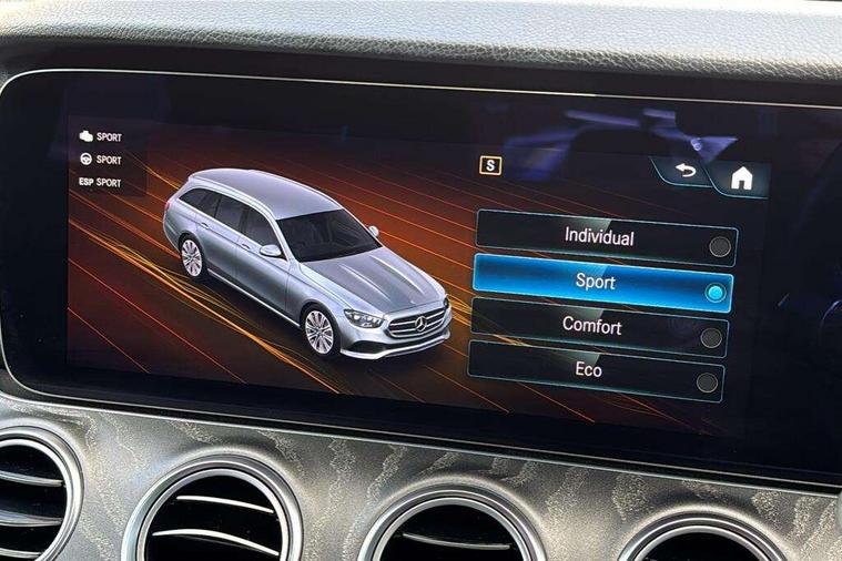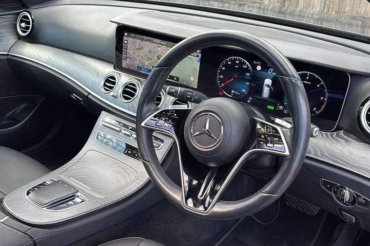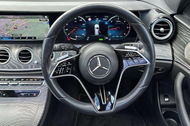 Attention assist, Brake wear warning display, Cockpit display 10.25" widescreen digital instrument cluster, Direct steer speed sensitive steering, DYNAMIC SELECT with a choice of driving modes (ECO, Comfort, Sport, Sport+ and Individual), Easy-pack tailgate - Powered opening/closing automatically, ECO start/stop function, Emergency call service, High resolution 10.25" multimedia colour display, MBUX voice control activated by keywords "Hey Mercedes", Mercedes connect me, Outside temperature display, Remote boot release, Service indicator (ASSYST), Smartphone integration via Android Auto/Apple CarPlay, Media Interface, USB and Bluetooth interface, Status display for rear seat belts in instrument cluster, Touchpad with controller, Traffic sign assist, Trip computer in multifunction display showing current fuel consumption, Wireless charging, 25 litre AdBlue tank, 66 litre fuel tank, 9G TRONIC 9 speed automatic transmission, Agility control sports suspension with selective damping system and lowered by 15mm, Diesel particulate filter, Incorrect fuelling protection, Rear air suspension with level control, 2 USB ports in centre console, 2 USB ports in the rear, Burmester surround sound system with 13 speakers and a 9 channel amplifier with total output of 590 watts, MBUX multimedia system with DAB digital radio and touchpad including satellite navigation, 3rd brake light, Adaptive brake lights, Aerial integrated in rear window, AMG bodystyling front and rear aprons and side sill panels, Chrome roof rails, Electric windows with one touch opening/closing and obstruction sensors, Electrically adjustable and heated door mirrors, Front apron in high gloss black, High gloss black exterior mirror housing, High gloss black rear bumper with chrome trim, Illuminated front door sill panels with Mercedes-Benz lettering, LED High Performance headlamps including integral LED daytime running lamps, LED rear lights, Panoramic electric glass sunroof, Privacy glass Includes rear side windows and rear windscreen, Radiator grille with integral star and 2 louvres in high gloss black, Rain sensor with automatic headlight activation, Rear side wing doors, Rear wiper, Tail lights, Top surround of side windows in polished aluminium, Visible twin pipe exhaust system integrated into bumper, Waistline trim strip in high gloss black, 3 seat bench in 2nd row, 3 spoke multifunction flat bottom AMG steering wheel with chrome inserts and touch control buttons, trimmed in black nappa leather, 40:20:40 split folding rear bench seat, Artico man-made leather upper dashboard and beltlines with contrast stitching, Automatic child seat recognition sensor, Black door pins, Black roof lining, Central stowage compartment with 12 V socket in centre console, USB socket for use with Android Auto and Apple CarPlay, Courtesy lights in rear grab handles with reading light functionality, Floor mats with AMG lettering, Four way partially front electric seat adjustment, Front centre armrest with stowage compartment, Glasses compartment in overhead control panel, Glove compartment - lockable, air conditioned and illuminated, Head restraints for driver and front passenger (four-way adjustability) and in rear (two-way), Heated front seats, Interior lighting - 64 colour Ambient lighting, Leather upholstery, Seat occupancy sensor for front passenger seat, Single front passenger seat, Sports pedals in brushed stainless steel with black rubber studs, Steering column electrically adjustable for height and reach, Steering wheel multifunction with gearshift paddles, Steering wheel touch control buttons for audio and onboard settings, Sunvisors with illuminated vanity mirrors, THERMOTRONIC automatic climate control system with 3 climate zones, Mirror pack - E Class, Parking package including 360 degree camera - E Class, Seat comfort pack - E Class, Stowage pack - E Class Estate, 3x3 point rear seatbelts, Active bonnet pedestrian safety measure which detects an impact and raises bonnet, Adaptive brake system with HOLD function and brake drying in the wet, Airbags - sidebag for driver and front passenger with combined thorax/pelvis bag, Anti-lock braking system (ABS), Childproof locks manually operated for rear doors and electrically operated for rear power windows, Driver and adaptive front passenger airbags, Drivers knee airbag, Electronic parking brake, Hill start assist, ISOFIX child seat attachment points two outer rear seats, Perforated brake discs with Mercedes Benz lettering, Pre-Safe anticipatory safety system, Tyre pressure monitoring system, Warning triangle and first aid kit, Window airbags, Alarm system/interior protection/immobiliser, Central locking with interior switch, automatic locking and crash sensor with emergency opening function, Chrome surround electric key, Keyless entry go starting function, Grey open pore ash wood trim and centre console in grey open pored ash wood, 20" AMG multi spoke light alloy wheels painted in high gloss black with high sheen finsih, Summer tyres, TIREFIT with tyre inflation compressor,