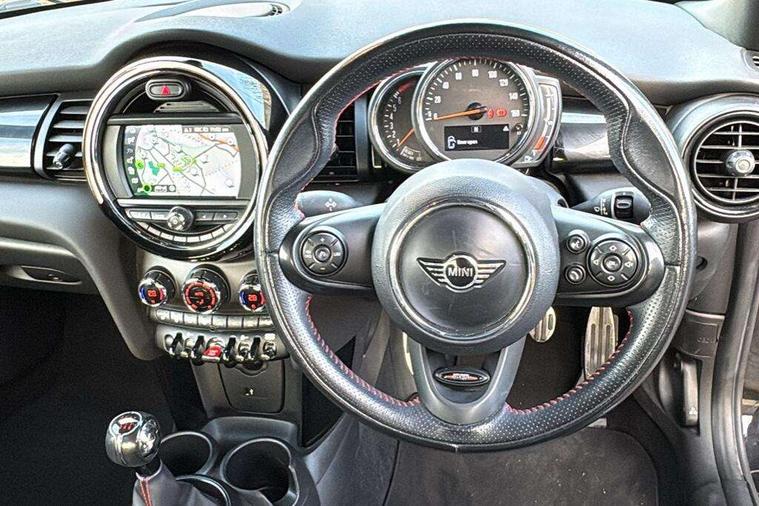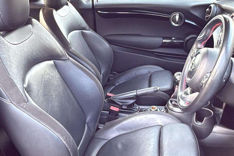 Acoustic seat-belt warning, Basic bluetooth function with USB audio, Brake fluid level warning light, Brake pad wear indicator warning light, DTC - Dynamic traction control, Exterior temperature gauge, Intelligent emergency call, MINI TeleServices, Oil level indicator, On board computer, Personal Profile, Service interval indicator, Servotronic PAS, Stop/start button, Electronic differential lock, 6.5" touchscreen, Auxiliary input socket, DAB digital radio module, Anti dazzle mirror, Anti trapping/one touch open close front windows, Body colour scoop integrated into engine- compartment lid, Body coloured bumpers, Chrome bezels around rear lights and headlights, Chrome door handles, Chrome plated fuel cap, Chrome plated radiator grille, Electric front windows, Electrically adjustable door mirrors, Follow me home headlights, Heated door mirrors, Heated rear window with auto timer, Heated windscreen washer jets, High gloss black tailgate handle, Honeycomb radiator grille, LED fog lights, LED rear lights, Metal look door sill finishers, Twin chromed exhaust pipes, White indicator lights, 2 rear head restraints, 4 boot load lashing points, 50/50 split folding rear seats, 6-way manually adjustable driver's seat, Active carbon filter, Auxiliary socket in centre console storage compartment, Centre console storage, Driver/passenger sunvisors and vanity mirrors, Easy entry seats, Front and rear cupholders, Front head restraints, Front sports seats with front seat backrest storage nets, Gear/selector and handbrake in artificial leather, Glovebox, Internal chrome door handles, Isofix child seat preparation, Luggage compartment lighting, Multifunction steering wheel, Reach + rake adjustable steering column, Stainless steel pedals with rubber inserts, Storage compartments in doors, Toolkit in luggage compartment, 3 point seatbelts, ABS/EBD, ASC+T, CBC - (Cornering brake control), Crash Sensor - activates hazard/interior lighting + unlocks doors, Driver and passenger airbags, Driver/front passenger side airbags, DSC - Dynamic Stability Control, Fuel cut off safety device, Head airbags, Hill start assist, Passenger airbag deactivation system, Seatbelt pretensioners, Two tone horn, Tyre pressure warning, Drive away door locking, Keyless Start, Locking wheel bolts, Remote central locking/doors+fuel cap+tailgate, Second remote key, Thatcham category 1 alarm + immobiliser,