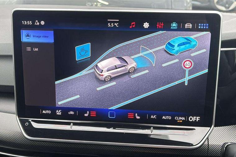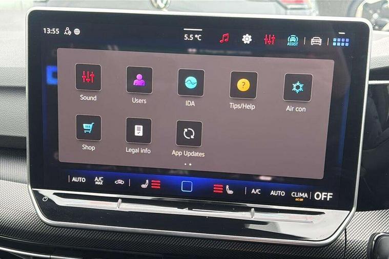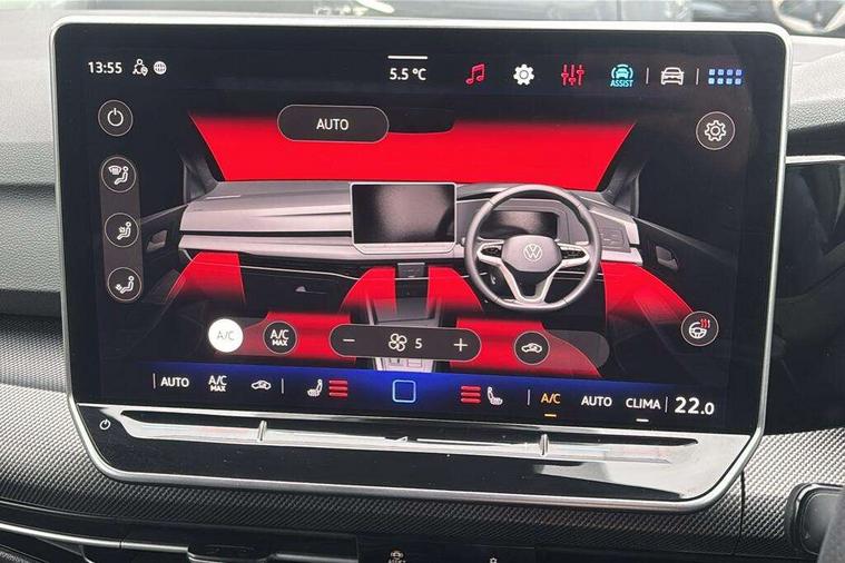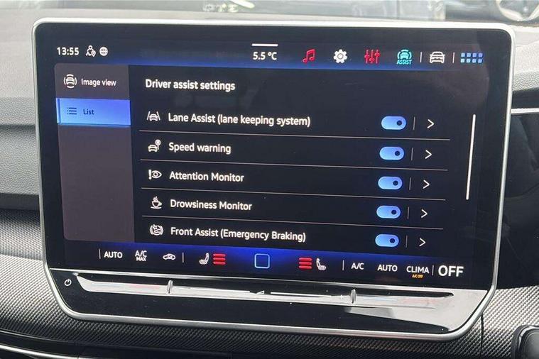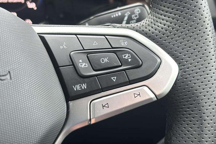 Activated carbon canister, Adaptive cruise control (ACC), Advanced driver attention and drowsiness monitor, Dynamic road sign display, Dynamic steering, E-Sim card for online connectivity, eCall emergency call system, Multi-color Digital cockpit pro, selection of different info profile possible, Multifunction front facing camera for distance control, Navigation system, Oncoming vehicle braking when turning including swerve support, Speed limiter, Speedo, rev counter, electronic odometer, trip, service interval display, exterior temperature and fuel gauge, Traffic jam assist, Voice enhancer and voice control, Warning signal and warning light for front and rear seatbelts not fastened, We connect plus preparation, We connect preparation, Wireless app connect, Hybrid propulsion system, Petrol Particulate Filter, Start-stop system with battery regeneration (recuperation - energy recovery during braking), XDS electronic differential lock for improved traction and handling, 2 USB C ports in front, 2 USB charging sockets on the centre console in the rear charging capacity upto 45W, Digital radio reception (DAB), Diversity antenna for FM reception, Gaming platform via car app, Infotainment system with 12.9" display, Mobile phone interface with inductive charging feature, 3rd brake light, Automatic headlamp activation with Coming home and Leaving home feature, Body colored bumpers in R-Line style, Body colour door handles, Exterior mirrors convex on the left and aspherical on the right, Front and rear electric windows, Heat insulating windshield made of laminated glass, LED separate daytime running light, Rear exhaust tailpipe, Rear fog light on one side and reversing lights on both sides, Rear side wing doors, Rear windscreen washer and wiper with interval delay, Remote electrically foldable door mirrors, puddle lights and reverse activated passenger's door mirror, Welcome light with surround lighting, 12V socket in front centre console, 12V socket in luggage compartment, 3 rear head restraints, 3 seat bench in 2nd row, Ambient lighting with 30 colour including LED light unit in front footwell with selectable light colour, Black roof lining, Brushed stainless steel pedals, Chrome plated radiator grille inserts, air vent surrounds and light switch surrounds, Door insert, side trim panel and arm support in leatherette, Front + rear black carpet mats, Front centre armrest, Front seat lumbar support adjuster, Integrated front head restraints, ISOFIX anchors for child seats on outer rear bench seats and on front passanger seat compatible for i-Size, Luggage compartment lighting, Manual height adjustable front passenger seat, Manually height adjustable driver seat, Plastic gear knob, Premium sports seats in front, Rear cupholder and loadthough, Sardegna cloth upholstery with front and outer rear seats Art Velour inner sides of bolsters, Single front passenger seat, Split folding backrest with centre armrest and unsplit rear seat bench, Sun visors with illuminated vanity mirrors, Titanium black instrument panel, 3 point height adj front seatbelts + pretensioners, 3 rear three point seatbelts, ABS, Autonomous emergency braking front assist with pedestrian and cyclist monitoring, Child locks on rear doors, Driver and front passenger airbag with front passenger airbag deactivation, Electronic parking brake with auto hold, ESC (Electronic Stability Control), Extended pedestrian protection measures, Hill start assist, Rear disc brakes, Two tone horn, Tyre pressure loss indicator, Volkswagen roadside assistance, Anti theft wheel bolts, Preparation for alcohol interlock, Decorative inserts carbon grey for dashboard and front door trim panels, Tool kit for tyre mobility set, Tyre mobility kit Includes 12V compressor and tyre sealant,