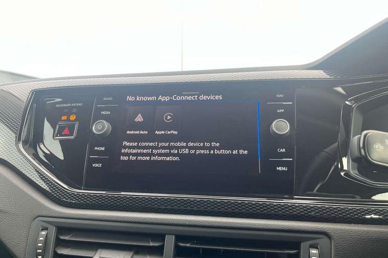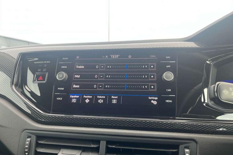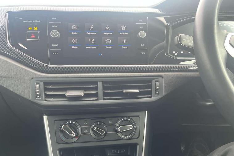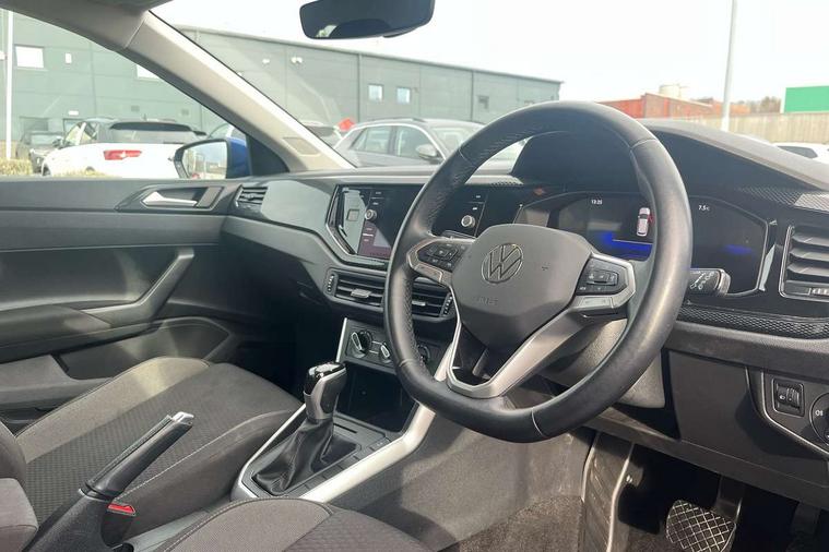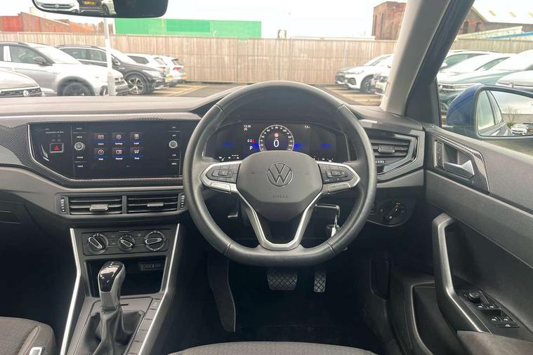 Adaptive cruise control with follow-to-stop and speed limiter, Advanced driver attention and drowsiness monitor, Bluetooth mobile phone interface, Dynamic road sign display, Emergency call service, Multifunction camera, Power assisted speed sensitive steering, Preparation for navigation system with media and internet package, Preparation for We connect and We connect plus, Speedo and rev counter, electronic odometer, trip, service interval display and exterior temperature gauge, Standard rear axle, Travel Assist - Lane keeping system and traffic jam assist, Travel assist including emergency assist, Trip computer, Warning signal and warning light for front and rear seatbelts not fastened, Washer fluid level indicator, Wireless app connect, Front wheel drive, Rear shock absorpion, Start-stop system with battery regeneration (recuperation - energy recovery during braking), DAB Digital radio, Diversity antenna for FM reception, Front and rear 6 speakers, Automatic dimming interior rear view mirror, Automatic headlight control with LED separate daytime running lights with coming/leaving home function, Body colour bumpers with chrome inserts, Body colour door handles, Body colour door mirrors, Electric front windows, Engine badge deletion, Headlight range adjustment, Heat insulating and laminated safety glass windshield, Heat insulating darkened glass in side and rear windows, LED Headlights, LED rear combination lamps, Power folding adjustable/heated exterior mirrors and front passenger exterior mirror lowering function, Rain sensor, Rear electric windows, Rear fog light, Rear side wing doors, Rear windscreen washer and wiper with interval delay, Third brake light, 12V power socket in centre console, 2 front and 2 rear reading lights with switch off delay and dimmer, 2 USB-C ports in the front, 2 USB-C charging sockets on the center console in the rear, 3 rear head restraints, 60/40 split folding rear seat and rear seat bench not split, Ceramique roof lining, Chrome plated radiator grille inserts, air vent surrounds and light switch surrounds, Door and side trim panel, Driver and front passenger seat height adjustment, Driver/passenger sunvisors with illuminated vanity mirrors, Front centre armrest, Front seat backrest storage pockets, Front standard seats, Handbrake lever handle in leather, Hartley/Thomas cloth upholstery, Headliner in recycled material, Isofix child seat preparation easy-fit (for two outer rear seats, and front passenger seat) compatible with I-size, Leather trimmed gear knob, Luggage compartment cover, Luggage compartment lighting, Removable luggage compartment floor, Single front passenger seat, Standard climatic zones, Standard pedal cluster, Three spoke leather wrapped multifunction steering wheel with shifting paddles, Light and vision pack - Polo, 3 point height adj front seatbelts + pretensioners, 3x3 point rear seatbelts, ABS, Driver and front passenger airbag with front passenger airbag deactivation, Drivers and front passengers safety optimised head restraints, ESC (Electronic stability control) + EDL (Electronic Differntial lock) and ASR (Traction control), Extended and predictive pedestrian/ cyclist protection, Front assist with autonomous emergency braking (for Adaptive Cruise Control ACC up to 130 mph), Front curtain and side airbags with center airbag, Front disc brakes, Hill hold control, Manual child lock in rear doors, Rear drum brakes, Single tone horn, Tyre pressure loss indicator, Alarm with interior protection, Anti-theft alarm system with interior monitoring, backup horn, and towing protection, Anti-theft wheel bolts, Electronic engine immobiliser, Lava stone black gloss/matt decorative inserts in dash and front door panels, Low rolling resistance tyres,