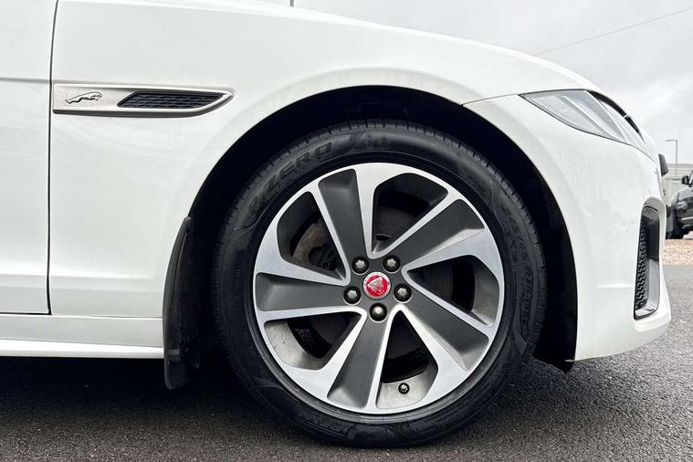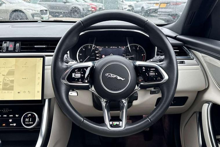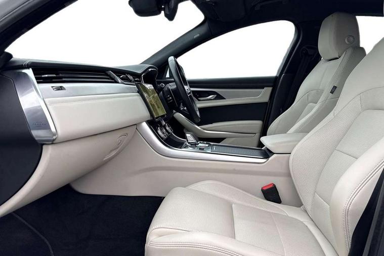 Adaptive cruise control, Android Auto, Apple car play, Bluetooth connectivity, Driver condition monitor, Electric power assisted steering, Emergency call service, Front and rear parking aid, Front animated directional indicators, JaguarDrive control, Lane keep assist includes oncoming vehicle detection and edge detection, Outside temperature gauge, Pivi pro connected navigation system with 11.4" touch screen, Power tailgate/boot lid, Push button starter, Service interval indicator, Speed proportional steering, Traffic sign recognition with adaptive speed limiter, Trip computer, DAB Radio (Digital Audio Broadcasting), Remote app, USB and auxiliary socket, Acoustic windscreen, Automatic headlights, Black lower front bumper hoops, Body colour door handles, Electric heated/power fold memory door mirrors with approach lights and auto dimming driver side, Electric windows with one touch open/close and anti trap, Front bumper's lower chin and rear lower bumper is finished in gloss black, Gloss Black Extended Side Sills, Heat insulated glass, Jaguar script and leaper, LED tail lights, R Dynamic badge, R-Dynamic exterior body styling including gloss black and detailing, Rain sensor windscreen wipers, Rear boot, Rear side wing doors, Third brake light, Trailer stability assist, 12V accessory sockets - front and rear, 2nd row air vents, 3 rear seat head restraints, 3 seat bench in 2nd row, Centre armrest console, Front armrest, Front door and rear door storage space, Interior front door handles with separate locking switches, ISOFIX on outer rear seats, Leather steering wheel, Overhead stowage for sunglasses, Passive front head restraints, Premium carpet mats, R-Dynamic branded leather steering wheel, Rear armrest with twin cupholders, Single front passenger seat, Sunvisors with illuminated vanity mirrors, Twin front cupholders, Online pack with data plan - XF, ABS+EBA, All surface progress control (ASPC), Brake pad warning light, DSC - Dynamic Stability Control, Electronic parking brake, Emergency brake assist, Front airbags with passenger seat occupant detector, Front side airbags, Full length side window curtain airbag, Hill launch assist, Pedestrian contact sensing, Power operated child locks, Seatbelt warning, Three 3 point rear seatbelts, Torque vectoring brake, Traction control, Tyre pressure monitoring system, Immobiliser, Locking wheel nuts, Perimeter alarm, Remote central locking with deadlocks and drive away locking,