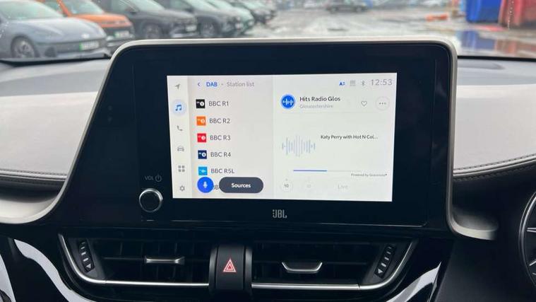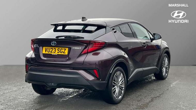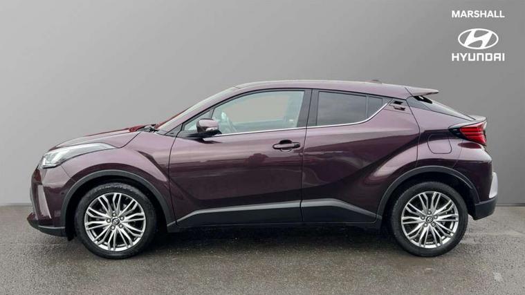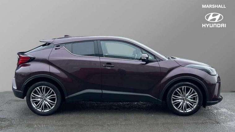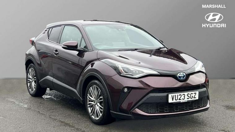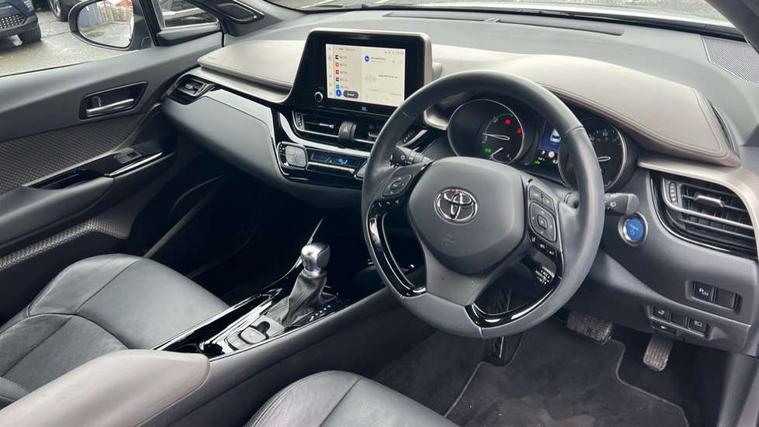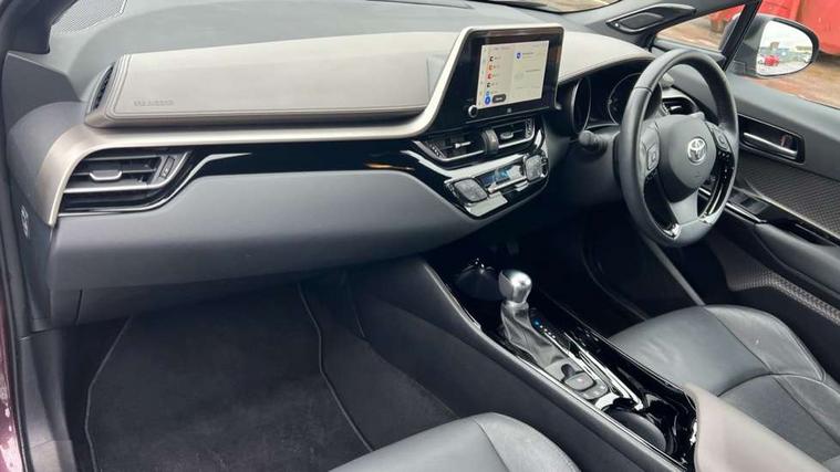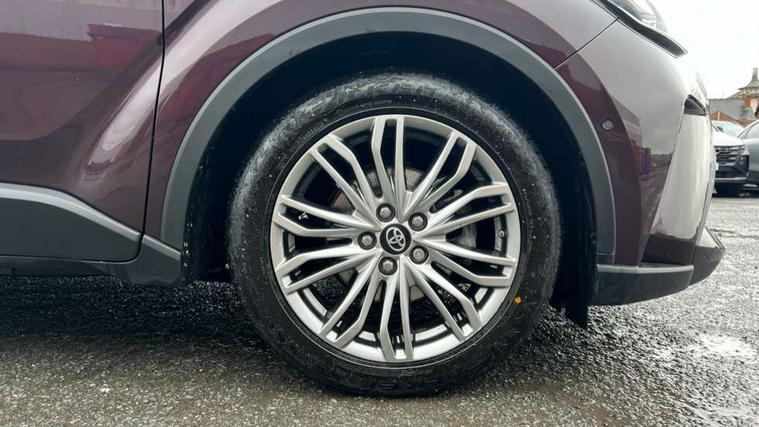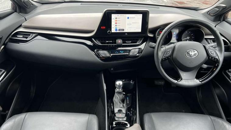 4.2" coloured TFT screen for multi-information display, Adaptive cruise control, Apple car play and Android auto, Bluetooth connectivity, E-call, Electric power steering, Hybrid system indicator, Lane departure alert with steering control, Lane trace assist, Push button tailgate release, Remote boot door release in cabin, Remote boot door release in key, Reversing camera, Road sign assist - RSA, Simple Intelligent parking assist, Smart voice assist, Touch 2 Go navigation system, Trip computer, Voice recognition, Wireless smartphone integration, Vehicle Stability Control (VSC), 6 speakers, AM/FM radio, DAB Radio (Digital Audio Broadcasting), Toyota touch 2 multimedia system with 8" display, USB connector, Wi-fi connectivity, Adaptive front light system, Adaptive LED Headlights, Anti-jam protection on power windows, Auto high beam, Auto up and down function on all power windows, Automatic headlight levelling, Automatic headlights, Automatic headlights cut-off, Black and body coloured rear bumper, Black lower front grille, Black upper front grille, Body colour door handles, Body colour door mirrors, Body colour front spoiler lip, Body coloured front bumper, Boot door release with push button, Electric heated door mirrors, Follow me home headlights, Front and rear power windows, Headlight cut off reminder, Honeycomb lower front grille, LED daytime running lights, LED fog lights, LED front light guide, LED High mounted stop light, LED rear brake lights, LED rear combination lights, Noise reduction layer on front windows and windscreen, Power adjustable door mirrors, Privacy glass, Rain sensor, Rear sequential indicators, Rear side wing doors, Rear spoiler, Rear tailgate, Rear window defogger, Rear window wiper, Shark fin antenna, UV-filter on driver and passenger windows, UV-filter on rear windows, Variable front intermittent wipers, 12v power outlet - front, 3 rear headrests, 3 seat bench in 2nd row, 3 spoke leather steering wheel, 60/40 split folding 2nd row rear seats, Adjustable rear headrests, Adjustable speed limiter switch on steering wheel, Assist grips front and centre pillar, Audio and telephone switches on steering wheel, Black front door assist grips, Blue ambient lighting on front cup holders, Blue ambient lighting on front doors, Boot light, Chrome interior door handles, Driver and front passenger personal light, Driver and front passenger Whiplash Injury Lessening seats, Driver and passenger seatback pockets, Dual zone automatic air conditioning, Floor mats, Front cupholders, Front head restraints, Front sports seats, Glovebox with internal light, Hard tonneau cover, Heated driver and front passenger seats, Heated steering wheel, Hooks for luggage holding net, Humidifying Nanoe air purifier, Illuminated entry system, Isofix attachments on outer rear seats, Leather gearshift, Light on driver sun visor, Light on passenger sun visor, Manual telescopic steering wheel, Manual tilt steering wheel, Microphone on front personal light, Mirror on driver sun visor, Mirror on passenger sun visor, Multimedia switches on steering wheel, Pollen filter, Power adjustable lumbar support on driver seat, Power tilting cushion on driver seat, Shopping bag hooks, Single front passenger seat, Slow opening on lower glovebox, Voice recognition switch on steering wheel, Leather pack - C-HR, Tech with parking sensor pack - C-HR, 16 Disk front wheel brake, 3x3 point rear seatbelts, ABS+EBD+Brake assist, Electronic parking brake, Front and rear seatbelt reminder, Front passenger airbag on/off switch, Hill start assist control (HAC), Pre collision system with pedestrian detection, Pre-tensioners and force limiters, Rear door child safety locks, SRS Airbags - Driver + Front passenger, front side, front and rear curtain and driver's knee airbags, Toyota safety sense, Tyre pressure monitoring system, Tyre pressure warning system, Acoustic vehicle alert system (AVAS), Glass-breaking alarm sensors, Immobiliser, Intrusion alarm, Intrusion sensor, Motion sensor alarm, Power door locks, Power passenger window lock, Remote central locking, Black lower dashboard, Dark brown upper dashboard, Piano black console, Silver deco line on upper dashboard, Tyre repair kit,