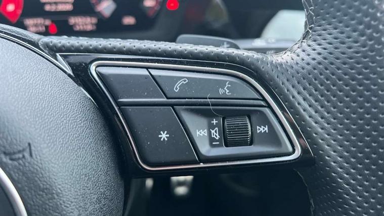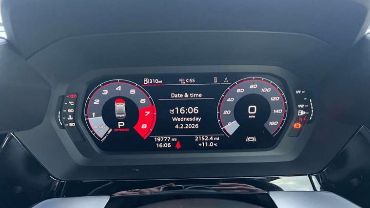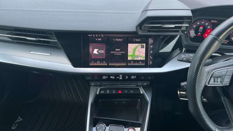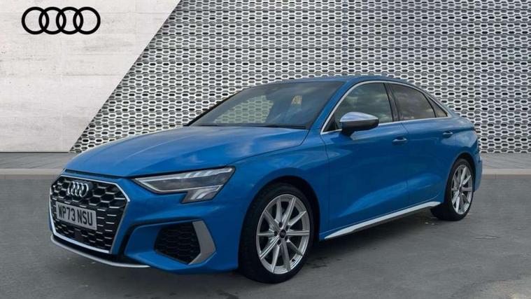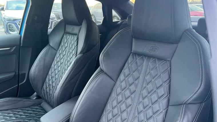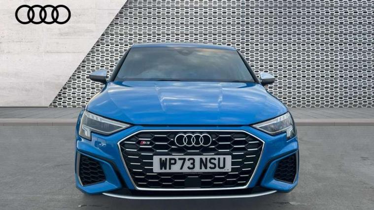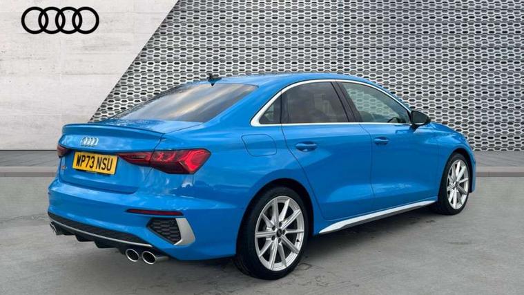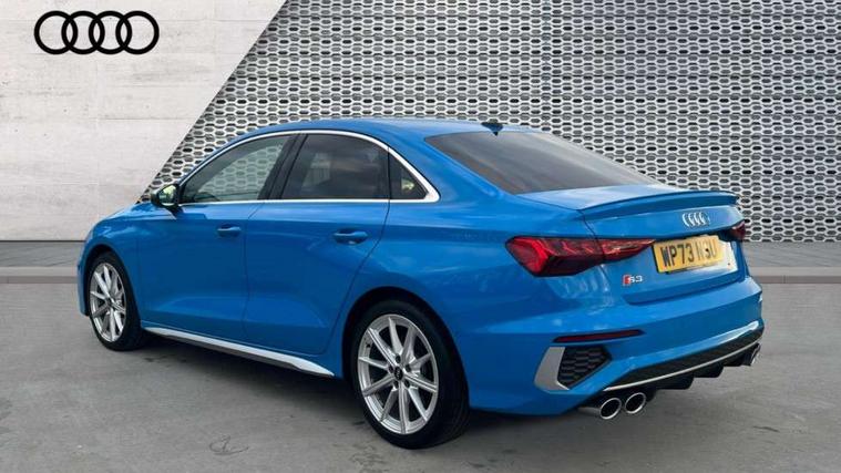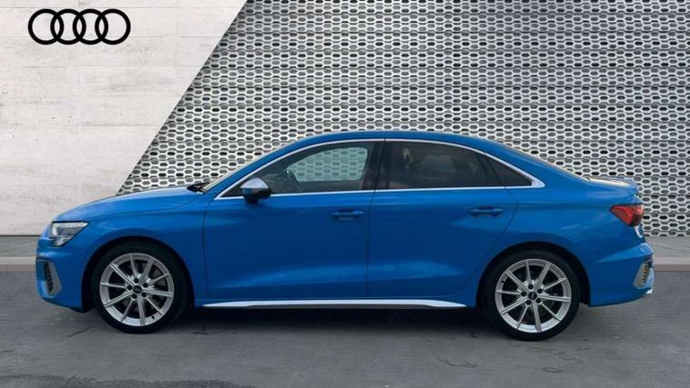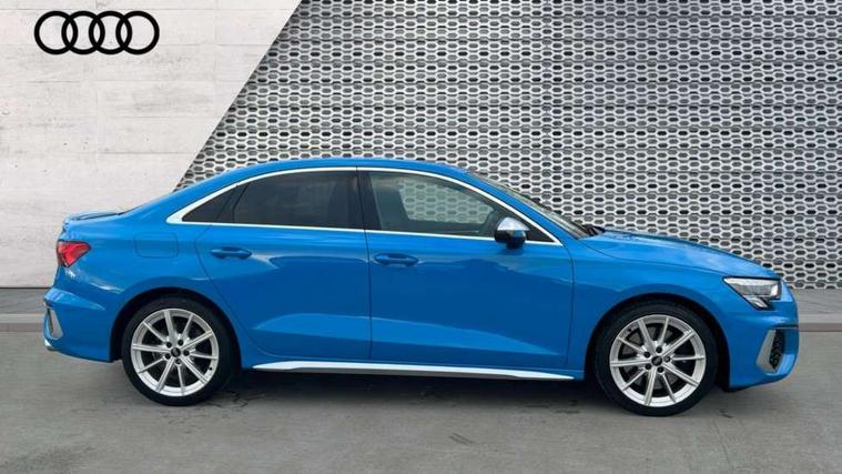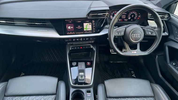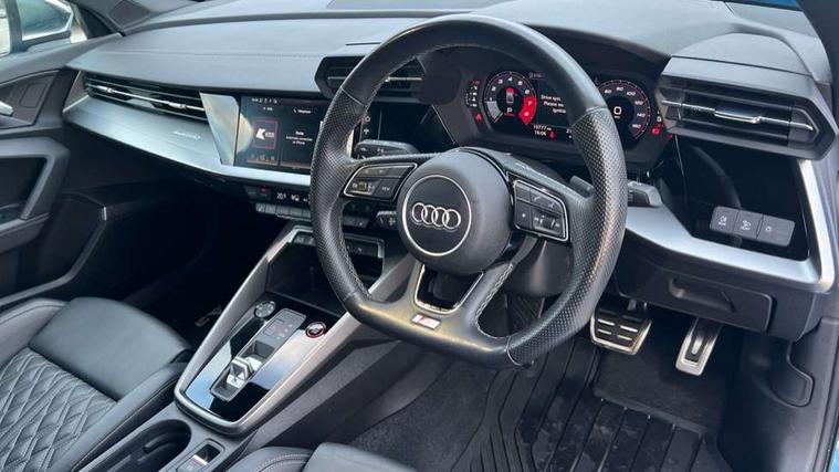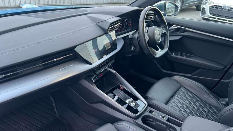 Audi connect emergency call and service, Audi drive select (Auto, Comfort, Dynamic, Efficiency and Individual), Audi smartphone interface, Audi Virtual Cockpit - 10.25" digital and colour instrument cluster, Automatic start/stop system with recuperation, Bluetooth interface, Collision avoidance assistant, Lane departure warning system, MMI Navigation Plus with high resolution 10.1" colour touch screen display, Progressive steering, Service indicator, Voice control system with natural language interaction, Quattro permanent all wheel drive, S sport suspension with spring damper adjustment and lowering by 15mm, 2x USB Type C ports (for charging and data transfer), 6 passive loudspeakers, CD player, DAB Digital radio, 3rd brake light, Acoustic glass windscreen, Audi Beam uses LEDs to project the Audi logo onto the ground as you exit your S3, Auto dimming frameless rear view mirror, Dual branch oval twin tailpipes in chrome plated finish, Electrically adjustable/heated/folding/auto dimming door mirrors with integrated LED indications + kerb view function for passenger side, Exterior mirror with aluminium look housing, Front electric windows, Headlight washers, Illuminated door sills with aluminium inserts at the front with S logo, LED daytime running lights, LED headlights with LED rear lights and dynamic rear indicators, Light and rain sensors, Model and engine designation badges at rear, Privacy glass - dark tinted rear window, rear door and side windows, Rear boot, Rear electric windows, Rear side wing doors, 12V socket and storage compartment in front centre console, 3 seat bench in 2nd row, 40/20/40 split folding rear seat bench with cupholder, Black cloth headlining, Dual zone electronic climate control, Fine Nappa leather upholstery with front sports seats S embossed logo, Front and rear centre armrest in leather, Front and rear headrests, Front/rear floor mats, Heated front seats, Height and reach adjustable steering wheel, Illuminated vanity mirror, Interior lighting - glove compartment light and right hand side, Luggage compartment floor covering, Manual boot compartment lid, Single front passenger seat, Stainless steel pedals and front footrest in black, Body styling design pack - S3, LED interior lighting pack - A3 Saloon, Storage pack - A3/S3 Saloon, 3x3 point rear seat belts, Driver and front passenger airbag with passenger airbag deactivation, Electronic Stabilisation Control (ESC) including ABS, ASR and EDL, First aid kit with warning triangle and 2 safety vests, Front side airbags with head airbags and interaction airbag, Hill hold assist, Pre-sense front with pedestrian and cyclist detection, Seatbelt monitoring, Tyre pressure loss indicator, Anti theft alarm, Anti-theft wheel bolts, Electronically operated child locks, Immobiliser, Remote control central locking, Aluminium air vent surrounds, Aluminium trim elements, Dark spectrum aluminium inlays, accent surfaces in the dashboard and centre console in platinum grey silk effect paint finish,