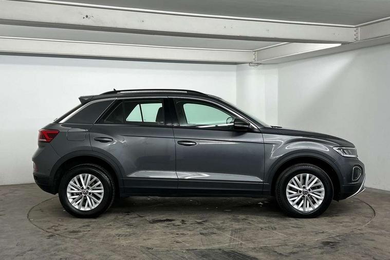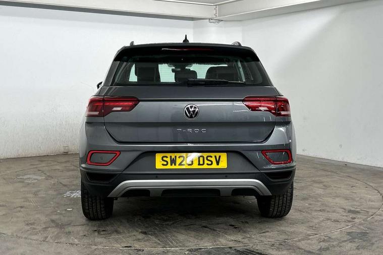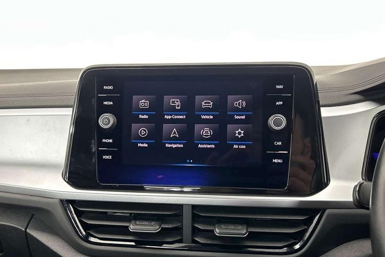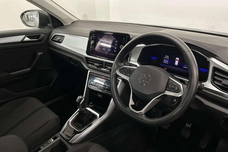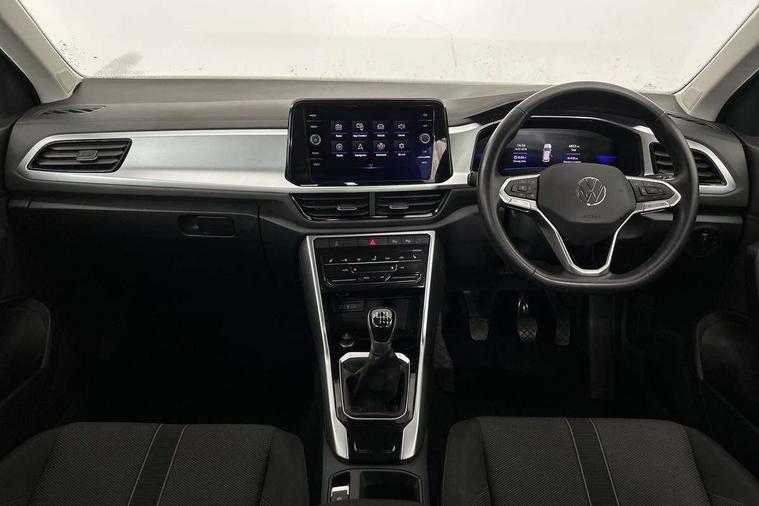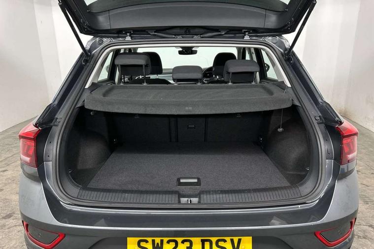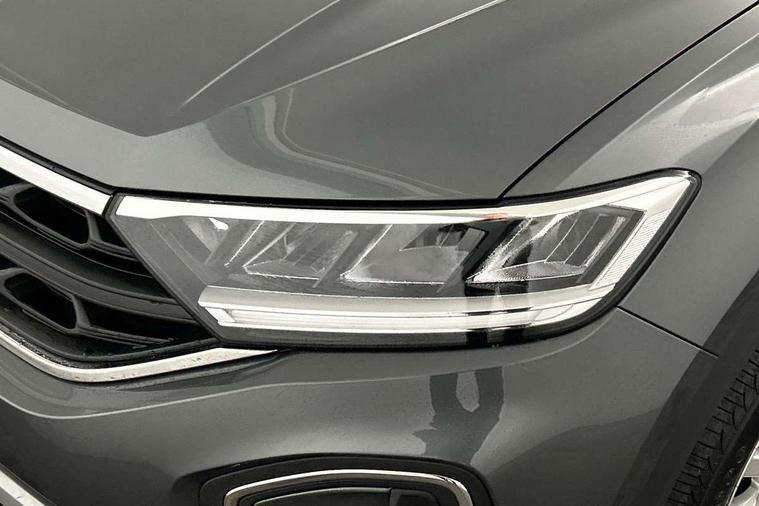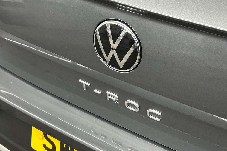 Bluetooth mobile phone interface, Driver alert system with fatigue detection, Driver tips and journey analysis, Emergency call service, Lane keeping system Lane Assist, Modified key software - reduce switch off time for key status change to Long no motion, Online services, Park assist including front and rear parking sensors, Power assisted speed sensitive steering, Service interval indicator, Tailgate/trunk lid release from outside, Think blue trainer driver tips and journey analysis, Warning sound and light for front seatbelts unfastened, Wireless app connect, Battery regeneration during braking, Front shock absorption, Rear shock absorption chassis with increased ride height, Start/stop function with battery regeneration, DAB Digital radio, Diversity antenna for FM reception, Music playback - MP3, WMA and AAC files, Premium USB cable in choice of either Apple or Android smartphone compatibility, SD card slot, Simultaneous pairing of 2 compatible mobile devices, Title and cover art display, We Connect and We Connect Plus functionality, 3rd brake light, Auto dimming interior rear view mirror, Automatic hazard lights activation under emergency braking, Automatic headlight control with LED separate daytime running lights with coming/leaving home function, Black roof rails, Body coloured bumpers and radiator grille with chrome trim and front fog lamps with chrome bezel, Body coloured exterior mirror housings and door handles, Extended roof spoiler, Exterior mirrors aspherical on driver side, convex on front passenger side, External USB type C socket and charging sockets, Front windscreen wiper with intermittent wipe and 4 position delay, Heated rear window, LED rear combination lamps, LED rear number plate lights, LED tail lamp rear comination lamps, Power windows with comfort operation and circuit breaker, Rain sensor, Rear exhaust tailpipe, Rear fog light on one side and reversing lights on both sides, Rear side wing doors, Rear wash/wipe with intermittent wipe setting, Remote electrically foldable door mirrors, puddle lights and reverse activated passenger's door mirror, 12V power socket in centre console, 3 rear head restraints, 3 seat bench in 2nd row, 4 load lashing points in luggage compartment, Air care climatronic air conditoning system with active combination filter and 2-zone temperature control, Ambient lighting with mirror logo projection, Cloth upholstery, Door and side trim panel in cloth, Drawer under drivers seat, Driver/front passenger seat height adjustment, Front centre armrest, Front comfort sports seats, Front cupholders x 2, Front reading light, Instrument lighting, white adjustable panel illumination, Interior light delay, Isofix child seat preparation, Leather gearshift handle, Load-through provision with cup holder when folded down ('Unsplit rear seat bench, split folding backrest, with centre armrest), Luggage compartment lighting, Lumbar support for driver's and front passengers seat, Non-folding front passenger seat backrest, Single front passenger seat, Storage compartment in left and right luggage area, Storage compartment in rear doors, Storage compartments in driver and front passenger doors, Sunvisors with illuminated vanity mirrors, Variable boot floor, height adjustable and removable, Driver assistance pack without proactive passenger protection - T-Roc, 3 point height adj front seatbelts + pretensioners, 3 point seatbelts in outer rear with ECE label, ABS, Child locks on rear doors, Driver and front passenger airbag with front passenger airbag deactivation, Driver and front passenger safety-optimised head restraints, Drivers seatbelt reminder, Electronic parking brake, Electronic Stability Control (ESC) inc EDL (Electronic Differential Lock) and ASR (Traction Control), Front and rear passengers curtain airbag system including front side airbags, Front assist with city emergency braking and pedestrian monitoring, Front disc brakes, Front seat side impact airbags, Hill start assist, Predictive pedestrian protection, Rear disc brakes, Single tone horn, Tyre pressure loss indicator, Volkswagen roadside assistance, Alarm with interior protection, Anti-theft alarm system with interior monitoring, backup horn, and towing protection, Remote central locking with SAFELOCK, radio remote control with 2 remote control folding keys, Pewter matt decorative inserts for intrument panel, centre console and door panels at the front, Trims for alloy wheels,