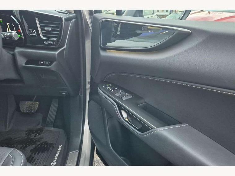 7" colour multi information display, 7" display in instrument binnacle, Blind spot monitoring with rear cross traffic alert, Bluetooth telephone connectivity, Digital speedometer, Drive mode select (Eco, Normal, Sport), Driver monitor camera, eCall emergency system, Electric speed sensitive power steering, Emergency driving stop system, Emergency steering assist, Front cyclist detection, Front motorcycle rider detection daytime, Intelligent parking sensors - 4 front and 4 rear with object and pedestrain detection, Intersection turn assist, Lane change flasher function, Lexus link connect - Cloud based navigation, cloud based voice assistant, always online and 9.8" VGA touchscreen, Parking assist monitor with on screen guard, Pre-crash system, Proactive driving assist (PDA), Push button starter, Reversing camera with back guidelines, Road sign linked speed limiter, Service interval indicator, Tailgate, Tailgate electric lift and close, Tailgate height memory function, Trip meter, Variable ratio rack steering, Wireless Apple CarPlay/Android Auto, Wireless Smartphone charger, 5m mode 3 charging cable, 6.6 kW onboard charger, All Wheel Drive (AWD), Hybrid automatic transmission, Key cylinder protector, Predictive efficient drive, Standard suspension, Vehicle Dynamics Integrated Management (VDIM), Vehicle Stability Control (VSC), 10 speakers, 3 USB Type-C charging ports, DAB Digital radio, Acoustic glass (front side and windshield glass), Active brake lights, Auto dimming interior rear view mirror, Auto levelling headlights, Automatic headlights, Automatic rear flashing hazard lights, Black roof, Body coloured door handles, Body coloured door mirrors, Body coloured roof spoiler, Double hidden exhaust pipes, Electrically adjustable door mirrors, Electrochromatic driver's door mirror, Front and rear one touch power windows, with anti-jam protection, Halogen front indicator lights, Heated and auto folding door mirrors, Hidden exhaust in rear bumper, LED brake lights and rear lights with emergency brake signal, LED daytime running lights, LED front fog lights, LED rear fog lights, Muffler, Optical rear view mirror, Power back door with kick sensor, Privacy glass, Puddle lights, Radiator grille, Rain sensor windscreen wipers, Rear side wing doors, Rear wiper, Roof rails, Shark fin antenna, Silver roof rails, Single bulb LED headlights with auto high beam, Stainless steel scuff plates with LEXUS name, Ultra Violet (UV) and heat insulating tinted glass, 12V accessory port centre console and luggage compartment, 12V socket in front and boot, 12V socket in rear, 2 cupholders in front centre console, 2 way electrical lumbar adjustment for driver, 2 way manually adjustable front headrests, 2 way manually adjustable rear headrests, 2 x fixed shopping bag hooks in boot, 2 x sun visors with vanity mirror and lamp, 3 seat bench in 2nd row, 3 spoke leather trimmed steering wheel, 4 x tie down hooks in the boot, 60/40 split folding rear seat, 8 way driver/passenger electrically adjustable front seats, Adjustable rear seat backrest, Ambient light in 64 colours, Automatic air circulation control, Card holder installed in driver and passengers sun visors, Centre armrest with storage box, Chrome side windows frame moulding, Dual climate control air conditioning system, Electric adjustable steering column, Electronic climate control with nanoeTM, Front and rear textile carpet mats, Front passenger seat, Glove box with key, Heated front seats, Heated steering wheel, Illuminated entry system, LED boot light, LED Glovebox light, LED interior illumination, Luggage cover manually folding, Overhead front console sunglasses holder, Paddle shifts, Rear centre armrest with 2 cupholders, S-Flow technology for climate control, Steering wheel easy entry and exit function, Tahara leather upholstery, Tahara trimmed gearshift knob, USB port (Type - A) front centre console, Whiplash Injury Lessening (WIL) feature (active headrest) for seats, 18" front disc brake, 3 point ELR front seatbelts with pretensioners, 3x3 point rear seat belts, ABS, Acoustic vehicle alerting system, Adjustable seat belt anchor points, Driver 2 stage airbag, Driver/front passenger side airbags, Drivers knee airbag, E-Latch with safe exit assist, EBD + Brake Assist, ECB (Electronically Controlled Brake System), Electronic parking brake, Front and rear curtain shield airbags, Front center airbag, Front passenger seat cushion airbag, Front passenger single stage airbag, Hill assist control, Lexus safety system - dynamic radar cruise control, pre collision system day and night, lane tracing assist, road sign, automatic high beam, OTA, Manual rear child locks, Outer rear seatbelt pretensioners, Passenger airbag cut-off device, Rear wheel brake - 17inch discs, Safety kit, Traction control, Tyre pressure warning with auto location, Anti-theft system with alarm, intrusion sensor, glass breakage sensor, tilt sensor and engine immobiliser, Double door lock, Locking wheel nuts, Smart entry ( front/rear/boot), Smart key, Speed sensitive auto door locking, Ultra Wide Band (UWB) Anti-theft system, VIN Window etching, Wireless door lock, 3D prism black Inlay, Organic inlay, Resin moulding wheel arches, Tyre repair kit,