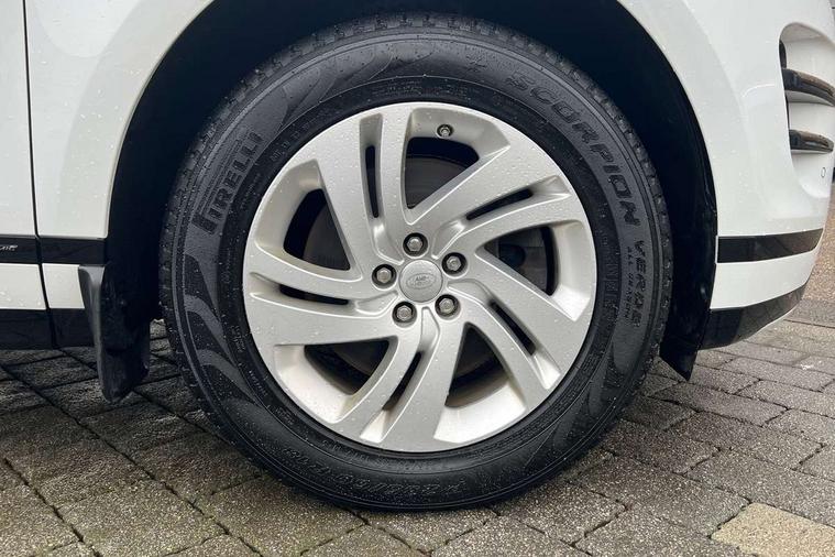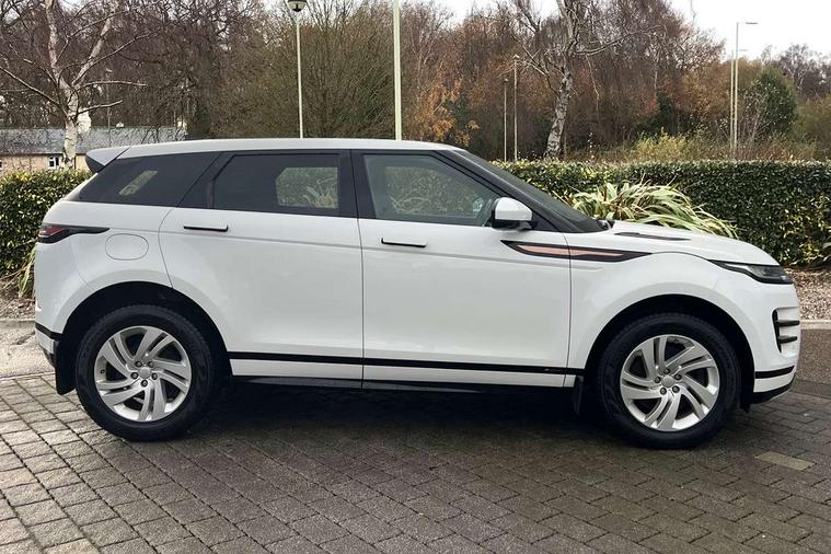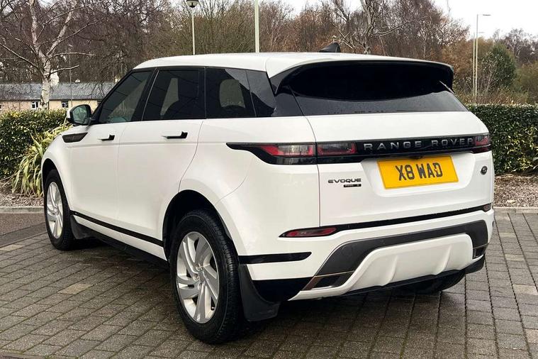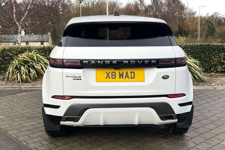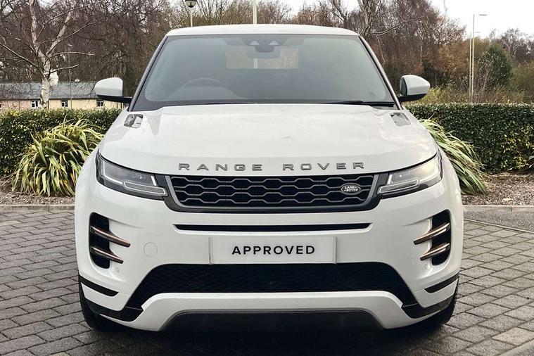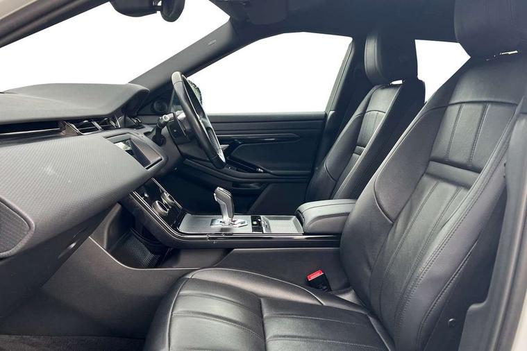 Alarm, Immobiliser, Intrusion sensor, Locking wheel nuts, Digital Audio Broadcast radio-DAB, Steering wheel mounted controls, 3 rear 3 point seatbelts, Anti-lock braking system (ABS), Customer configurable autolock, DSC - Dynamic Stability Control, Electronic brake force distribution, Electronic parking brake, Electronic traction control, Front and rear seatbelt reminder, Hill descent control, Hill launch assist, Low traction launch, Power operated child locks, Roll stability control, Six airbags - Driver and passenger airbags/driver knee airbag/front side airbag and curtain airbags, Torque vectoring brake, Tyre pressure monitoring system, Electric windows with one touch open/close and anti trap, Evoque and R-Dynamic badge, Flush deployable exterior door handles, Heated rear window with timer, Heated washer jets, Heated windscreen, Rain sensing windscreen wipers, Rear fog lights, Shadow atlas bonnet and tailgate script, Tailgate spoiler, 40:20:40 split folding rear seats, Black gearshift paddles, Bright metal pedals, Isofix system on outer rear seats, Overhead lighting console, Overhead stowage for sunglasses, Passive front head restraints, Rear air vents, Rear centre headrest, Sunvisors with illuminated vanity mirrors, Twin front cupholders with cover, Twin sliding front centre armrest, Android Auto, Apple car play, Bluetooth connectivity, Brake pad wear indicator warning light, Driver condition monitor, Electronic power assisted steering (EPAS), InControl remote, Land Rover InControl apps, Lane keep assist, Navigation pro system, Pro services and wifi hotspot, Push button starter, Smart settings, Traffic sign recognition with adaptive speed limiter, Voice control system, All terrain progress control, Efficient Driveline, Large fuel tank, Passive suspension, Terrain Response 2 Auto,