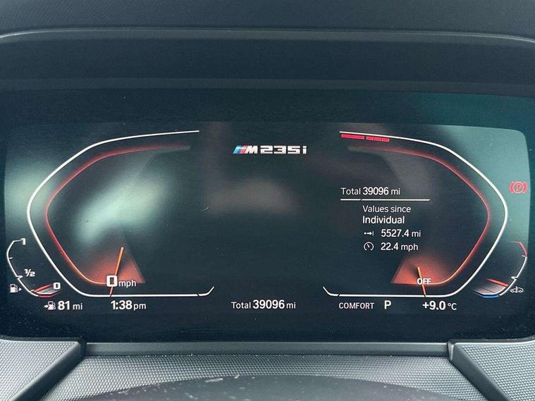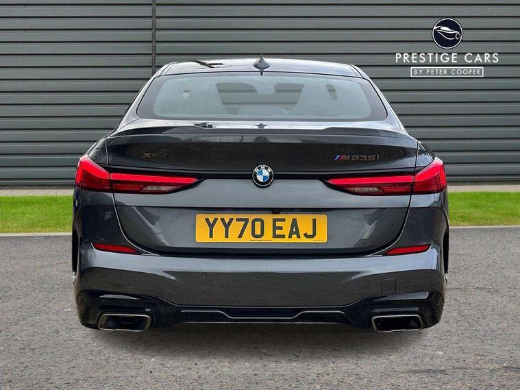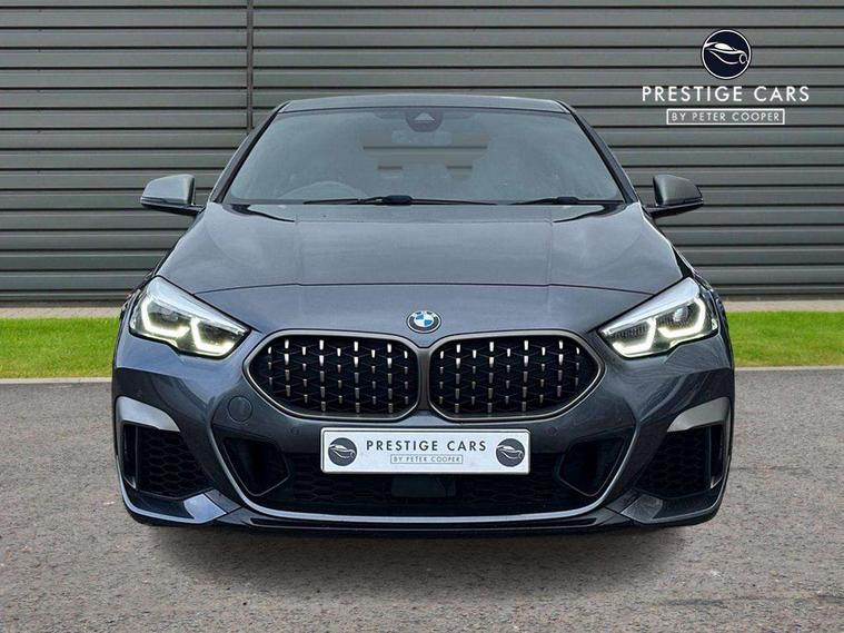 Active guard plus, Attentiveness assist, Auto start-stop, BMW Intelligent Personal Assistant, BMW Live Cockpit Professional with 10.25" high resolution instrument and control display, BMW Online services, BMW operating system with 7.0 mid interface, BMW Teleservices, Check Control warning system for monitoring of lights and door/luggage compartment open warning, Connected eDrive Services, Eco pro mode, Electric Power Steering (EPS) with Servotronic, iDrive controller on centre console, Integrated navigation data with map data via USB +features such as 3D landmarks and micro city models, Integrated owners handbook, Intelligent voice assistant, On board computer - average speed+fuel consumption, service interval, clock/date, odometer/trip meter, outside temperature display and ice warning, Optimum shift indicator, Personal Profile, Pull away assistant, Smartphone integration, Speed limiting function, 2 balance shafts, 8 speed automatic transmission, Anti roll bar front and rear, Double VANOS, Drive performance control with ECO PRO comfort + sport mode, Electronic differential lock, Engine cover with M performance designation, High precision injection, Larger fuel tank capacity (50 litres), Launch control, Performance Control, Petrol Particulate Filter, Twin tube gas filled shock absorbers with degressive characteristic curve, VALVETRONIC engine management, 2x USB Type C ports (for charging and data transfer), 4G LTE Connectivity with hard wied 4G network sim card, Bluetooth audio streaming, BMW Music, Connected music, DAB digital radio, MP3 players and RDS double tuner, Automatic headlight beam throw control, Automatically dimming rear view mirror, Body colour door handles, Direction indicator side lights integrated exterior mirrors, Electric windows - front and rear, with open/close fingertip control and trap release, Exterior mirrors - electrically folding with anti-dazzle, Fading support, Follow me home headlights, Front and rear bumper system with replaceable deformation elements, Front door sill finishers in black plastic with M235i designation, Heated, electrically adjustable exterior mirror aspheric on driver side, convex on passenger side, High gloss black B pillar finish, High gloss shadow line exterior trim, High level third brake light, LED daytime running lights, Lightweight engineering, M performance exhaust system, M rear spoiler, Model designation on right side of tailgate, Preparation for high beam assistant, Rain sensor with automatic headlight activation, Rear fog lights, Reversing light in rear light cluster, Welcome lighting, 12V power socket in centre console, 2 cupholders in front centre console, 3 rear seat head restraints, 3 spoke M sports design leather steering wheel finished in nappa leather with specific M badge, Anthracite floor mats, Anthracite headlining, Automatic two zone climate control air conditioning, Child seat ISOFIX attachment for two outer rear seats and front passenger seat with anchorage points, Conditioned based service, Driver and front passenger seat heating, Front and rear door pockets, Front and rear side armrests integrated into door trim, Front armrest foldable with integrated storage compartment, Front centre interior light over interior mirror and rear centre automatic interior light when door is opened/ignition switched off or via remote key, Front head restraints, Front M seats, Glove compartment, Glovebox with light, Luggage compartment lighting, M Sport seats, Manually adjustment steering wheel column, Multi-function controls for steering wheel, Steering wheel paddles, Sun visors with vanity mirrors and insert tab, Through loading system with 40/20/40 split folding rear seat, Two lashing eyes, Connected pack professional - 2 Series Gran Coupe, Extended Lighting pack - 2 Series Gran Coupe, Extended storage pack - 2 Series Gran Coupe, M Sport exterior styling aerodynamics pack - 2 Series Gran Coupe 235i, 2 tone horn, Airbag - Front driver and passenger, front and rear head, front side, curtain head protection, manual deactivation of front passenger airbag possible, Anti lock braking system (ABS) with cornering brake control, BMW emergency call, Brake drying, Braking readiness, Crash sensor activating of airbags, Unlocking doors, hazard warning lights, fuel cut off, interior lighting+activation of safety battery terminal clamp, Dynamic stability control + (DSC+), Dynamic Traction Control - DTC, Electrically operated hand brake, Integrated torsen mechanical limited slip differential on front axle, M Sport braking system in blue high gloss + blue painted brake calipers with M designation, M sport seatbelt, Rear brake discs, Rear child proof door locks, Seat belt security check for driver and front passenger, Seatbelt warning, Side impact protection, Three point seat belts on all seats including front belt stopper, pyrotechnic belt tensioners and belt force limiters, Trailer stability control, Tyre pressure monitoring system, Ventilated front disc brakes, Warning triangle and first aid kit, Central locking switch for all doors, fuel filler cap and luggage compartment, Deadlocking function system to all doors, Drive away locking system on all doors and luggage compartment, Locking wheel bolts, Remote control with integrated key with High-gloss Black inlay and M designation and 1 button for open/ close lock, window, open luggage compartment, Start/stop button with Comfort Go keyless engine start and auto Start/stop deactivation button, Thatcham Cat.1 alarm and immobiliser, Two remote control key with integrated key - one button for open and close doors/fuel flap/tailgate and separate button for unlock luggage compartment, Contrast stitching on instrument panel, 18" Burnished M double spoke Bi-colour alloy wheels finished in Cerium grey matt - style 556M, BMW mobility system, Reduced rolling resistance tyres,
