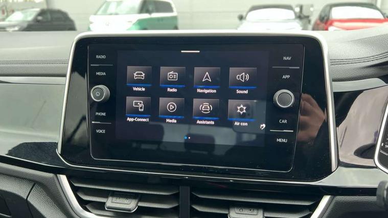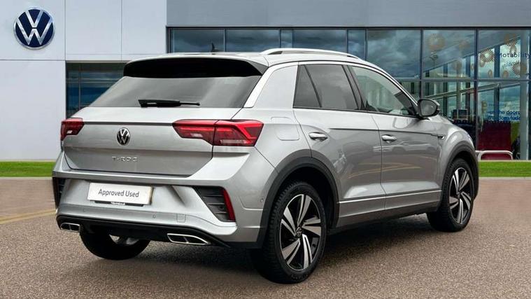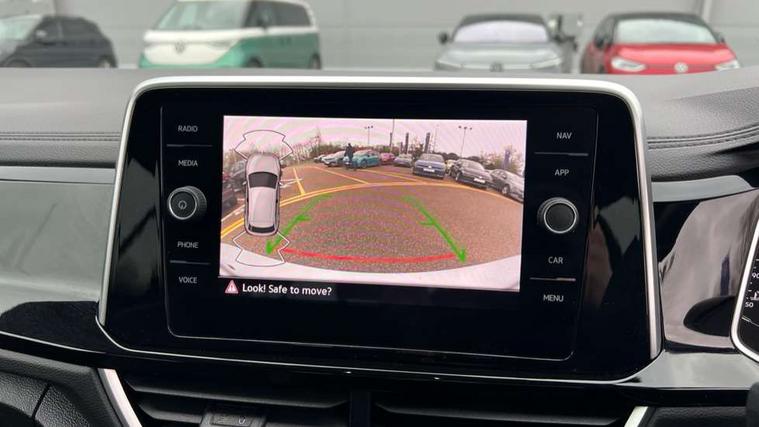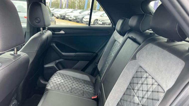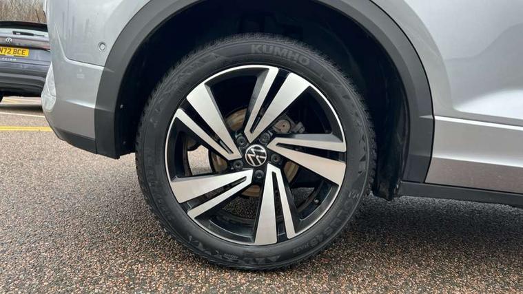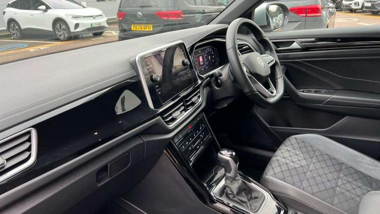 10.25" Digital cockpit pro, Bluetooth mobile phone interface, Driver alert system with fatigue detection, Driver tips and journey analysis, Emergency call service, Lane keeping system Lane Assist, Modified key software - reduce switch off time for key status change to Long no motion, Online services, Park assist including front and rear parking sensors, Service interval indicator, Tailgate/trunk lid release from outside, Think blue trainer driver tips and journey analysis, Warning sound and light for front seatbelts unfastened, Wireless app connect, Battery regeneration during braking, Start/stop function with battery regeneration, Diversity antenna for FM reception, Front and rear 6 speakers, Music playback - MP3, WMA and AAC files, Premium USB cable in choice of either Apple or Android smartphone compatibility, SD card slot, Simultaneous pairing of 2 compatible mobile devices, Title and cover art display, We Connect and We Connect Plus functionality, 3rd brake light, Auto dimming interior rear view mirror, Automatic hazard lights activation under emergency braking, Automatic headlight control with LED separate daytime running lights with coming/leaving home function, Extended roof spoiler, Exterior mirrors aspherical on driver side, convex on front passenger side, External USB type C socket and charging sockets, Front windscreen wiper with intermittent wipe and 4 position delay, Heated rear window, LED Plus headlamps, LED rear combination lamps, LED rear number plate lights, LED tail lamp rear comination lamps, Power windows with comfort operation and circuit breaker, R-Line design body coloured bumpers, Rain sensor, Rear exhaust tailpipe, Rear fog light on one side and reversing lights on both sides, Rear side wing doors, Rear wash/wipe with intermittent wipe setting, Remote electrically foldable door mirrors, puddle lights and reverse activated passenger's door mirror, 12V power socket in centre console, 3 rear head restraints, 3 seat bench in 2nd row, 4 load lashing points in luggage compartment, Air care climatronic air conditoning system with active combination filter and 2-zone temperature control, Black roof lining, Chrome plated radiator grille inserts, air vent surrounds and light switch surrounds, Door and side trim panel with leatherette insert, Drawer under drivers seat, Front + rear carpet mats, Front centre armrest, Front cupholders x 2, Front footwell illumination, Front reading light, Front scuff plates with R logo, Instrument lighting, white adjustable panel illumination, Interior ambient lighting and surround lighting, Interior light delay, Isofix child seat preparation, Leather gearshift handle, Load-through provision with cup holder when folded down ('Unsplit rear seat bench, split folding backrest, with centre armrest), Luggage compartment lighting, Single front passenger seat, Stainless steel pedals, Storage compartment in left and right luggage area, Storage compartment in rear doors, Storage compartments in driver and front passenger doors, Sunvisors with illuminated vanity mirrors, Variable boot floor, height adjustable and removable, Driver assistance pack without proactive passenger protection - T-Roc, 3 point height adj front seatbelts + pretensioners, 3 point seatbelts in outer rear with ECE label, ABS, Child locks on rear doors, Driver and front passenger airbag with front passenger airbag deactivation, Driver and front passenger safety-optimised head restraints, Drivers seatbelt reminder, Electronic parking brake, Electronic Stability Control (ESC) inc EDL (Electronic Differential Lock) and ASR (Traction Control), Front and rear passengers curtain airbag system including front side airbags, Front assist with city emergency braking and pedestrian monitoring, Front seat side impact airbags, Hill start assist, Predictive pedestrian protection, Rear disc brakes, Single tone horn, Tyre pressure loss indicator, Volkswagen roadside assistance, Alarm with interior protection, Anti-theft alarm system with interior monitoring, backup horn, and towing protection, Remote central locking with SAFELOCK, radio remote control with 2 remote control folding keys, Trims for alloy wheels,